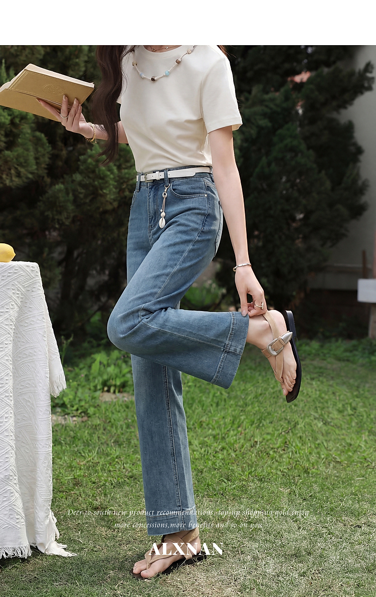 鹿向南「云禾漫夏」怀旧蓝牛仔裤夏季新款法式时尚宽松直筒长裤女