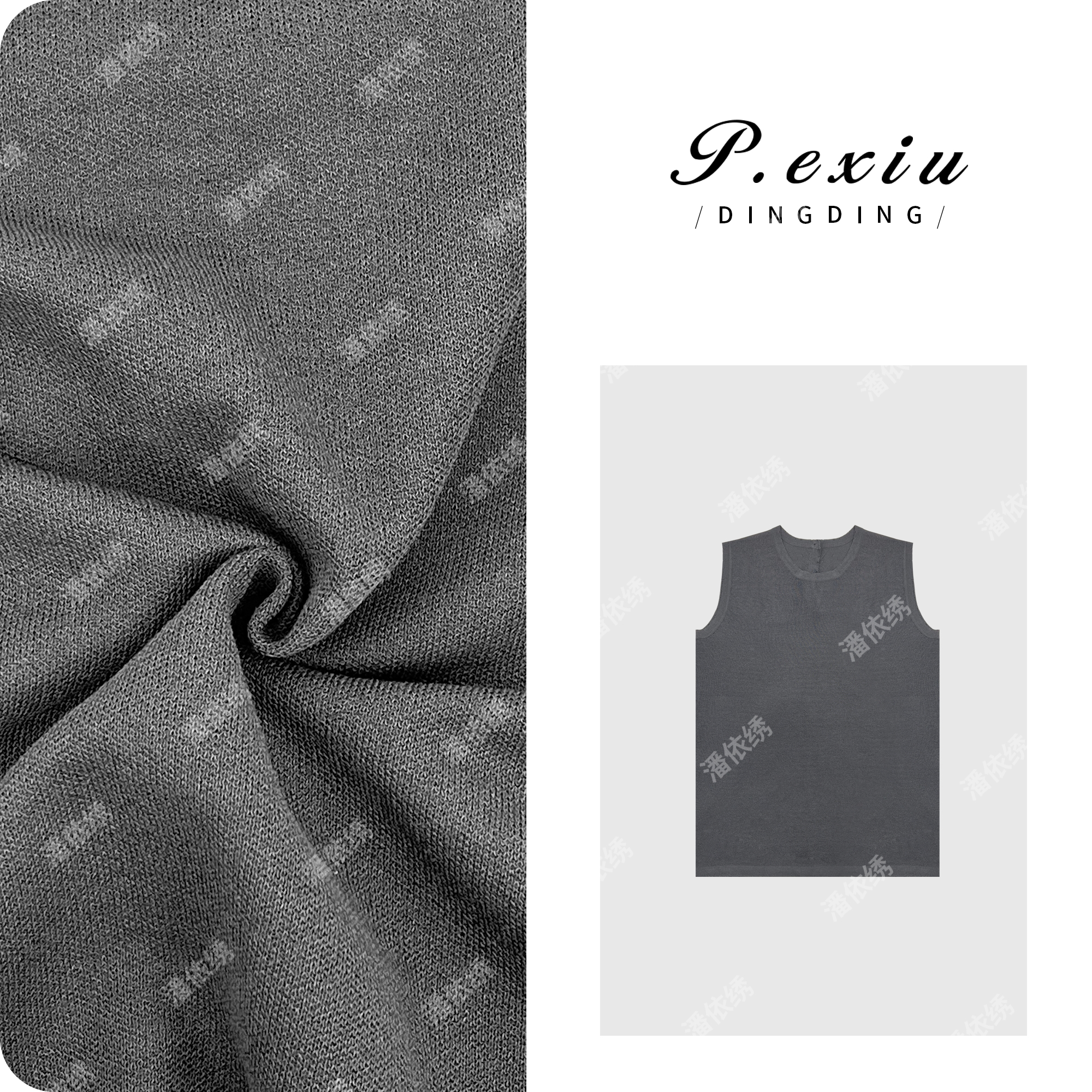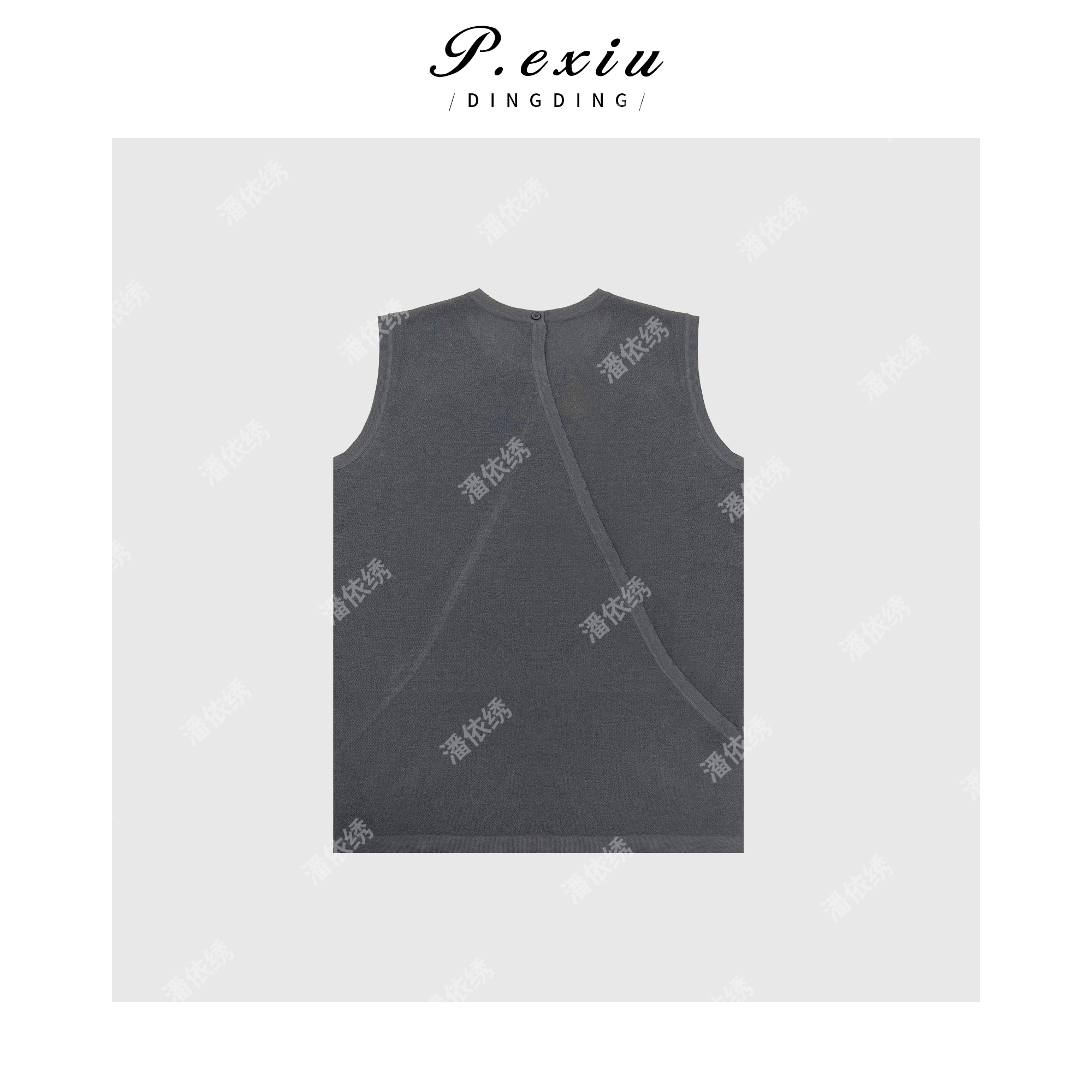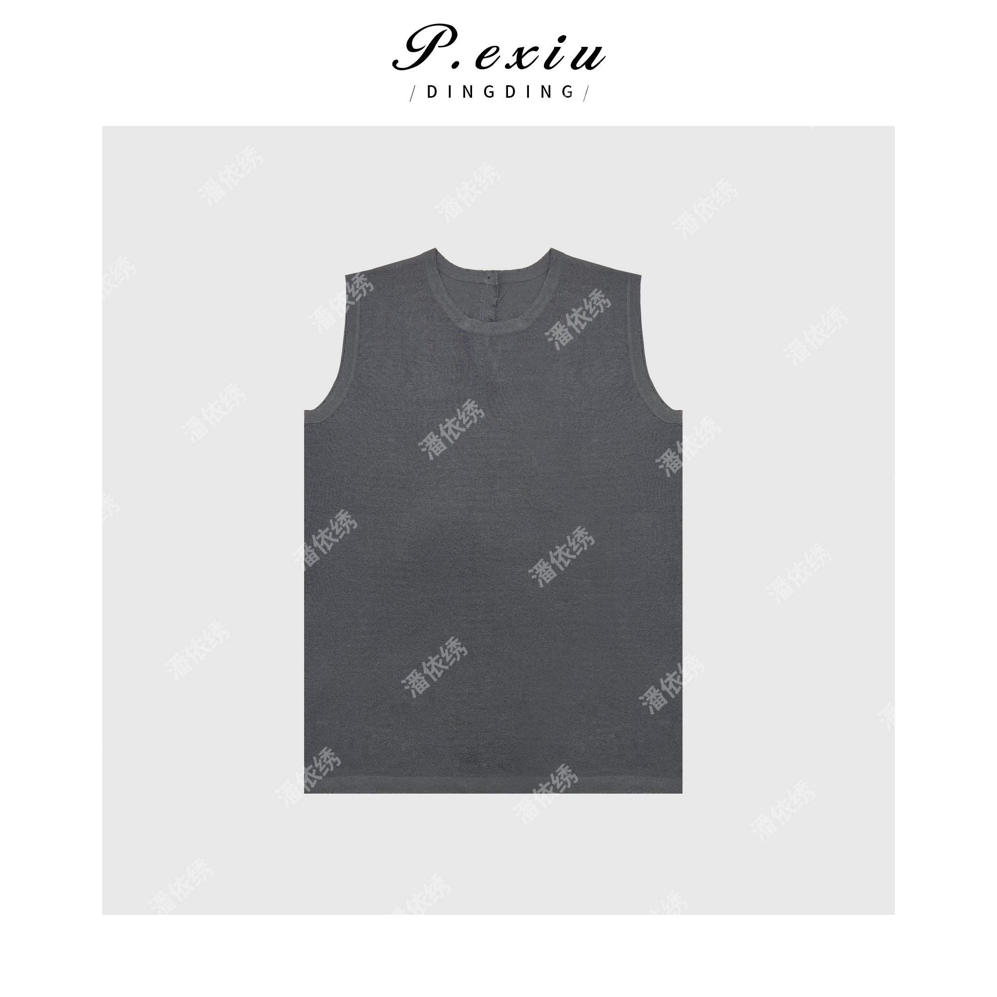 03-4潘依绣丁丁宠粉PanYiXiu/潘依绣人丝格雷系极简高级感圆领针织背心 ZZ0565