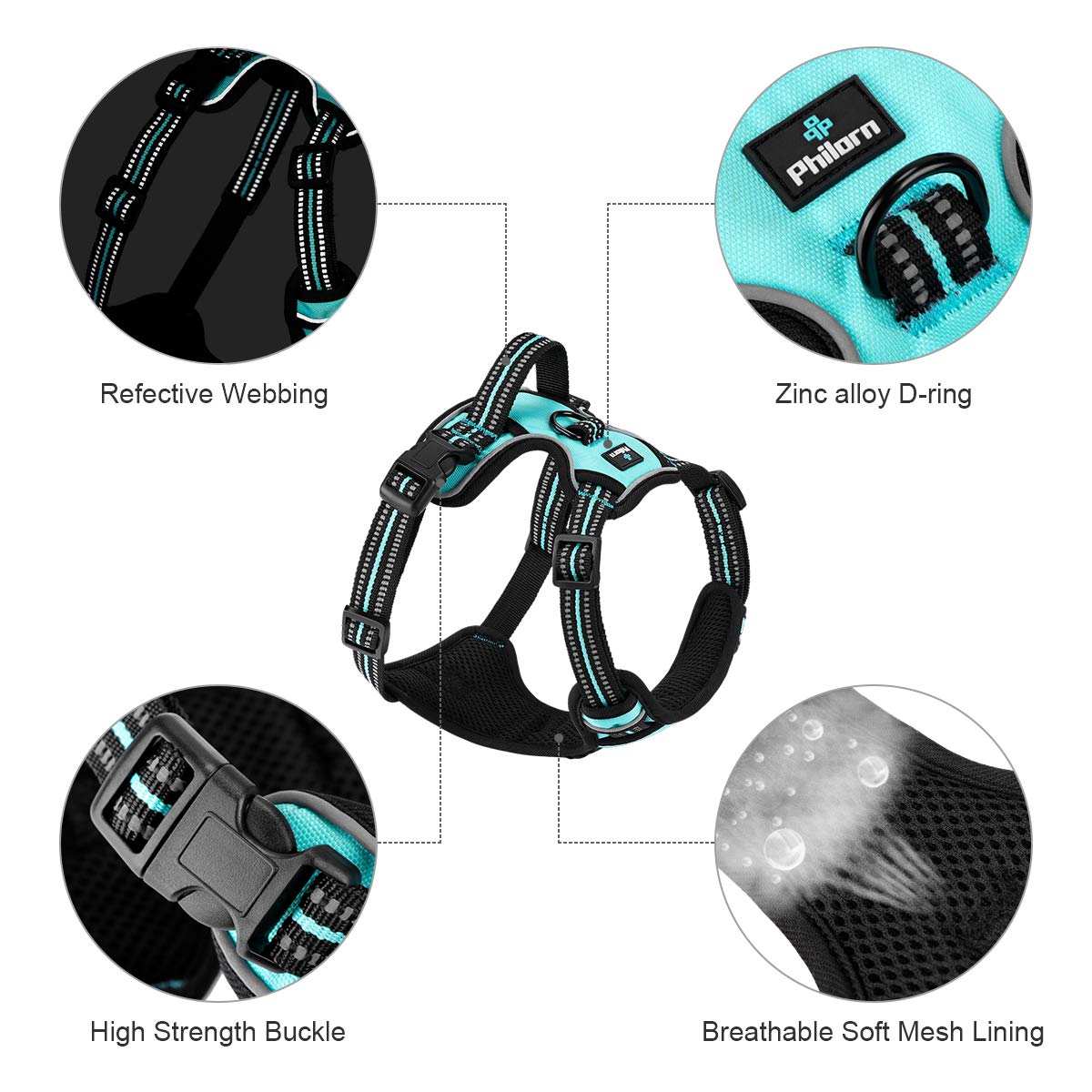 【舒适且无呛咳】柔软透气的网状内衬均匀分布拉扯压力,防止拉扯、窒息和受伤,防擦伤设计能保护宠物的腿部免受擦伤。