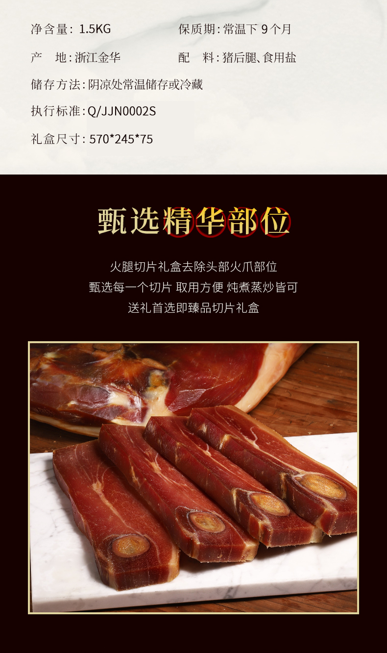 丁山河 寻味•婺州贺礼1.5kg 精选上方火腿肉