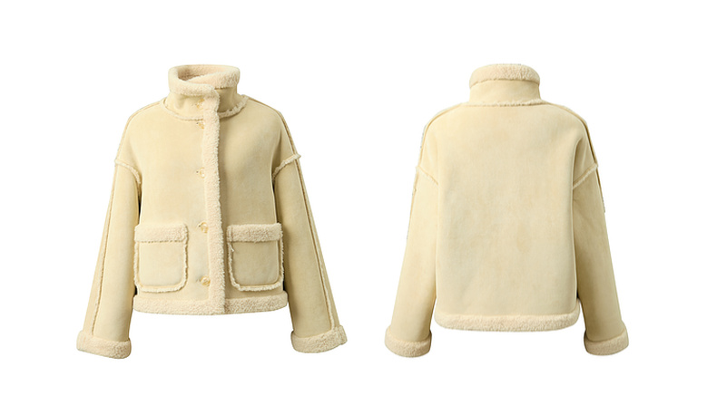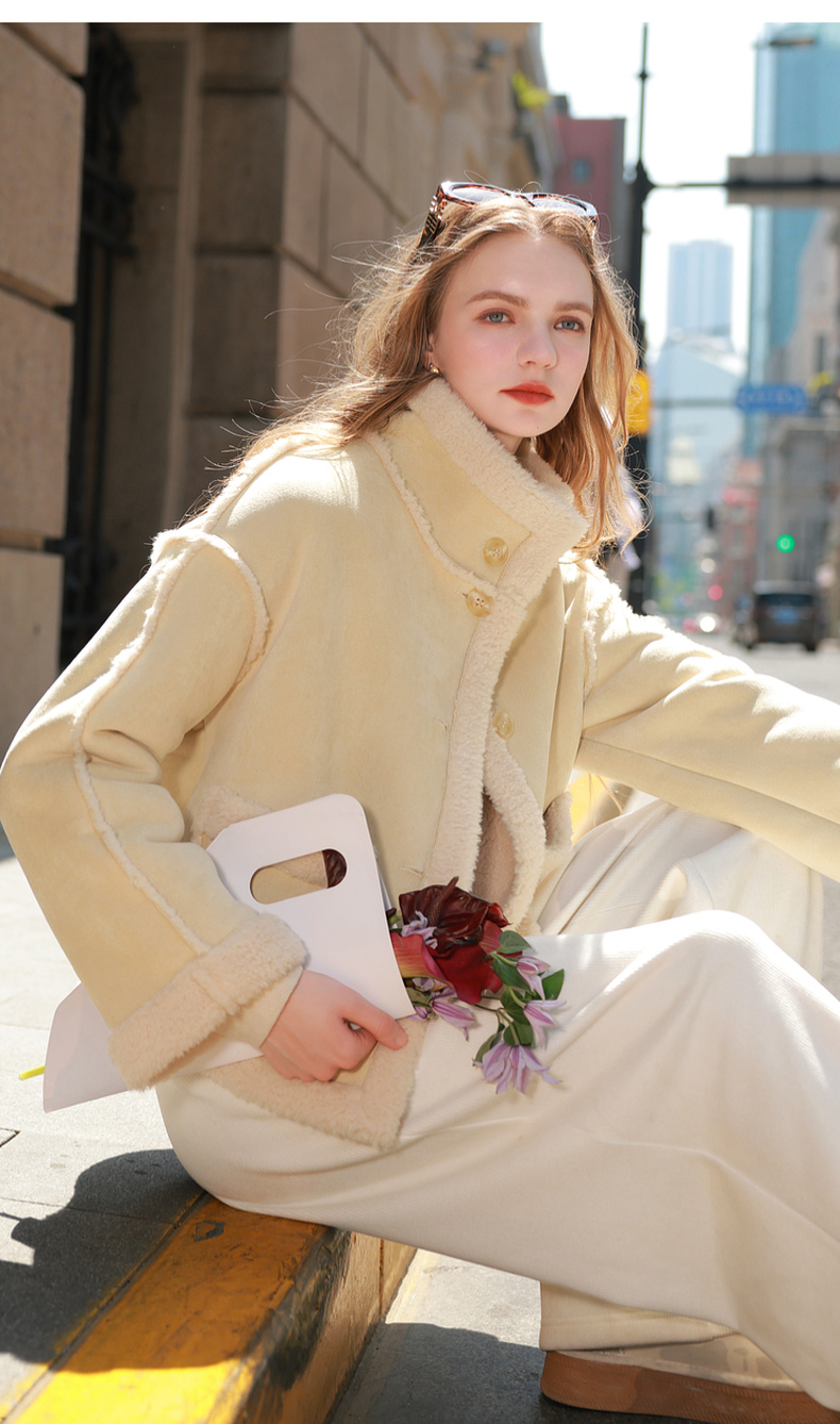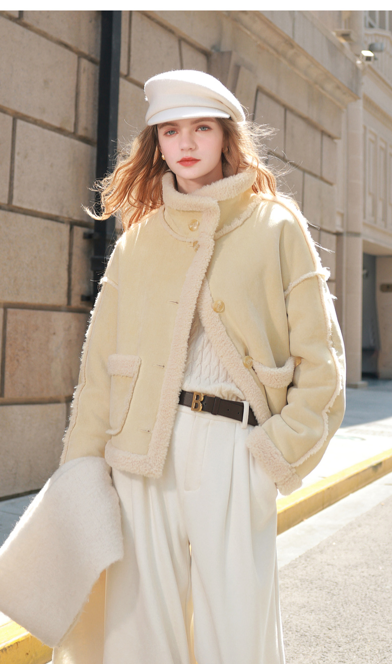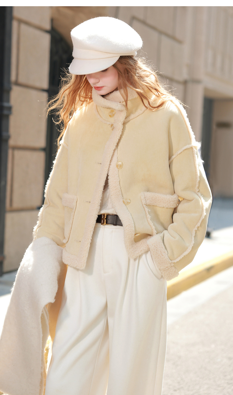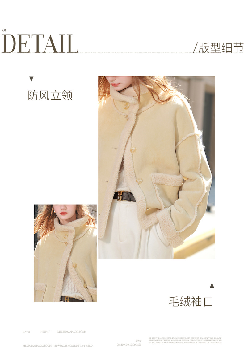 三彩2025冬季新款仿麂皮环保皮草毛毛外套立领宽松休闲保暖M