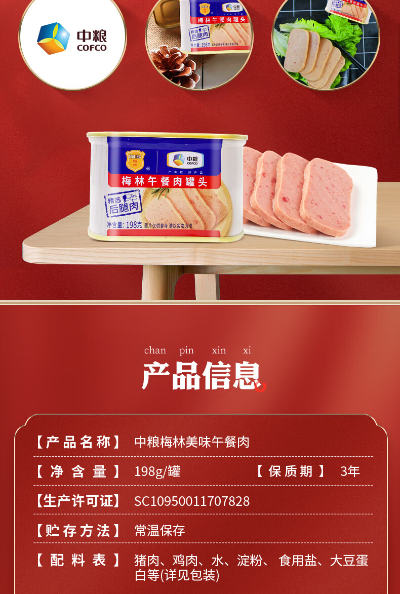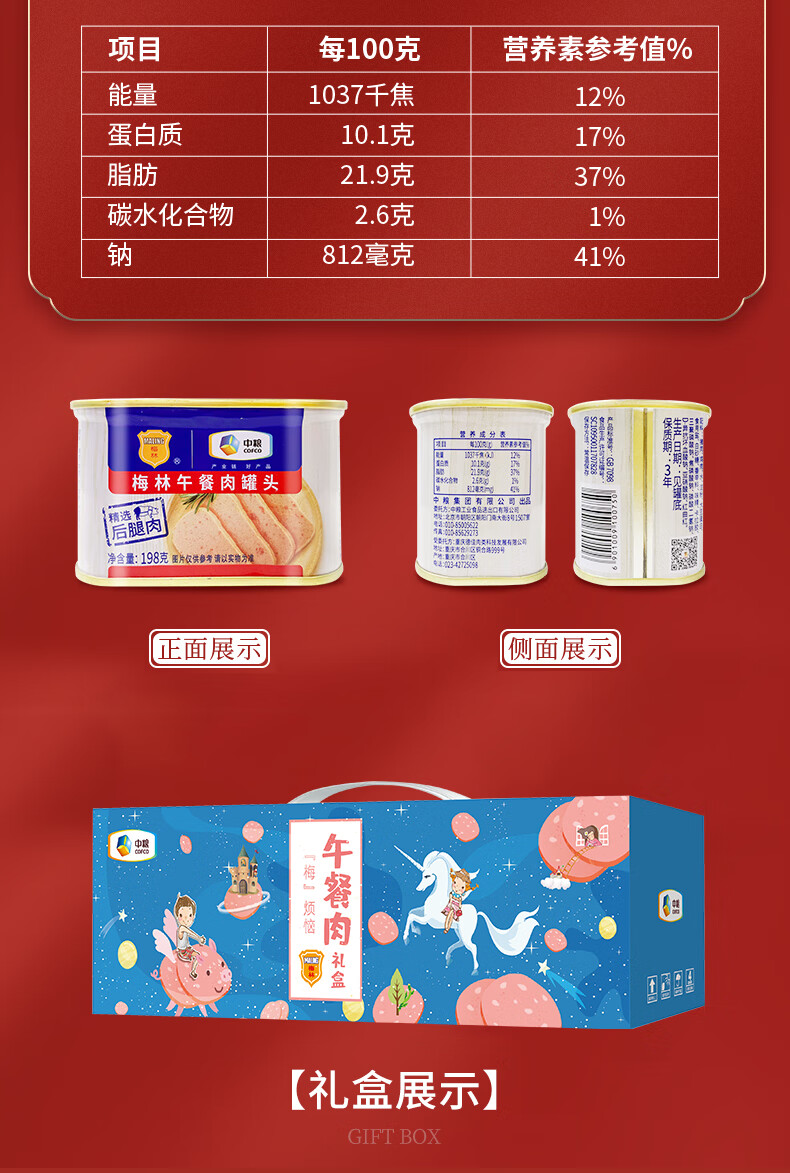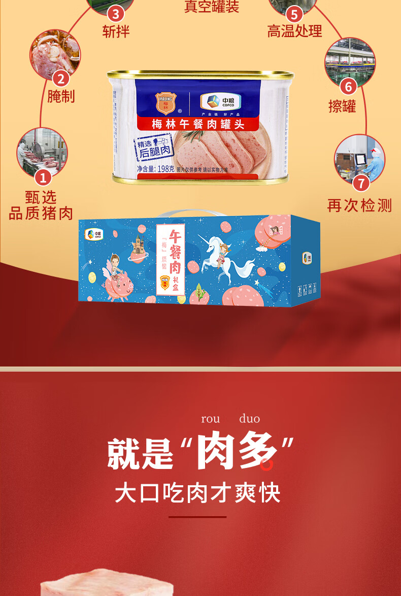中粮梅林经典午餐肉罐头礼盒1386g