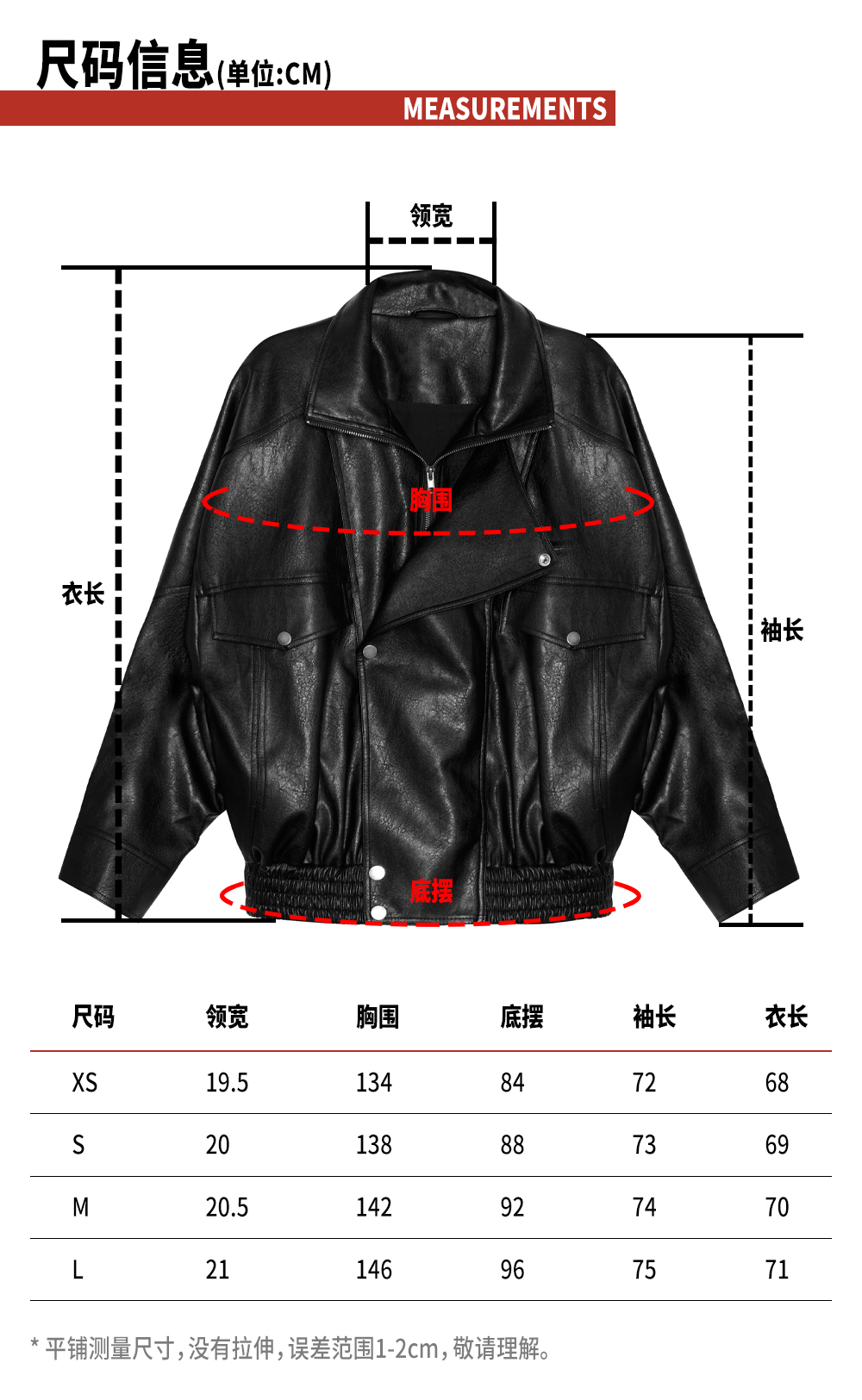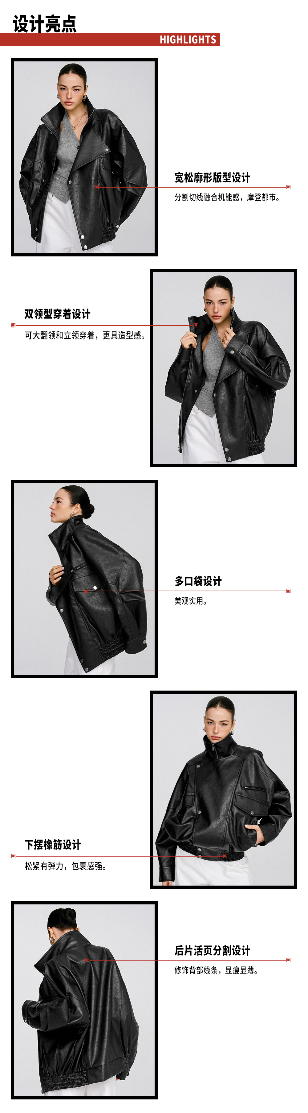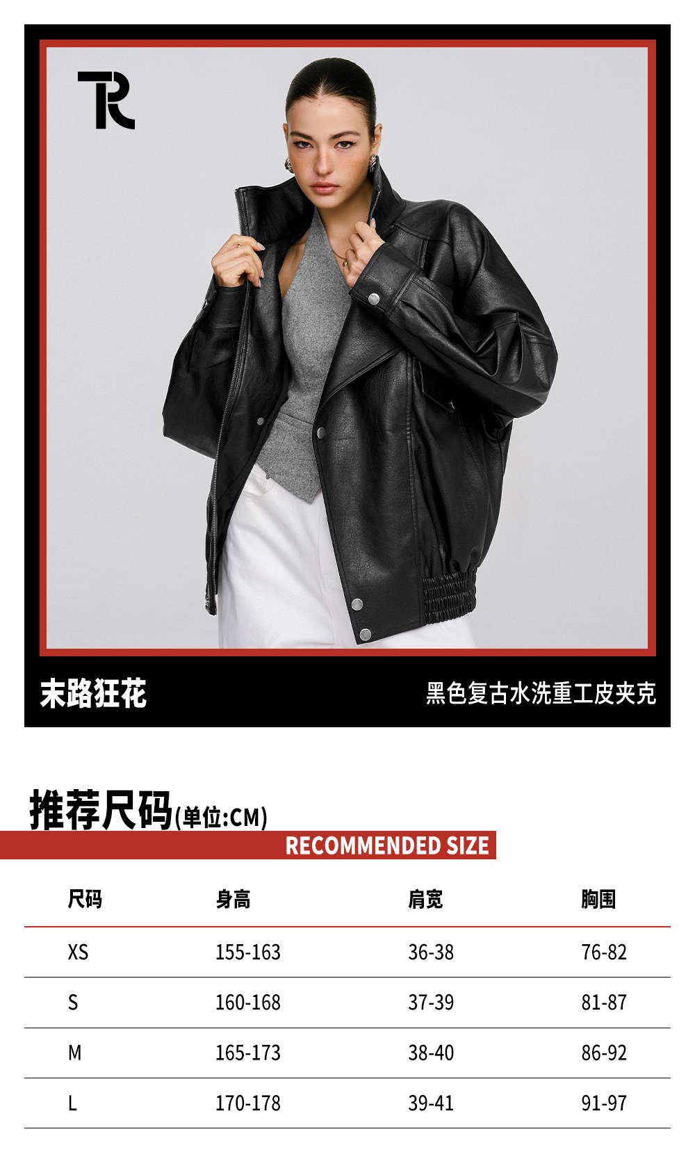 TR她热 末路狂花 黑色荔枝纹复古设计宽松挺括机能风PU皮夹克外套