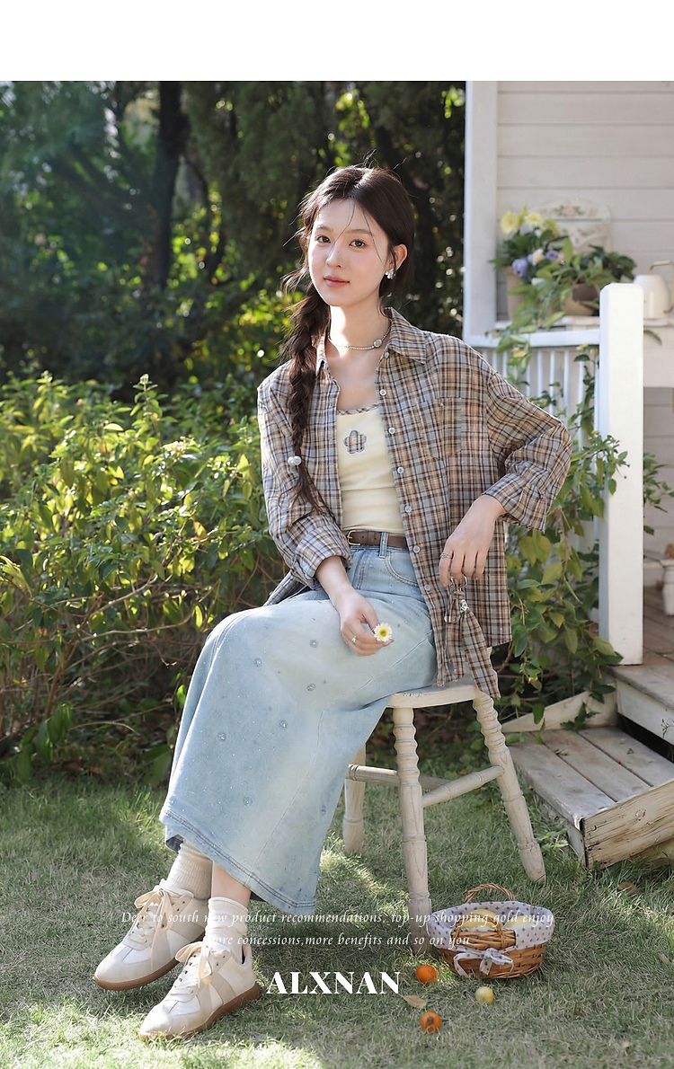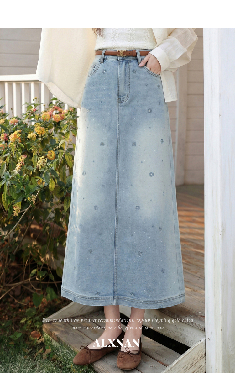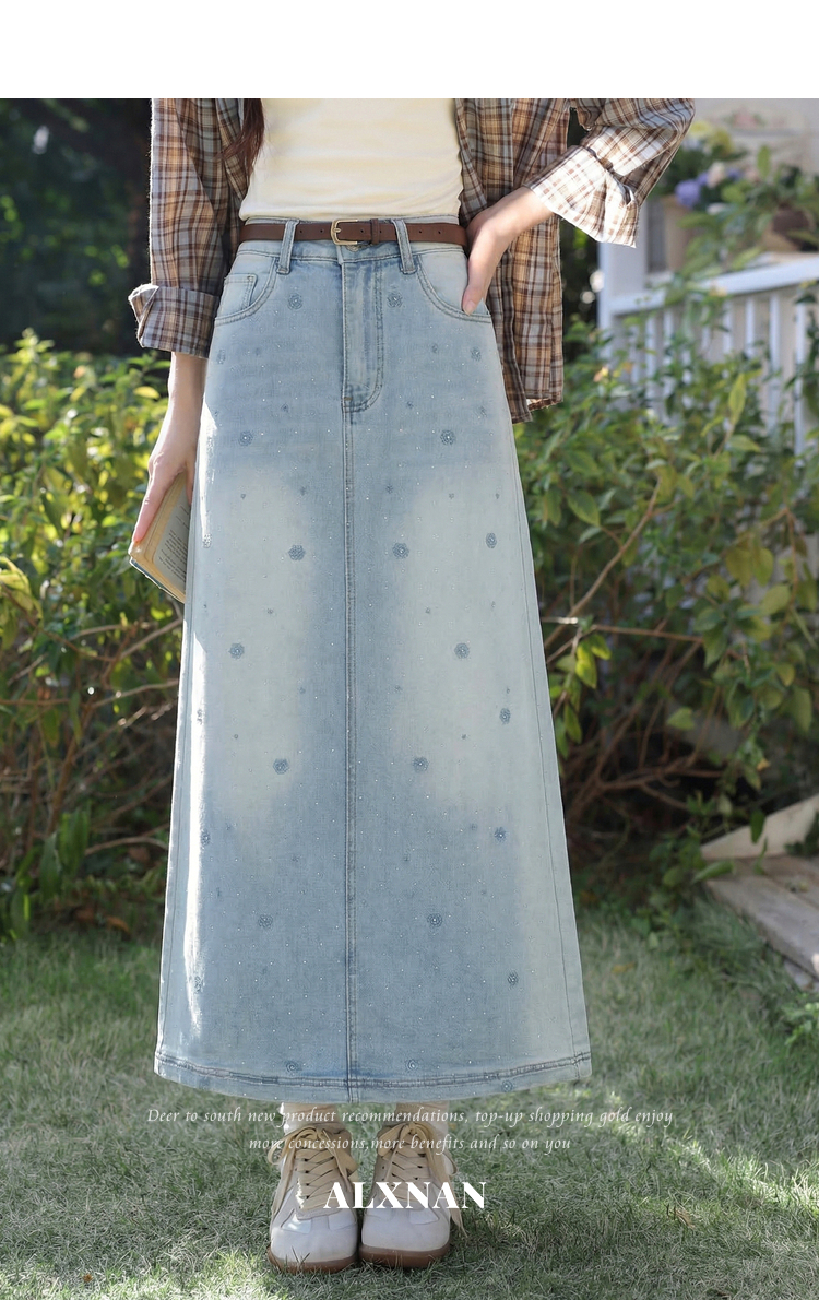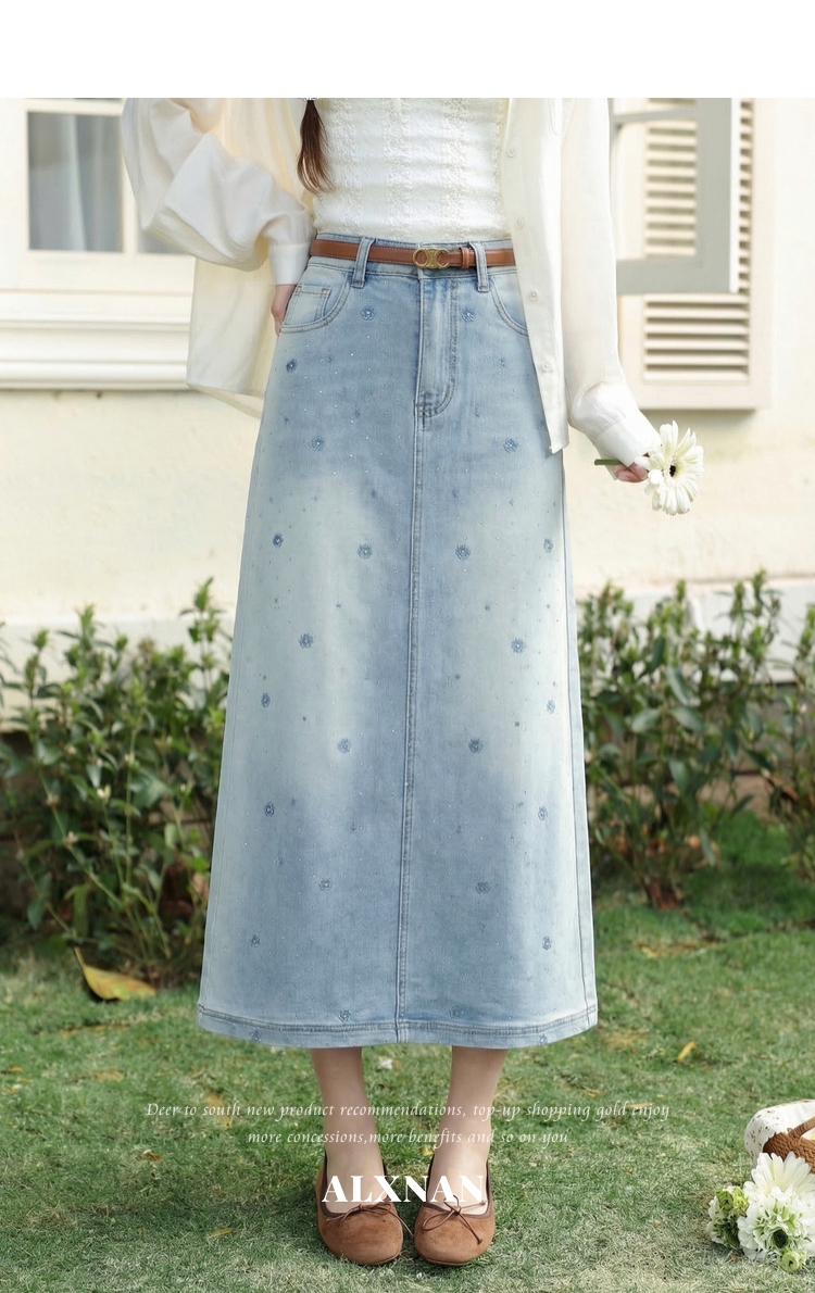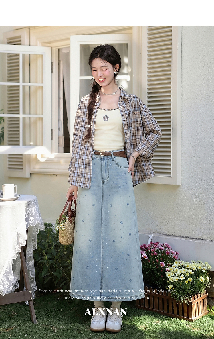 鹿向南「青枝绾裾」蓝色半身裙女夏新款时尚印花设计中长款A字裙