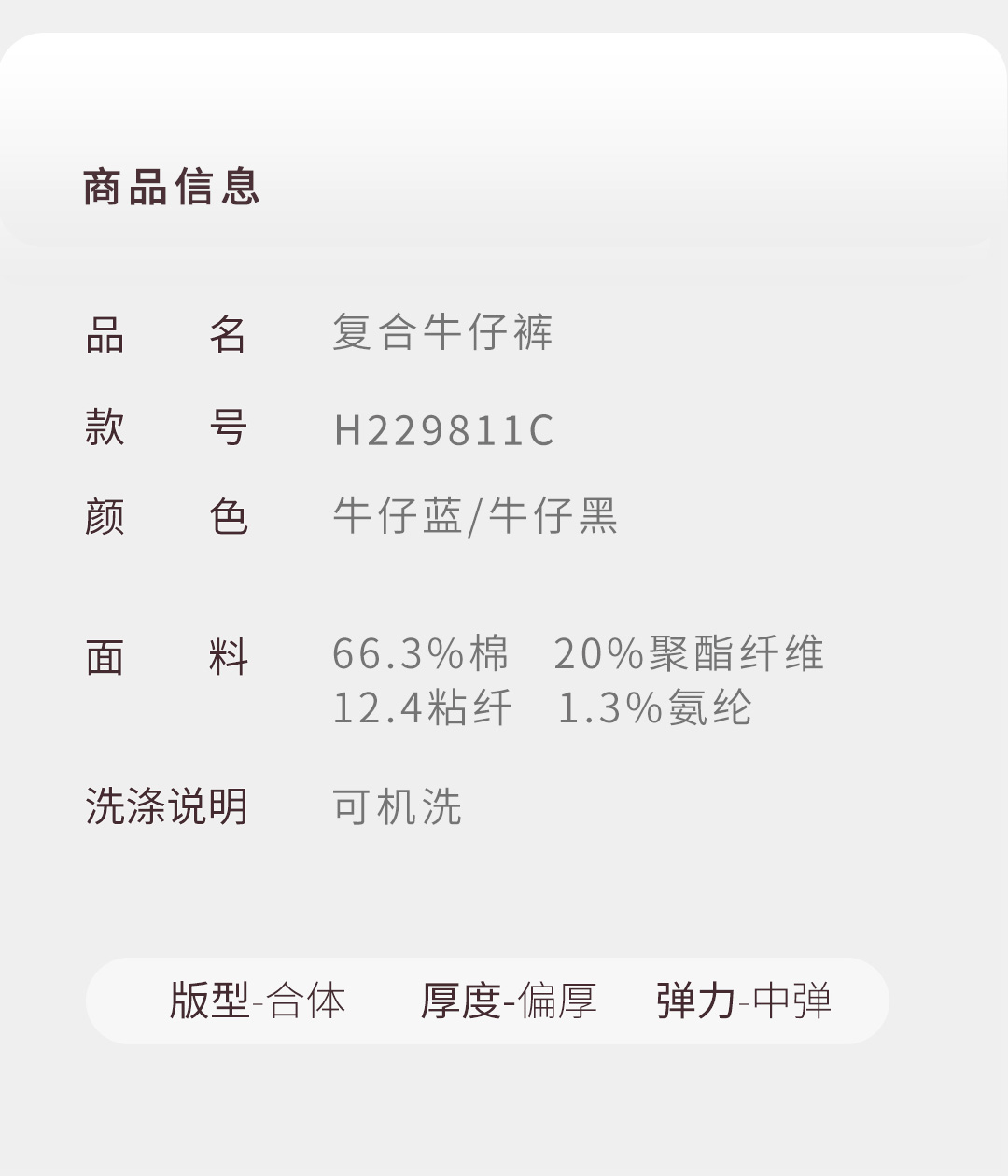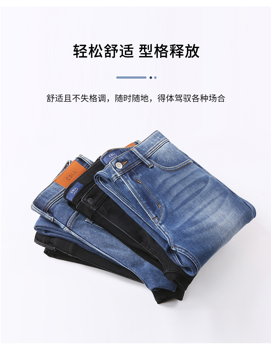 【轻旅系列加厚】舒弹棉弹力直筒长牛仔裤H229811