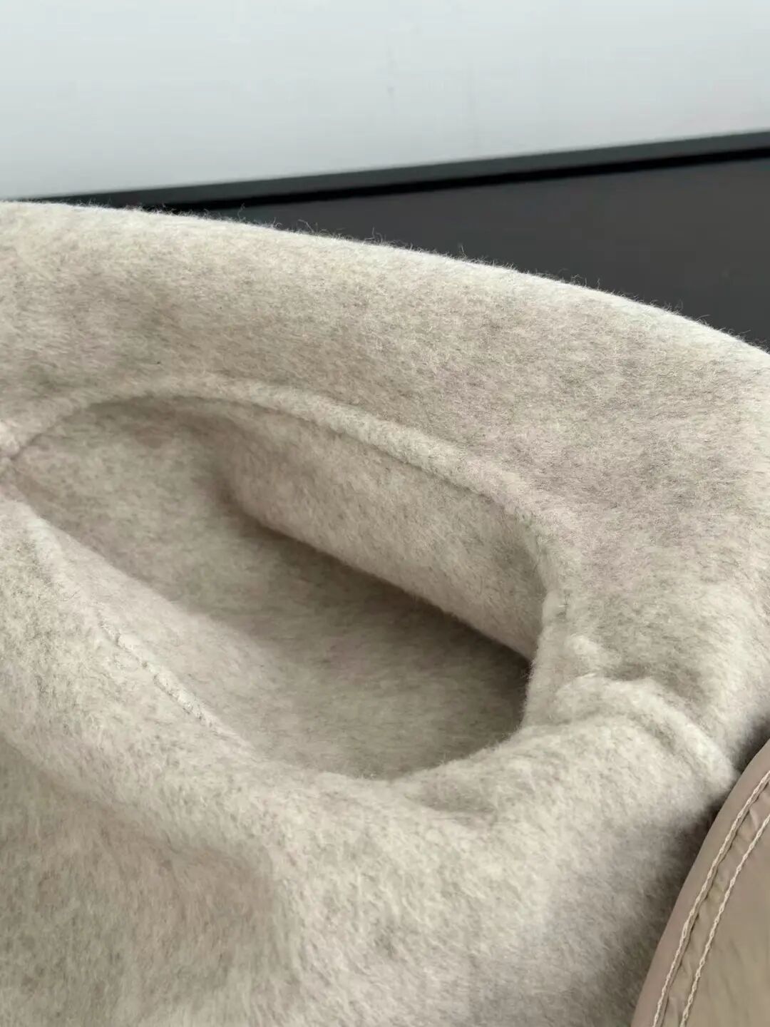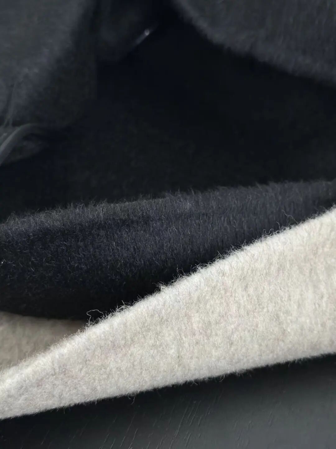 即使缝合了两块面料,双面呢也不显厚重,相较于其他材质的大衣,更显柔软轻盈。