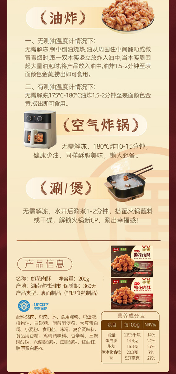 唐人神 鲍花肉酥200g*5 油炸酥脆食材空气炸锅加热半成品零食小吃