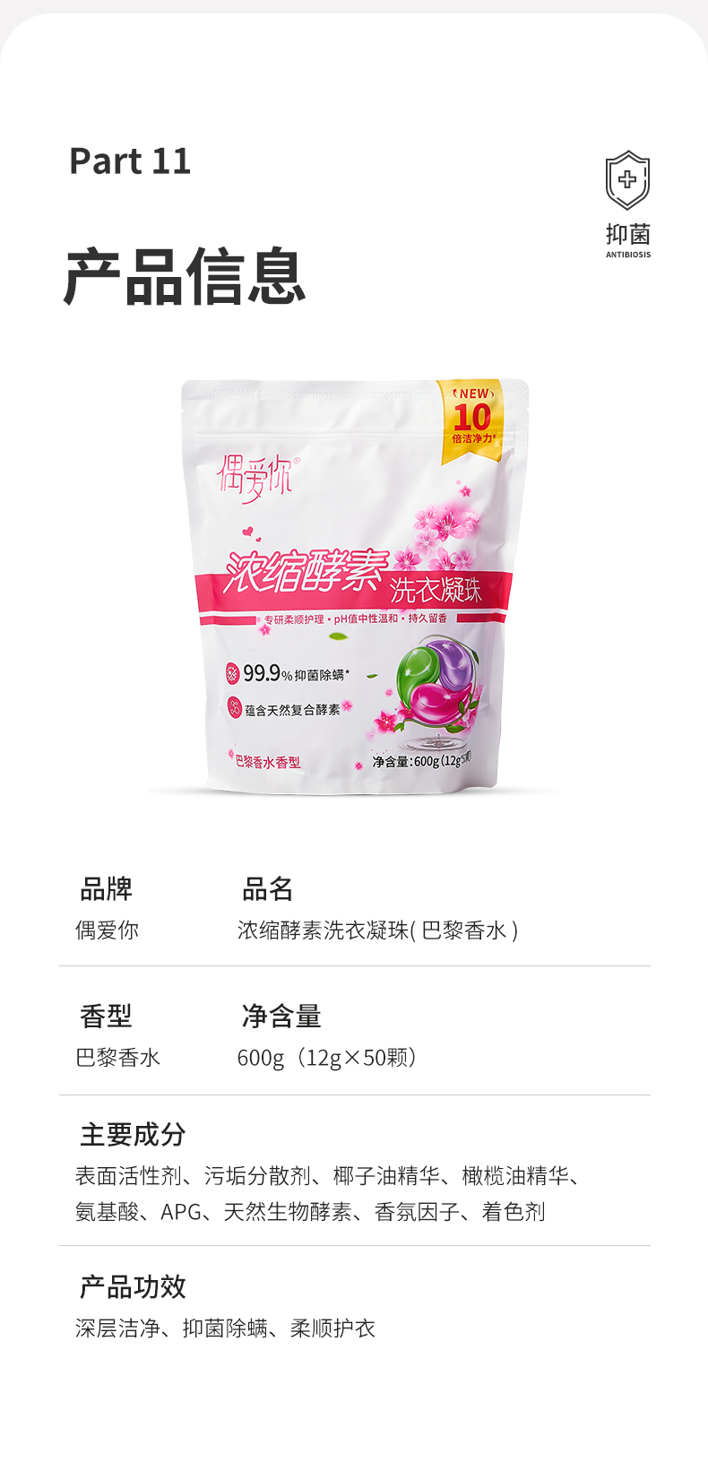 【护衣留香】偶爱你浓缩酵素洗衣凝珠巴黎香水味10倍洁净力12g*50颗/袋