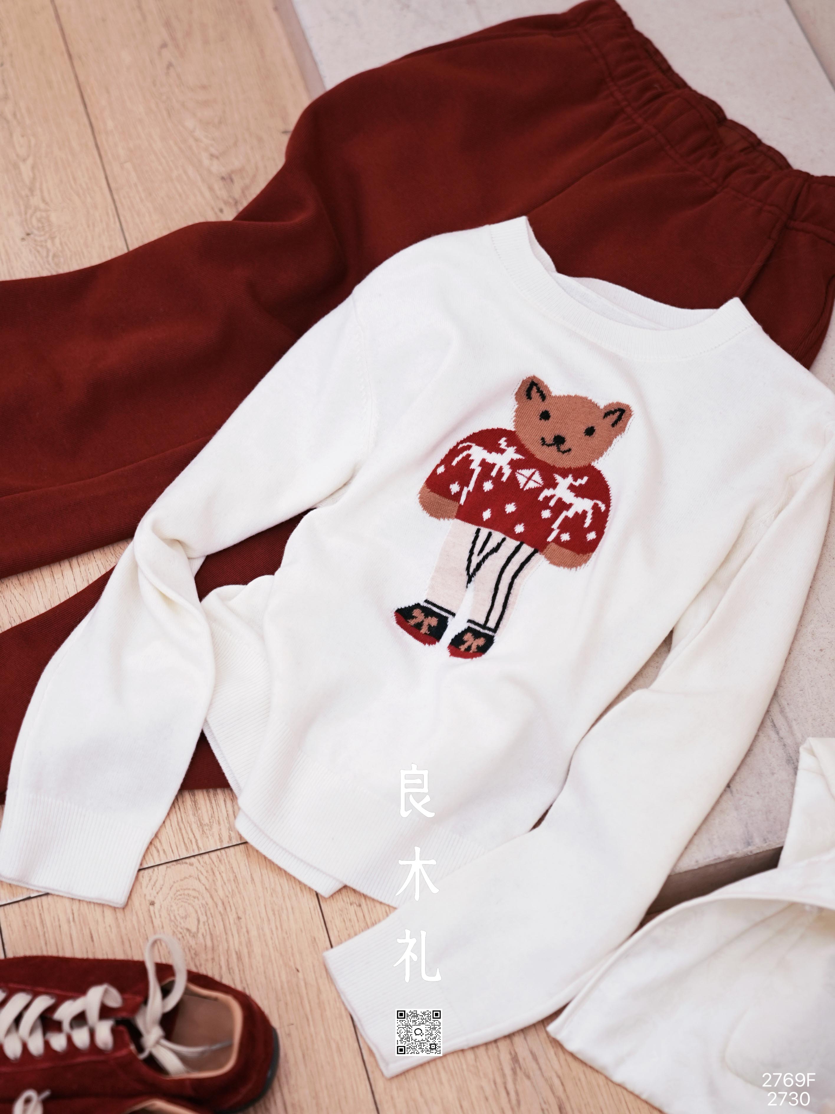 【特价不退换】【预售7天】良木礼小熊圆领针织衫(2769F)