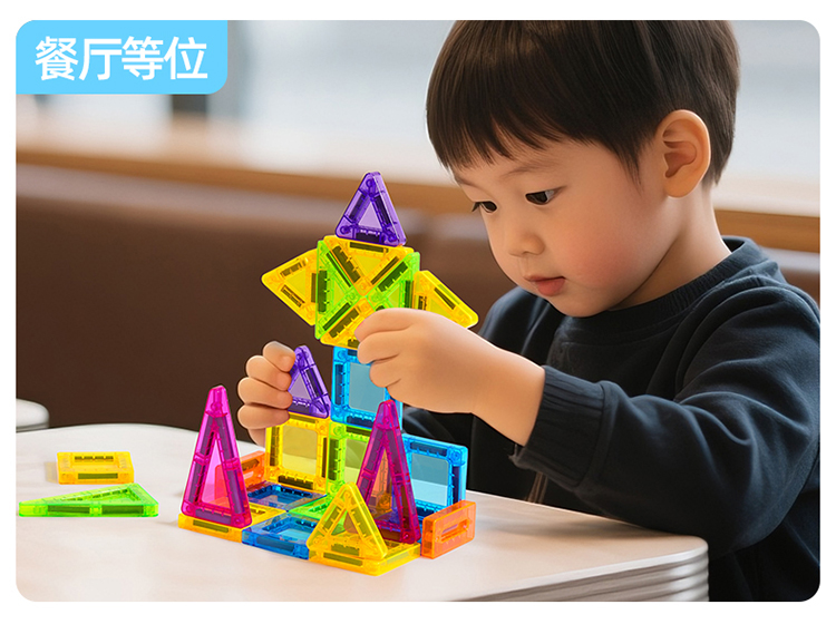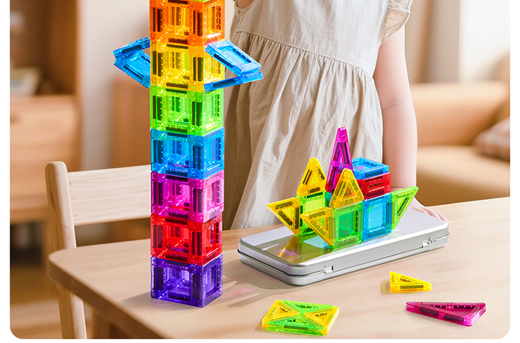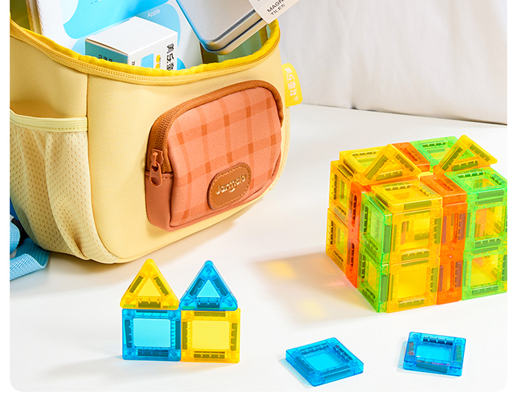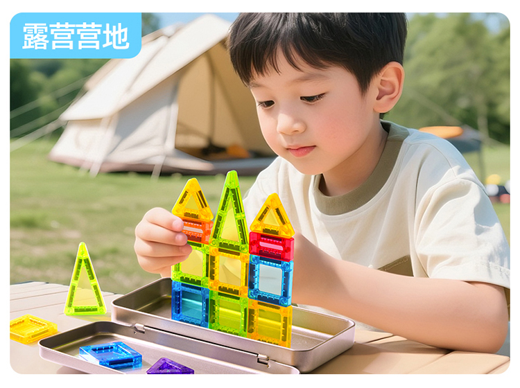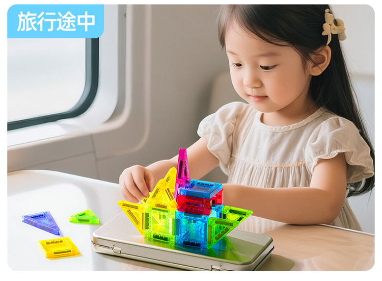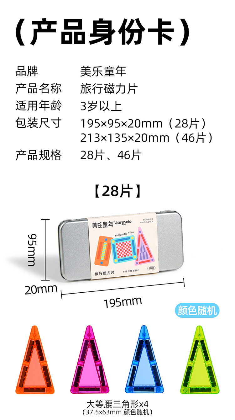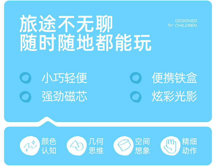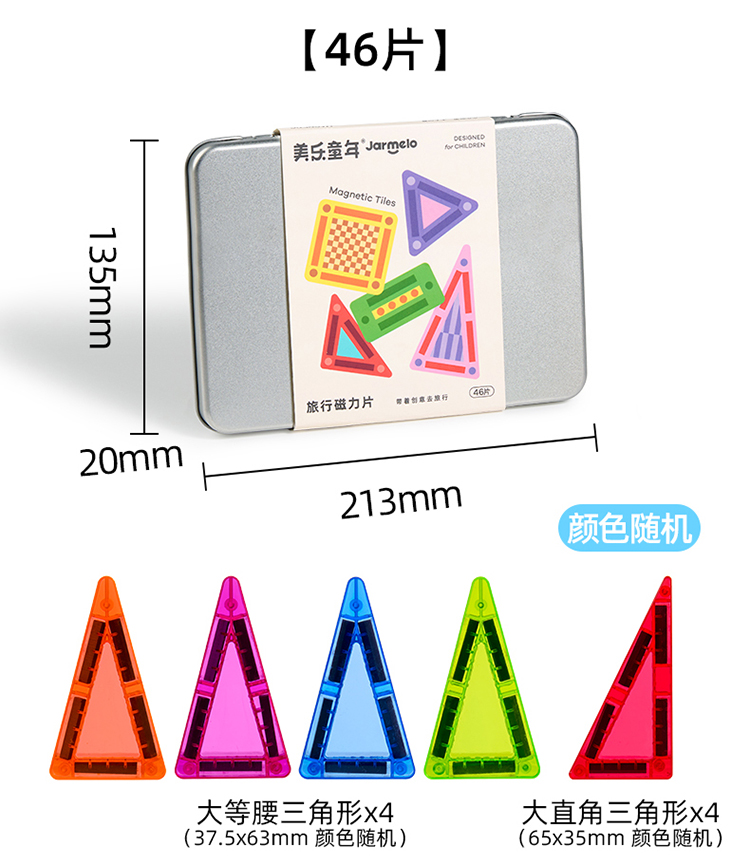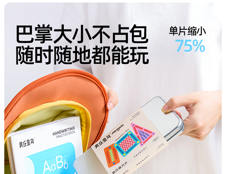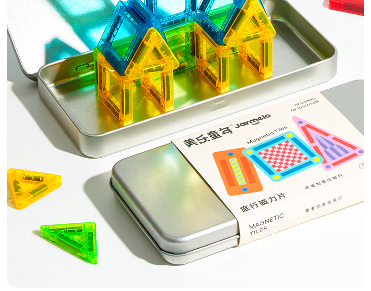美乐童年儿童迷你小磁力片积木便携口袋方块mini磁贴铁盒旅行玩具