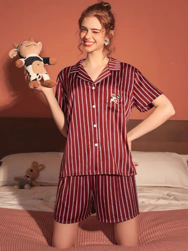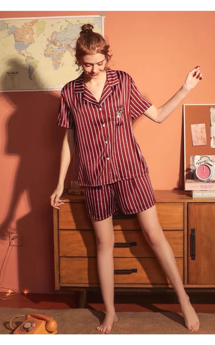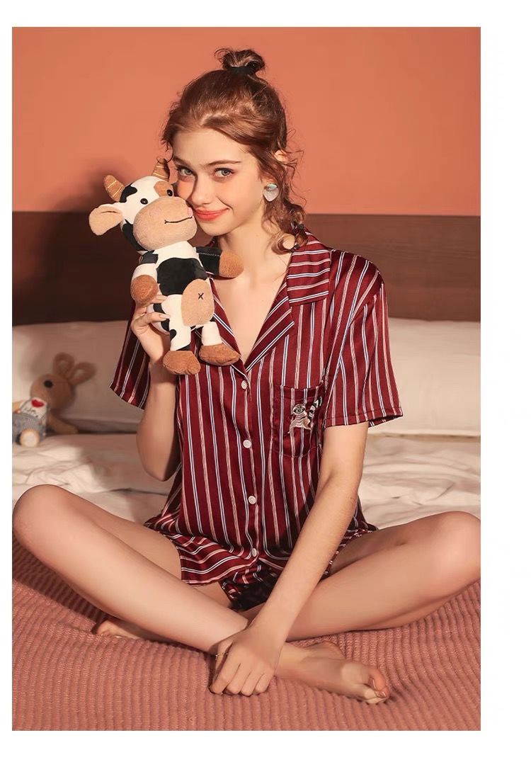 【产品名称】冰雪丝动物绣花短袖短裤家居服套装