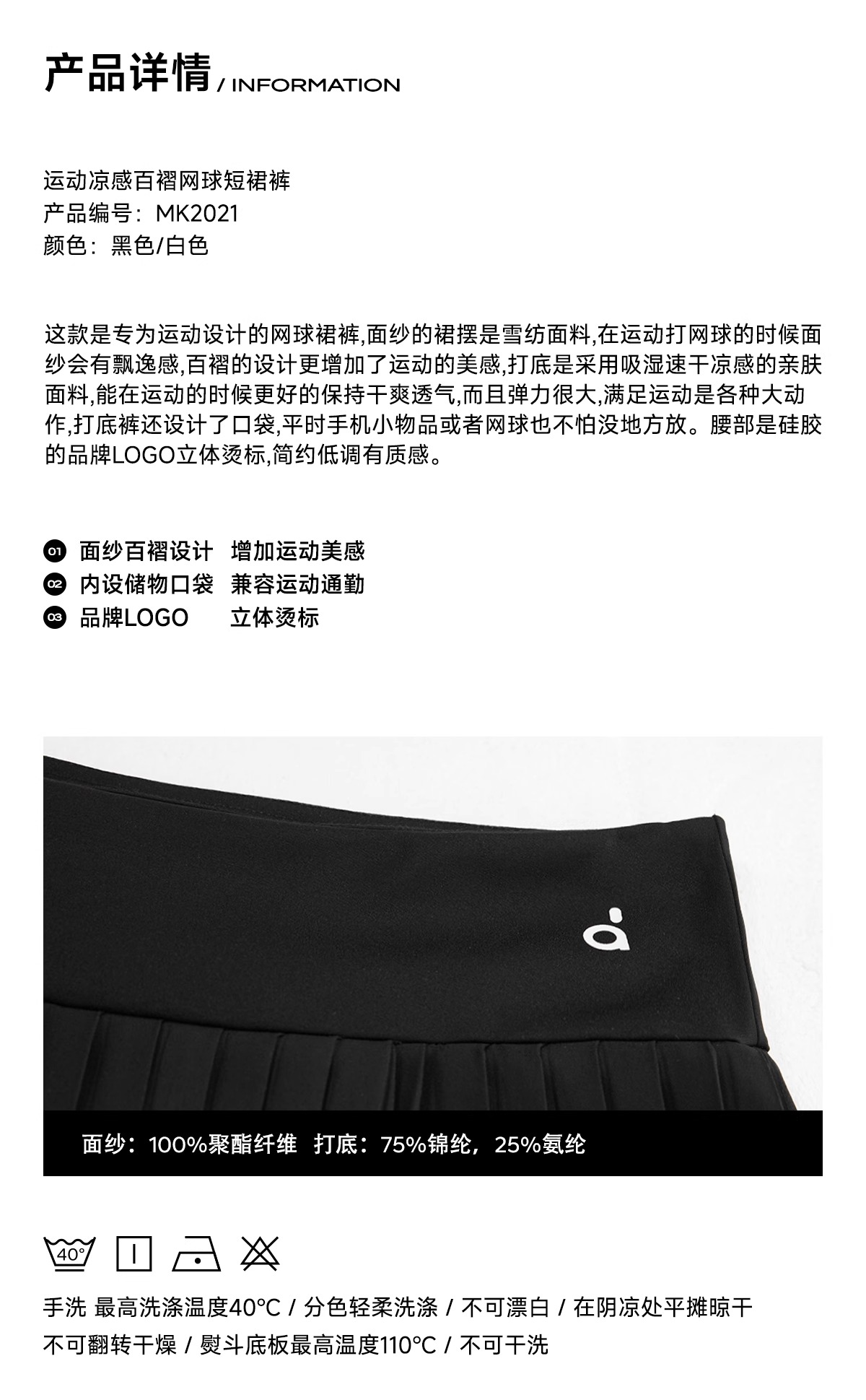 【178元任选3件】FDR高弹防晒凉感速干运动半身裙女羽毛球服透气百褶网球裙