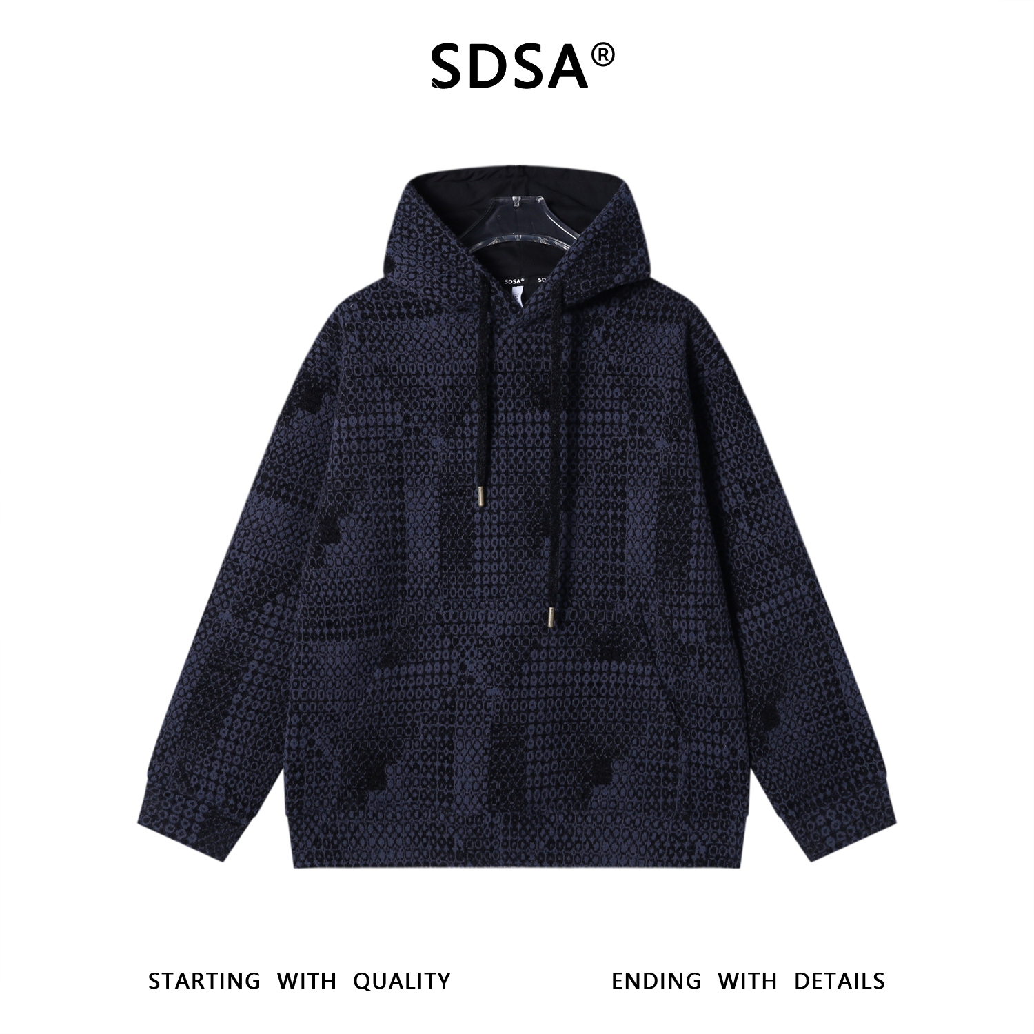 WY1286SDSA男士秋冬新款痞帅男装简约撞色格子提花抽绳连帽卫衣百搭宽松