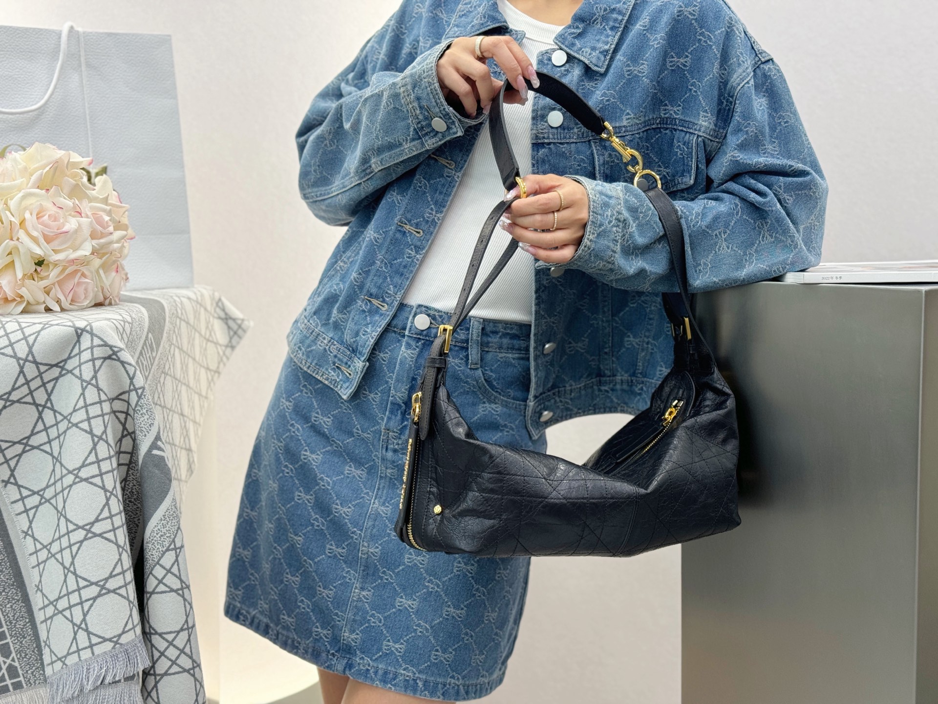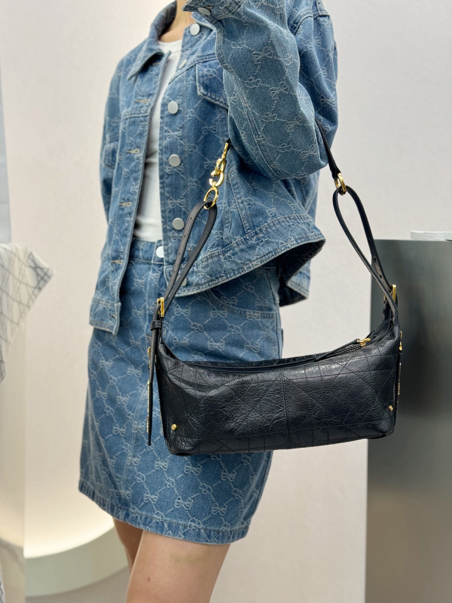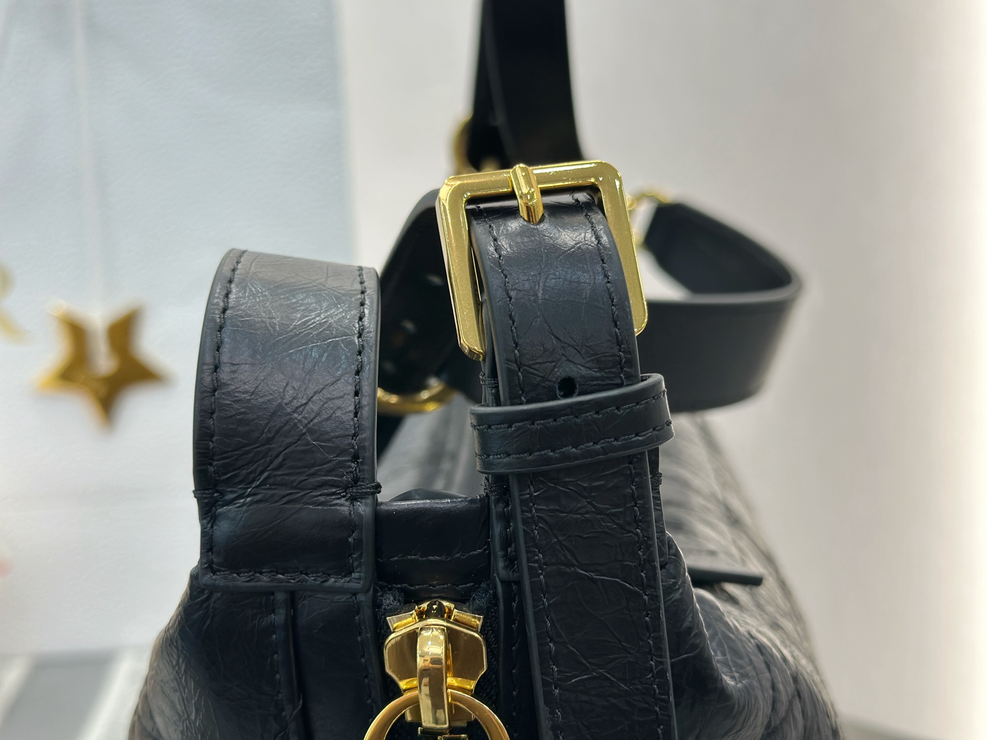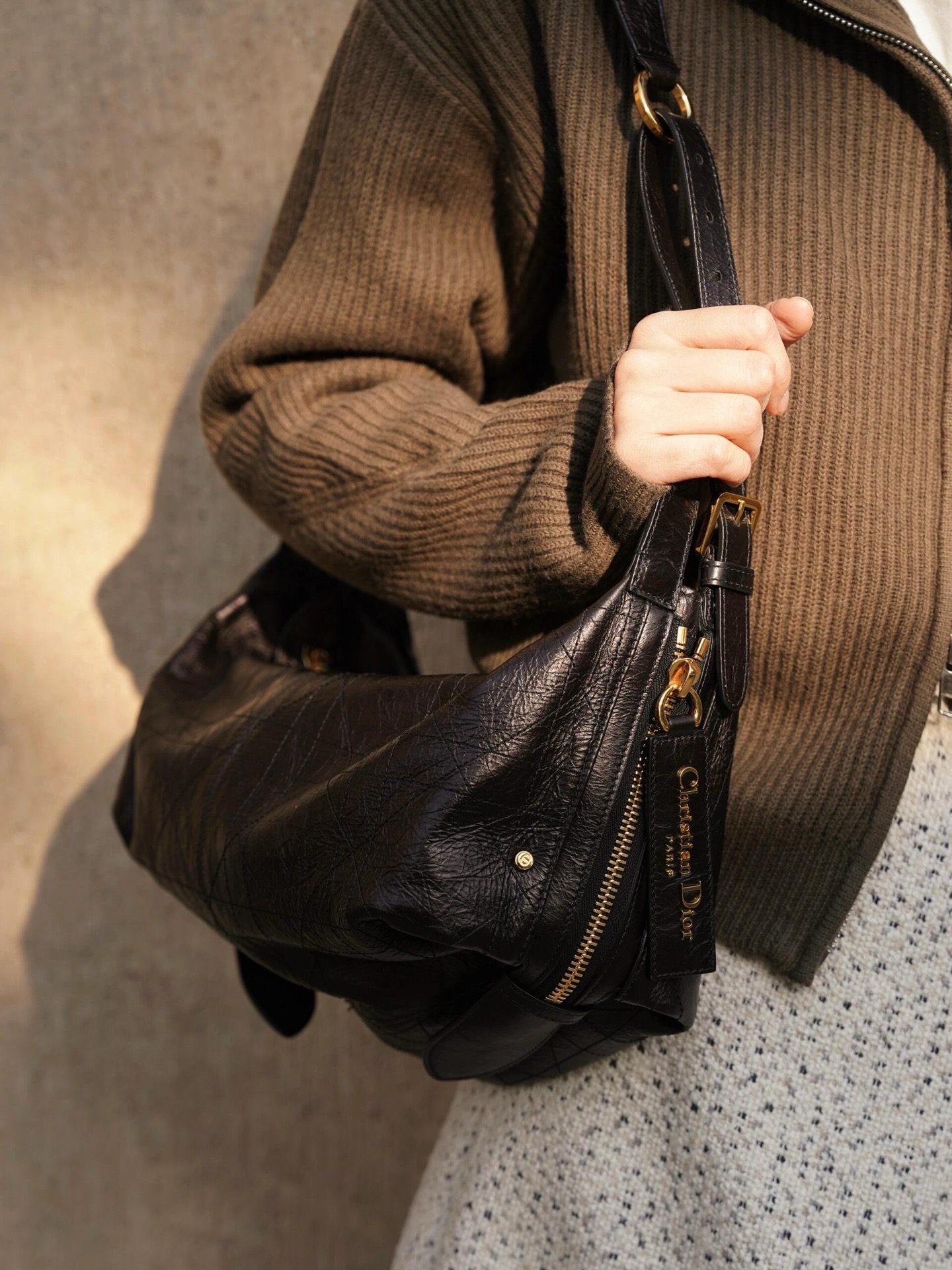 最新王炸款,采用进口原厂黑色褶皱小牛皮➕金色字母肩带𝐃扣 扁平超大特色藤格纹,月牙包型 复古又高级 , 柔软又随意ᡣ𐭩 🉑手提、单肩、斜挎,多种背法 百变之余,松弛感💯 超大容量完全满足日常出行使用🙋🏻♀️ 背上秒变街拍女王👑