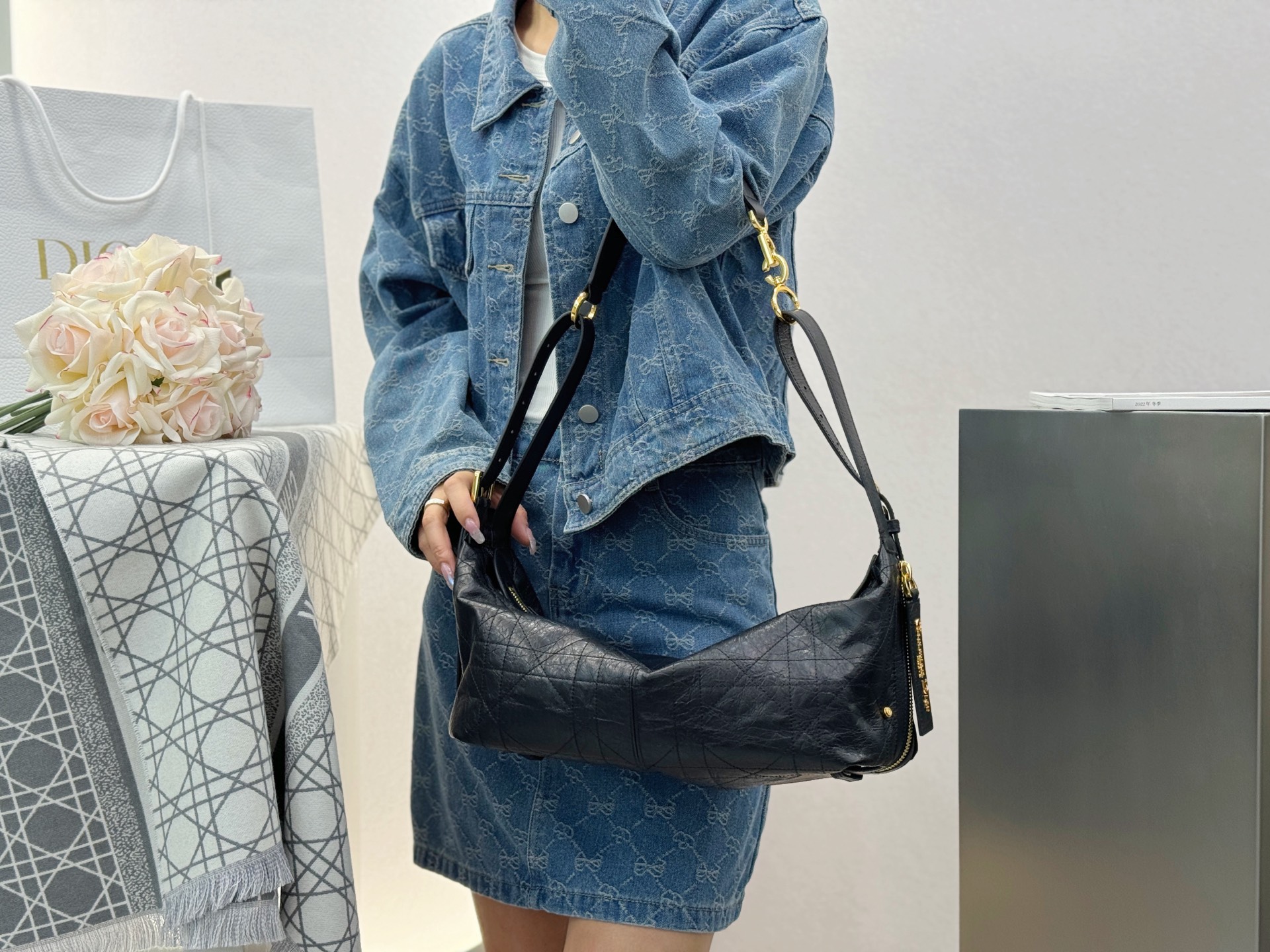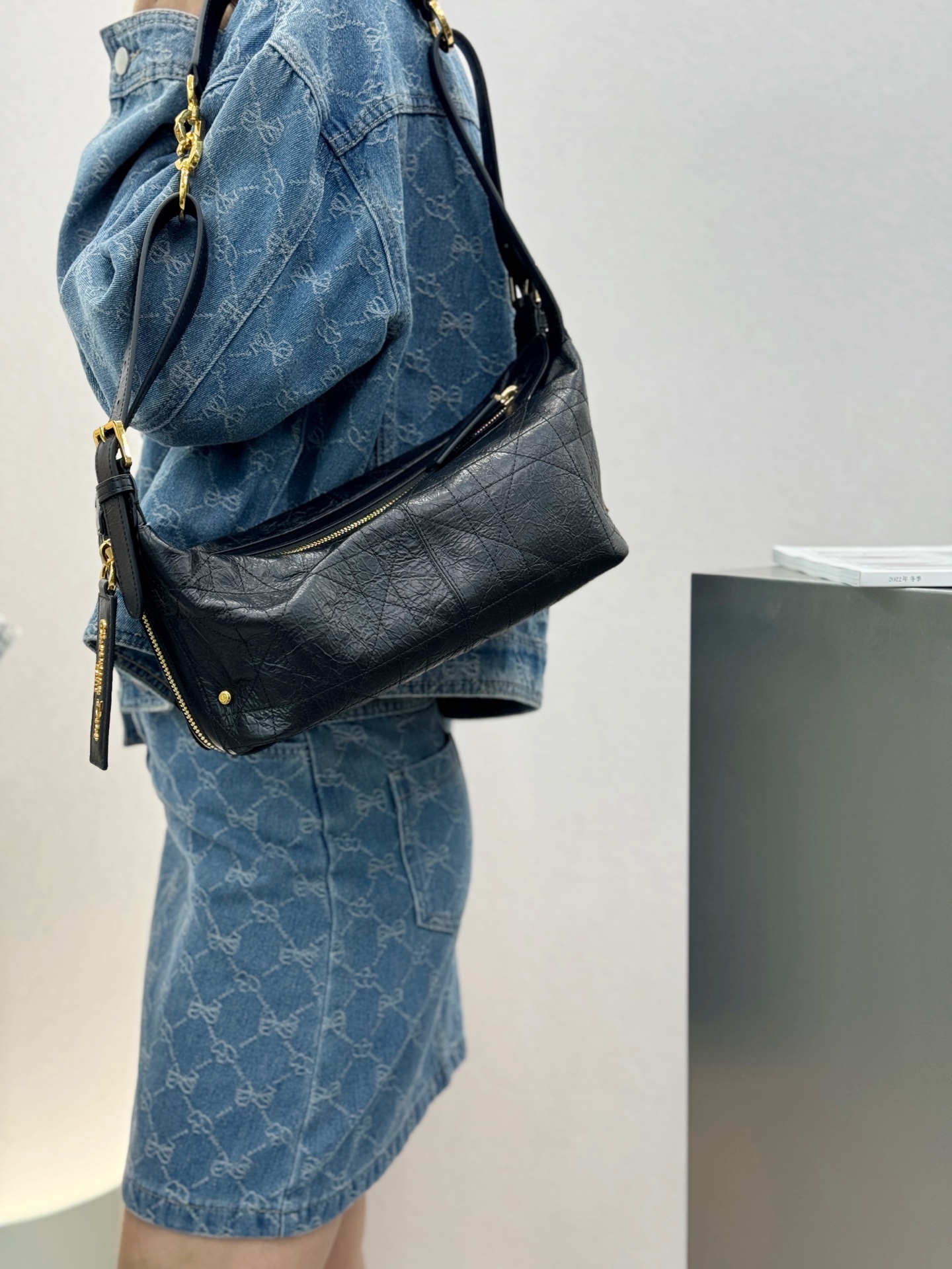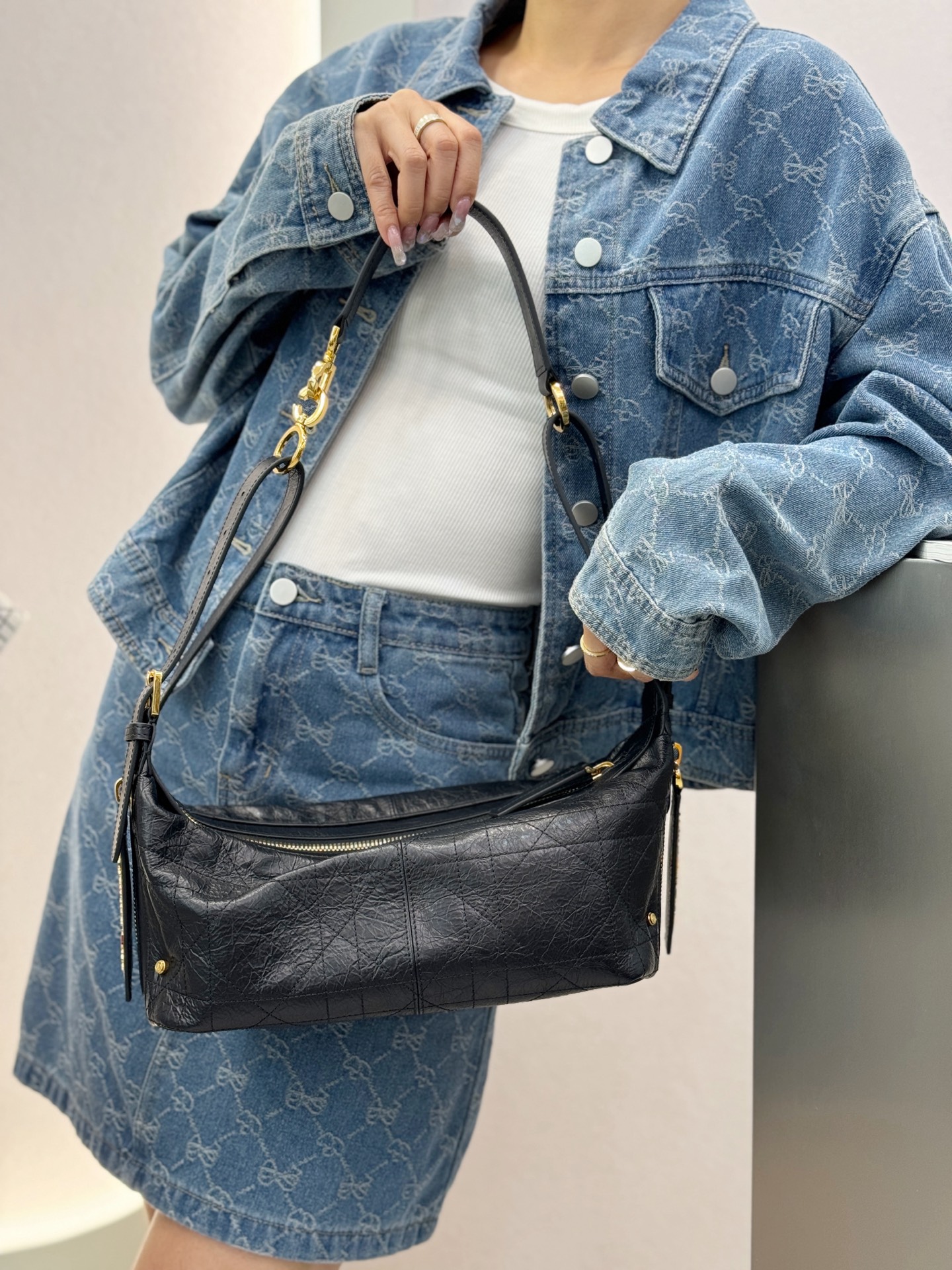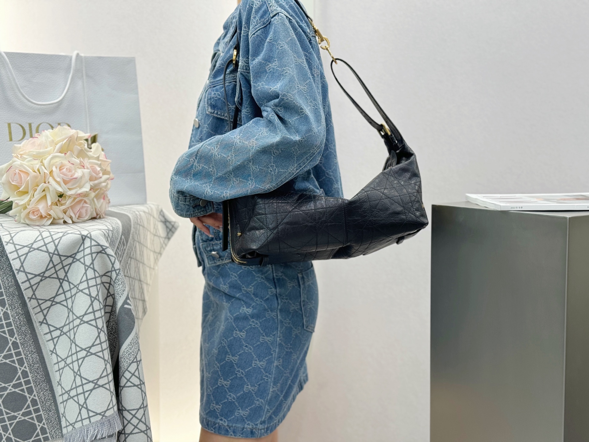 最新王炸款,采用进口原厂黑色褶皱小牛皮➕金色字母肩带𝐃扣 扁平超大特色藤格纹,月牙包型 复古又高级 , 柔软又随意ᡣ𐭩 🉑手提、单肩、斜挎,多种背法 百变之余,松弛感💯 超大容量完全满足日常出行使用🙋🏻♀️ 背上秒变街拍女王👑