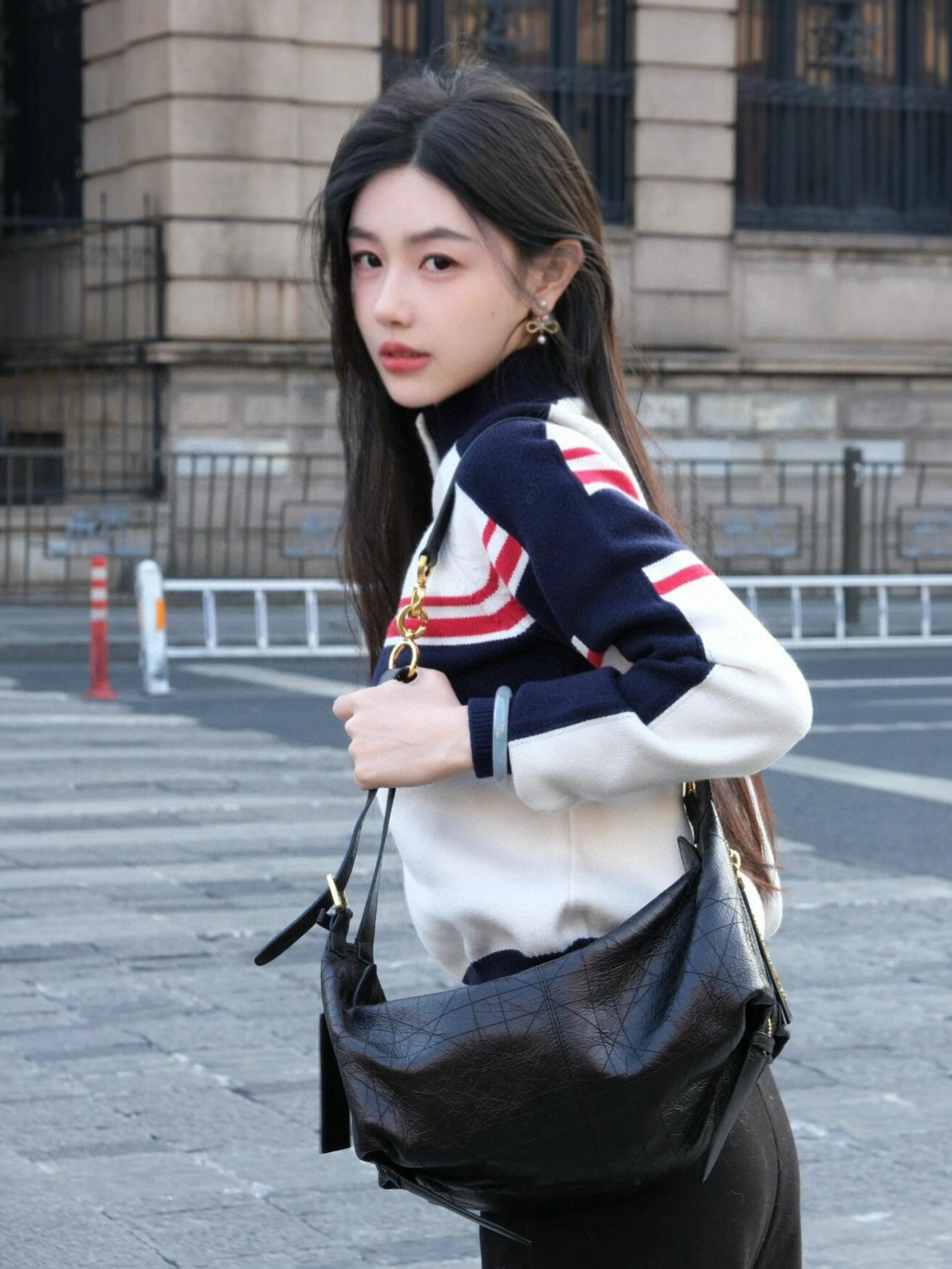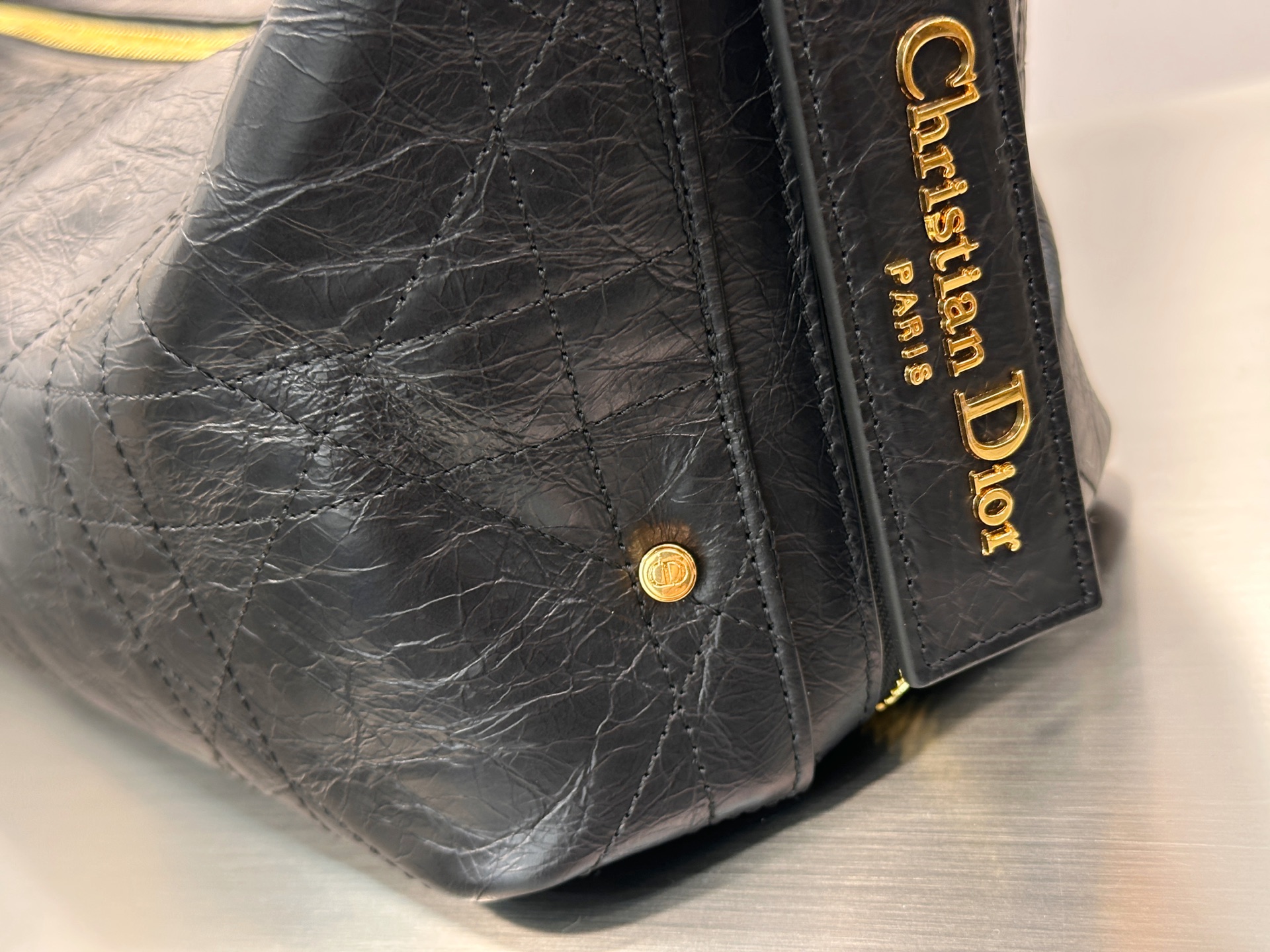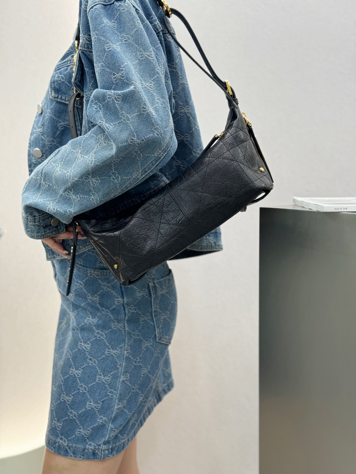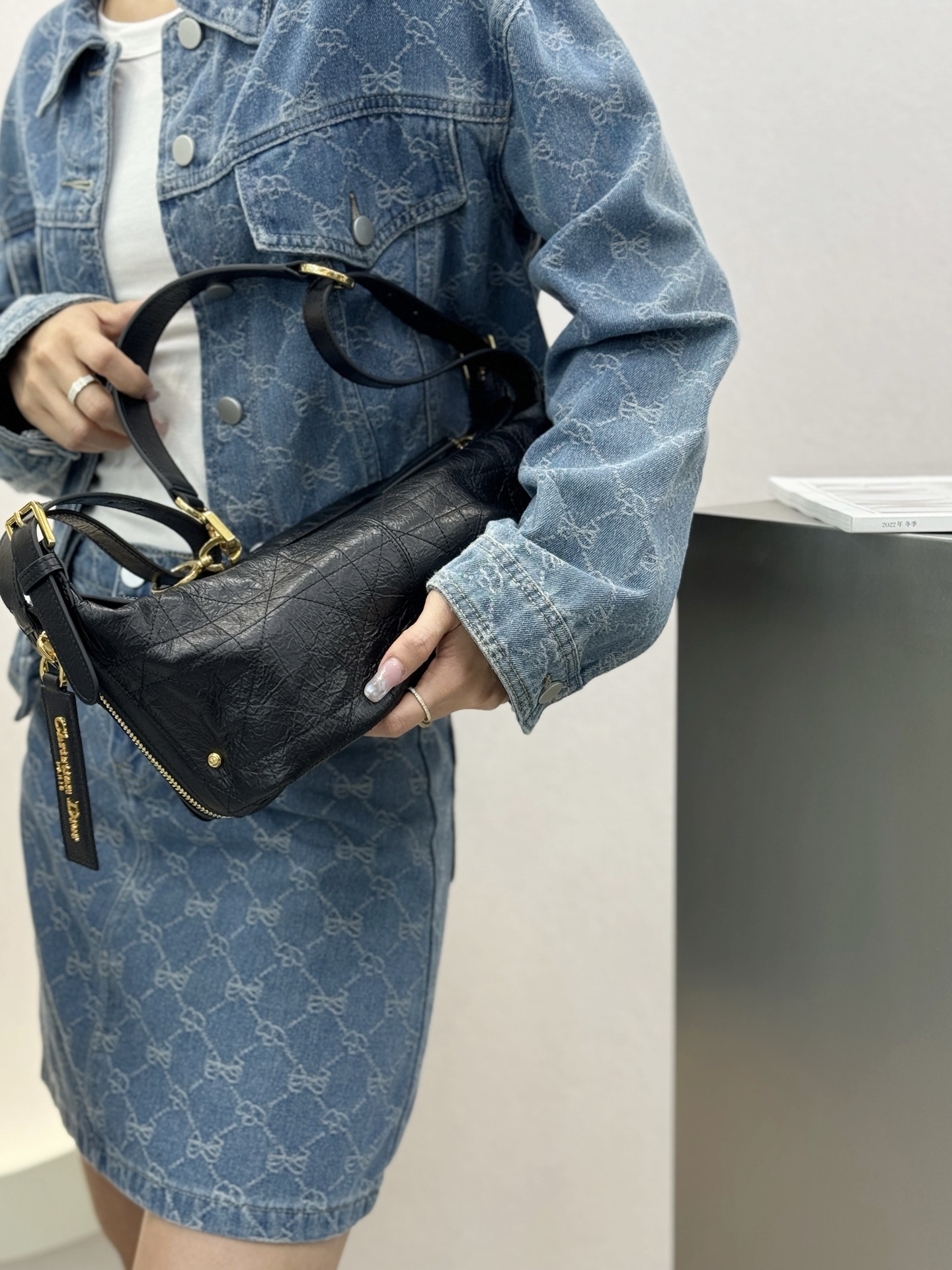 最新王炸款,采用进口原厂黑色褶皱小牛皮➕金色字母肩带𝐃扣 扁平超大特色藤格纹,月牙包型 复古又高级 , 柔软又随意ᡣ𐭩 🉑手提、单肩、斜挎,多种背法 百变之余,松弛感💯 超大容量完全满足日常出行使用🙋🏻♀️ 背上秒变街拍女王👑