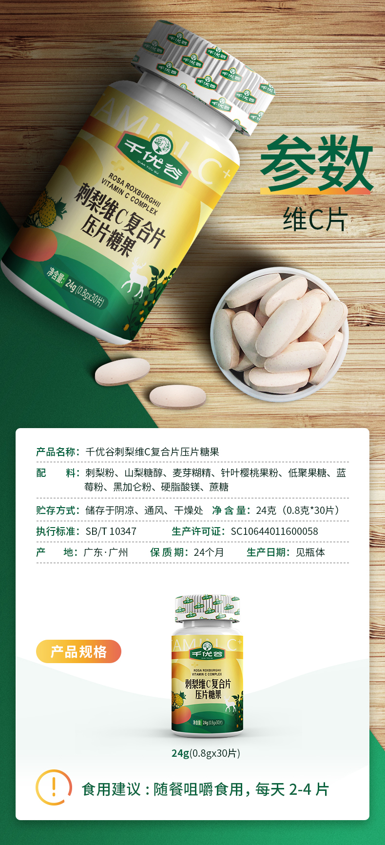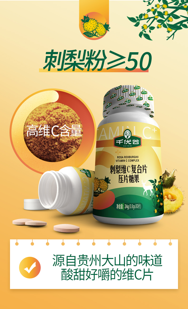 贵州黔南龙里县千优谷刺梨维C片0.8*30片/瓶