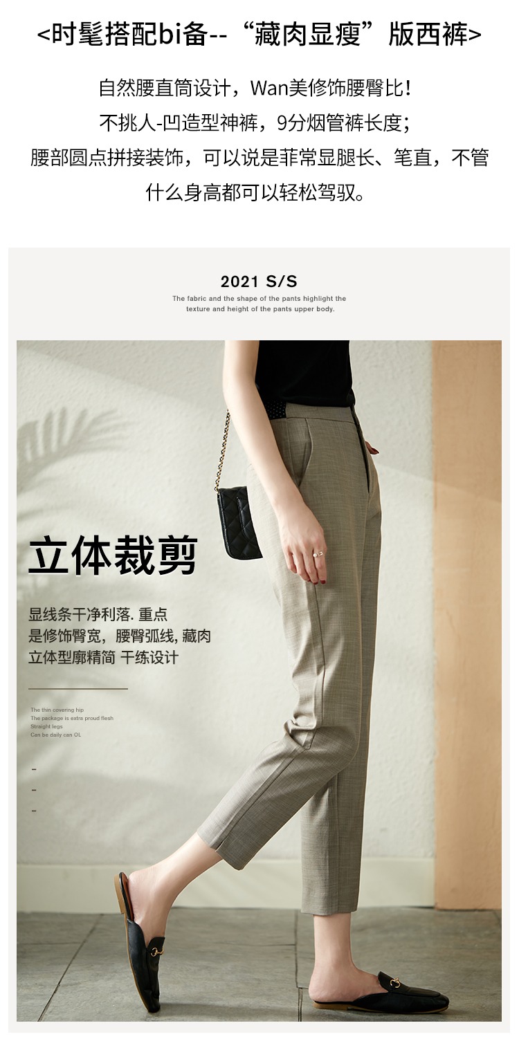 【现货7天】高腰九分休闲裤女2023秋季新款直筒裤韩版显瘦西装裤宽松裤子