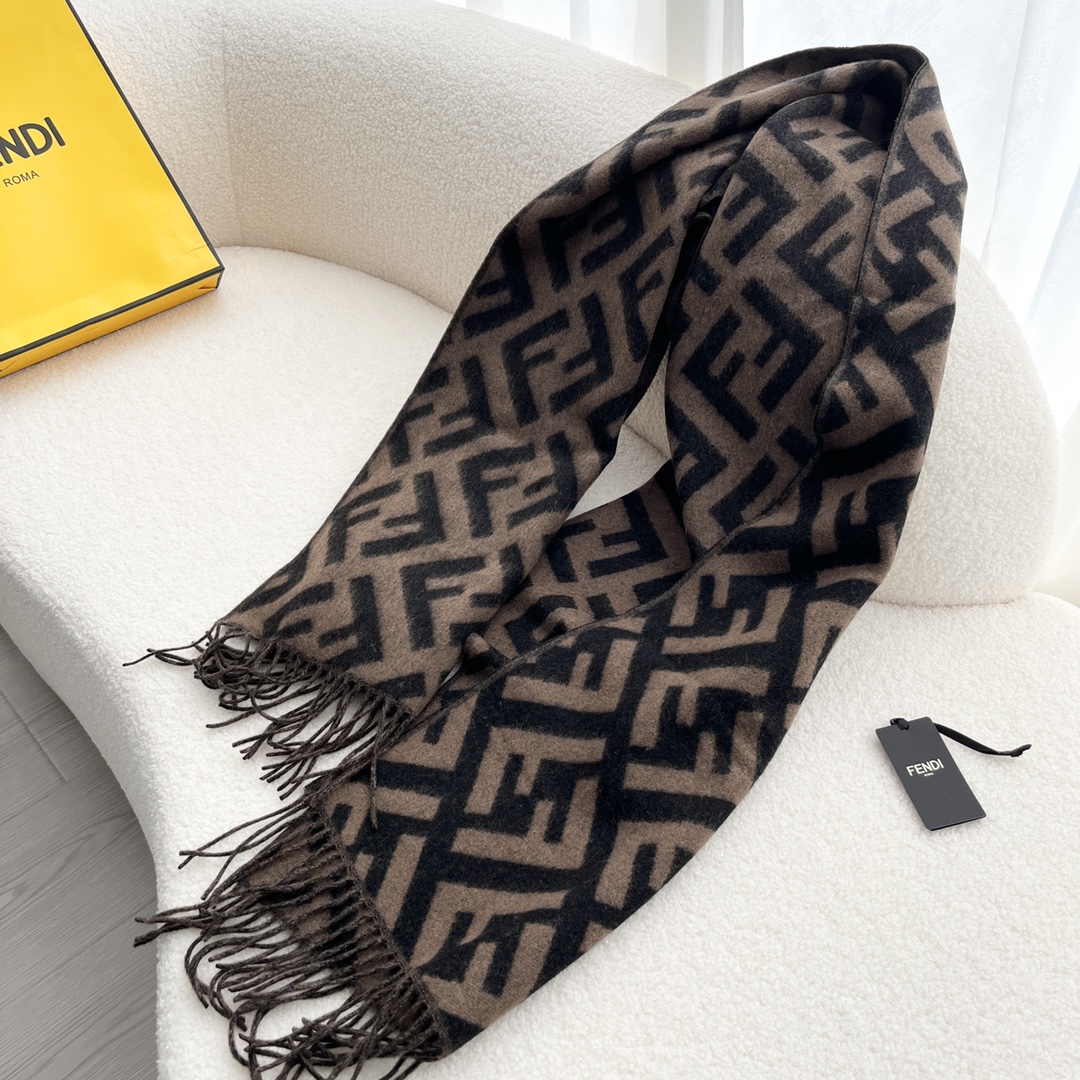 Fendi最火的围巾,全世界都在抢的老花FF字母款,上身效果气场非常强大!纯手工精梳处理。绝对是重磅!不同于希望的围巾组织构造,这款围巾的效果很特别,手感柔软成色有质感,纱线细致分明,版型更是非常有型,用手机拍出来都能惊艳,高密度精工细作❗️大牌的东西真的非常考究,匠心之作。羊绒
