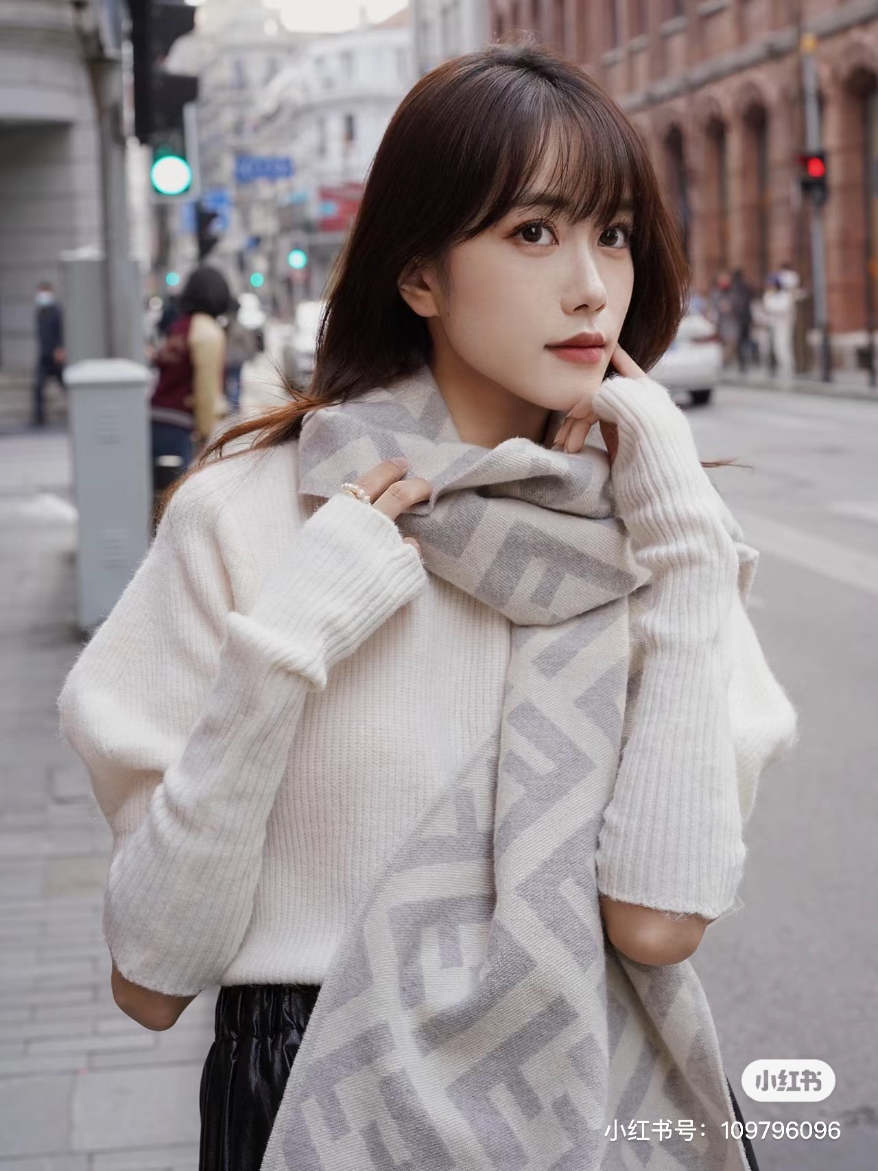 【FF字母老花羊绒围巾】