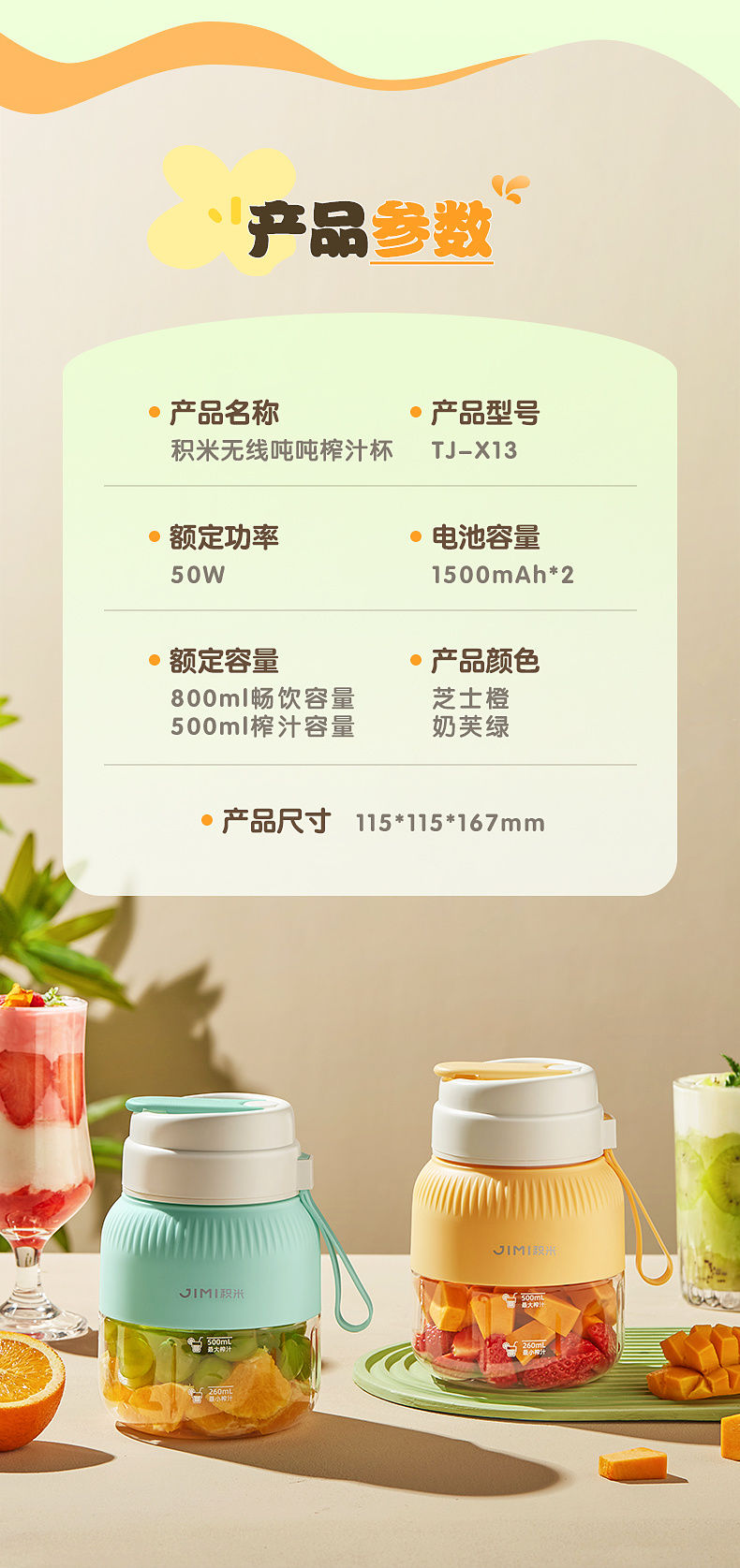 【产品名称】积米无线便携吨吨榨汁杯TJ-X13
