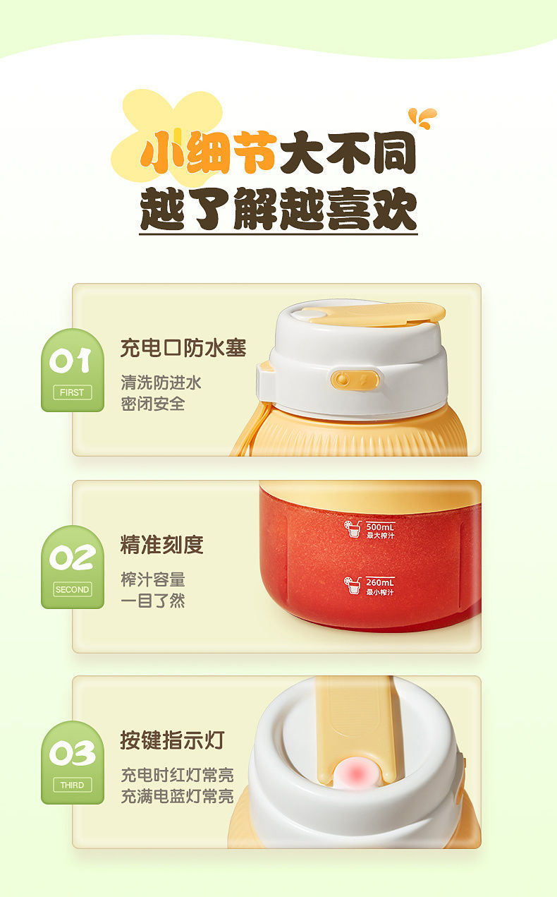 【容量】800ml 直饮容量 / 500ml 榨汁容量