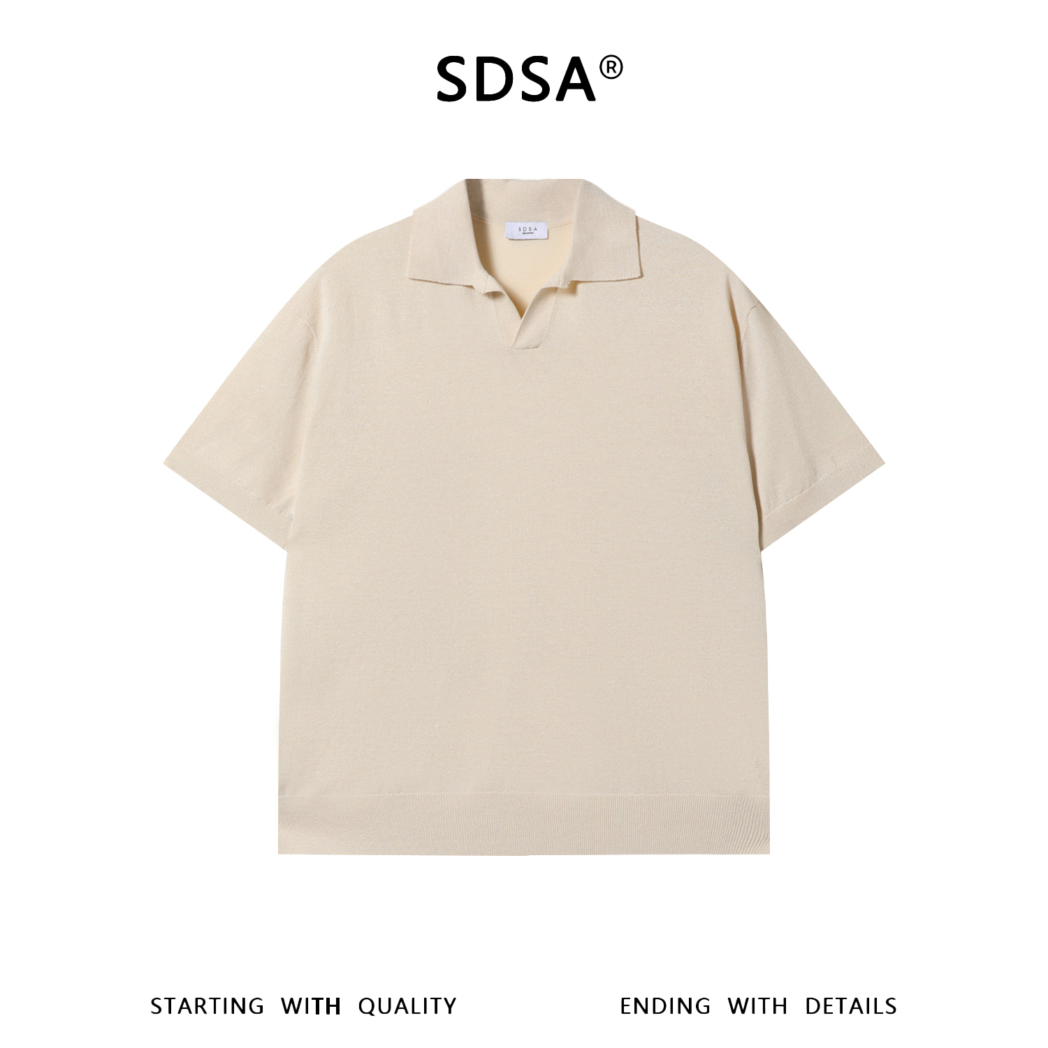 SDSA男装2026新款高贵轻奢老钱风纯色简约针织海鸥领短袖T恤百搭