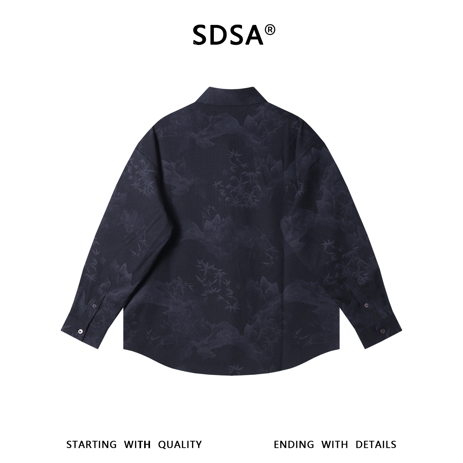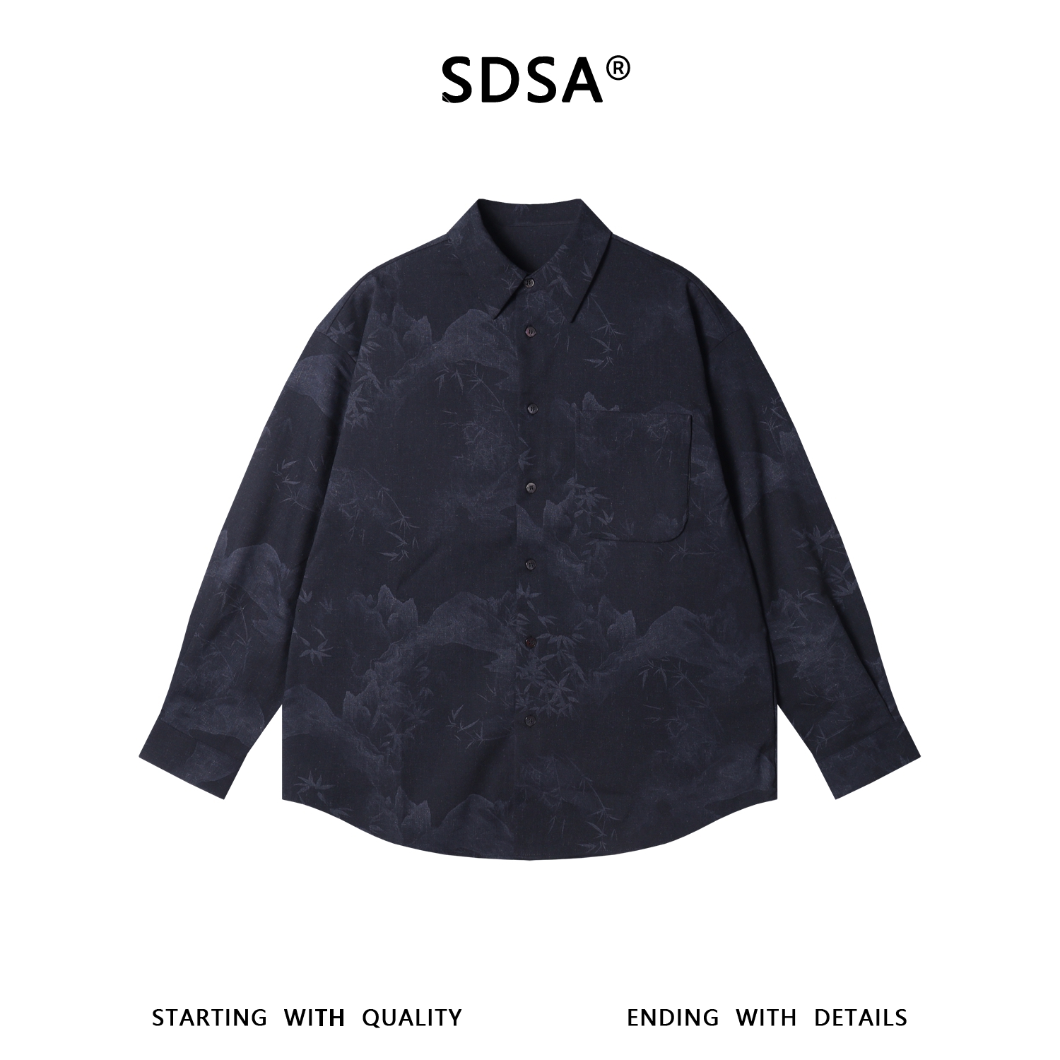 SDSA男士秋冬新款痞帅男装国潮扎染印花树叶长袖衬衫百搭时尚衬衣