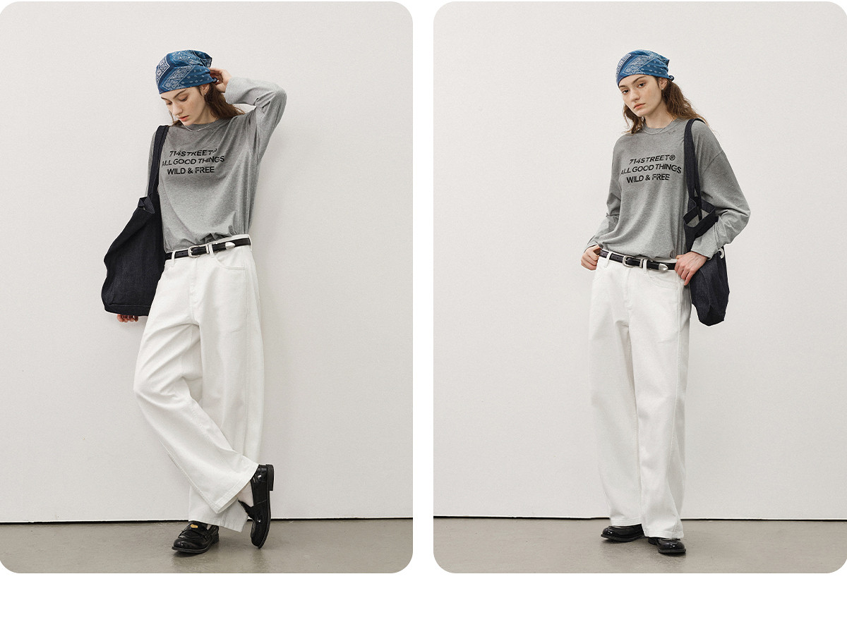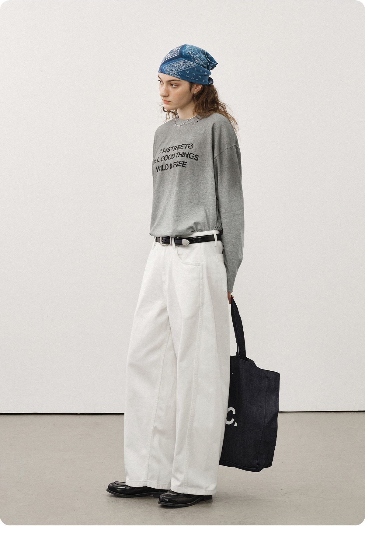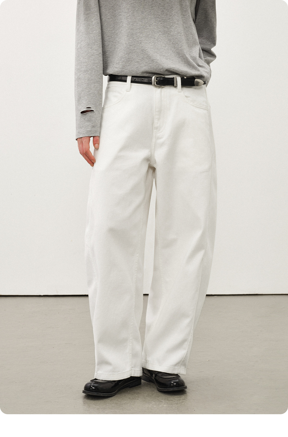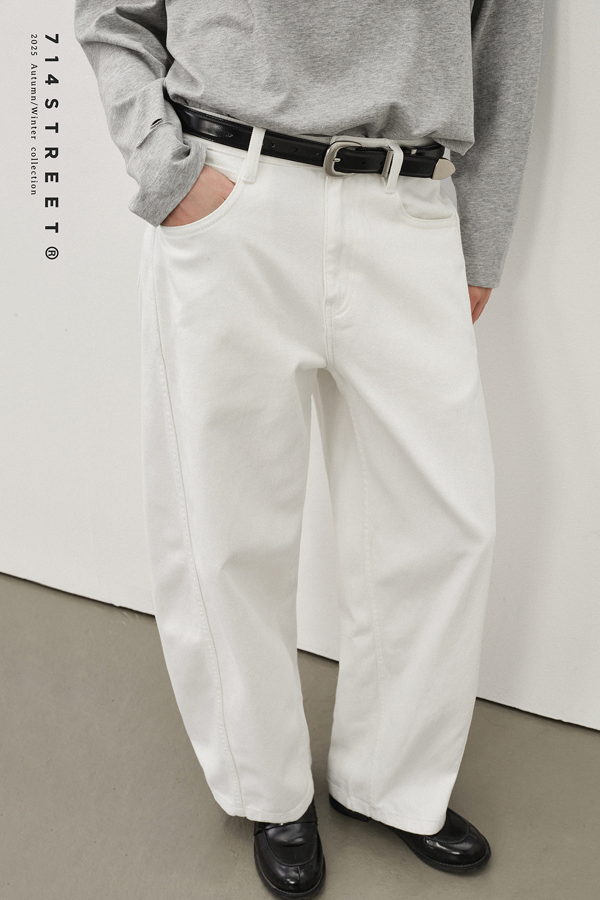 714street水洗纯棉弯刀裤男2025秋季新款休闲裤潮牌宽松白色裤子