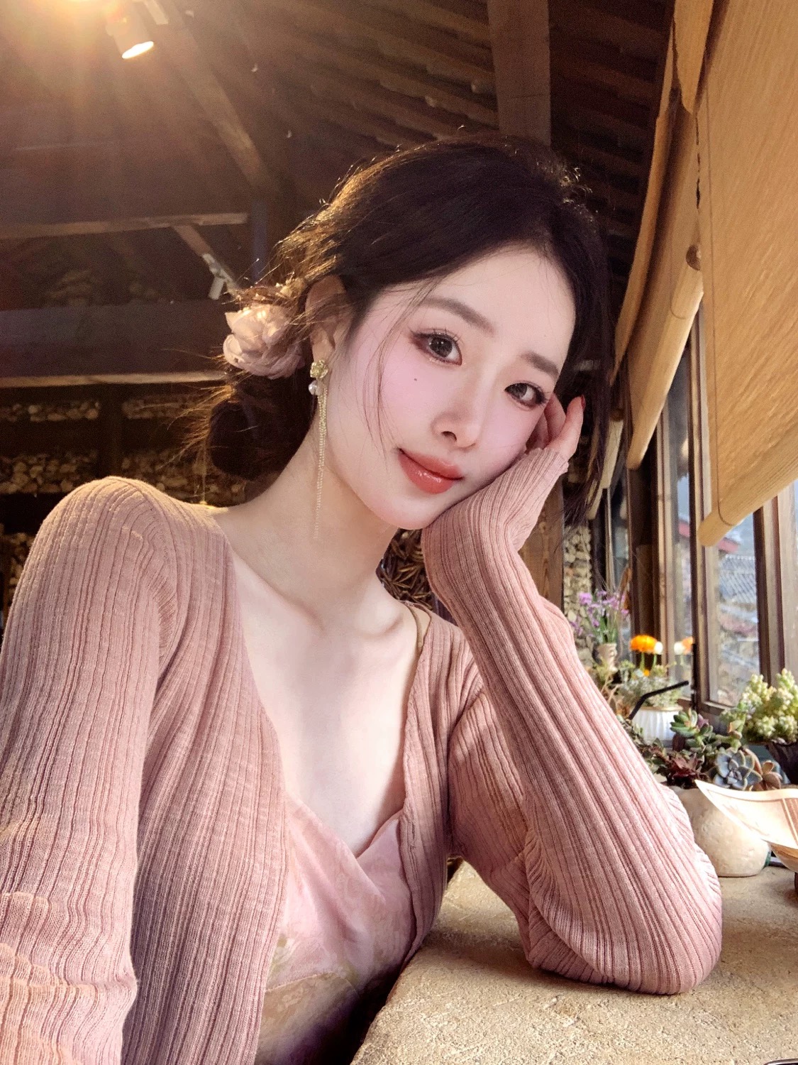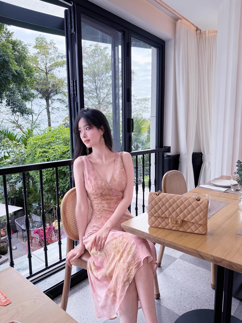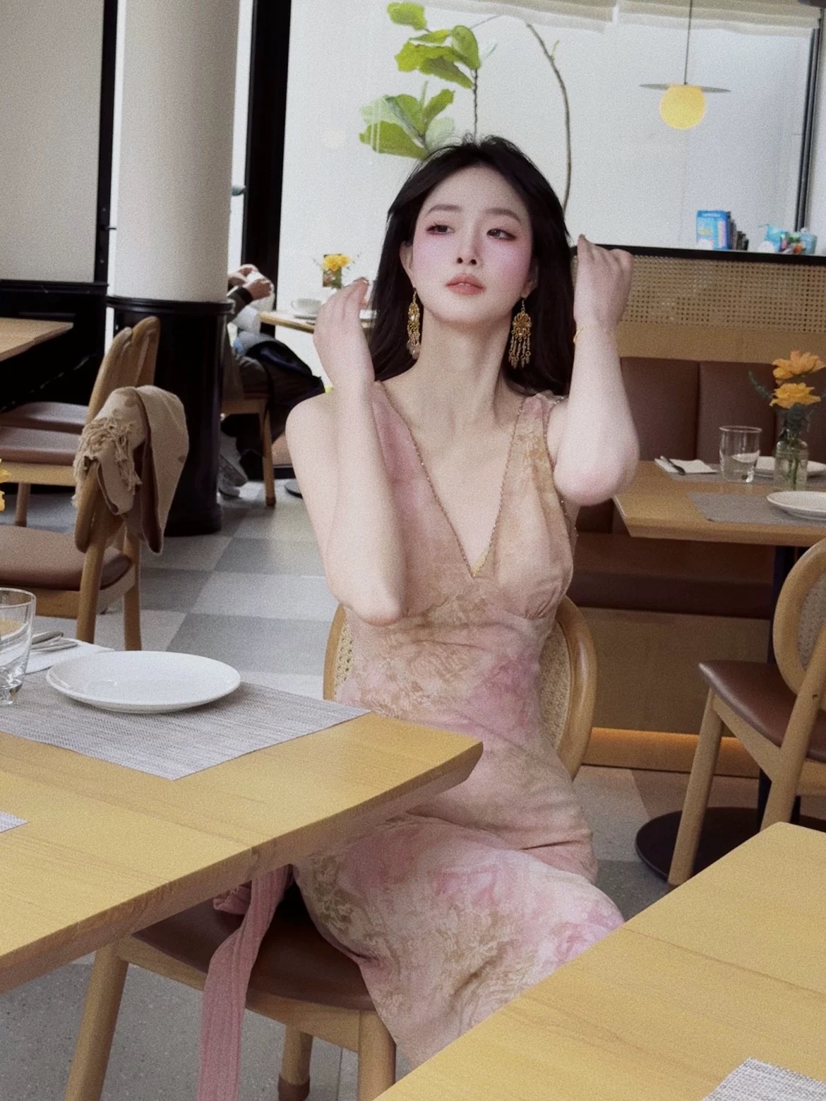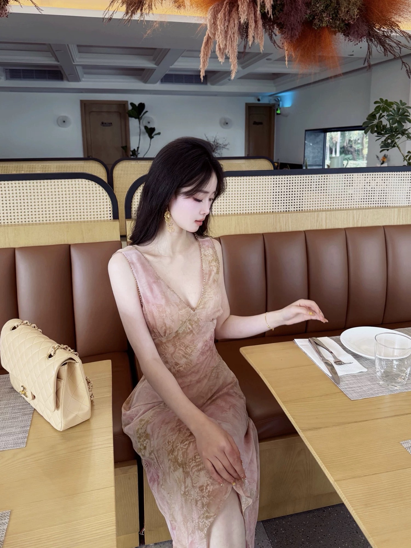 纪*希 凝脂芙蓉温柔显白斜裁显瘦V领连衣裙+披肩两件套