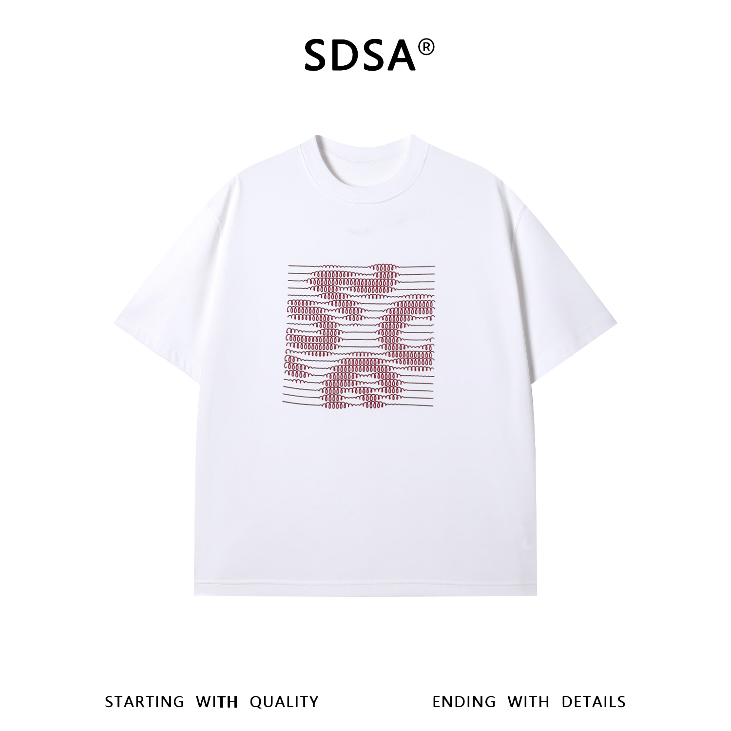 SDSA男装2026新款高贵轻奢韩系简约撞色刺绣线条圆领短袖T恤百搭