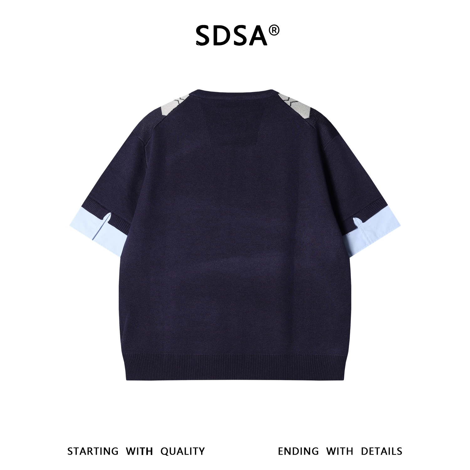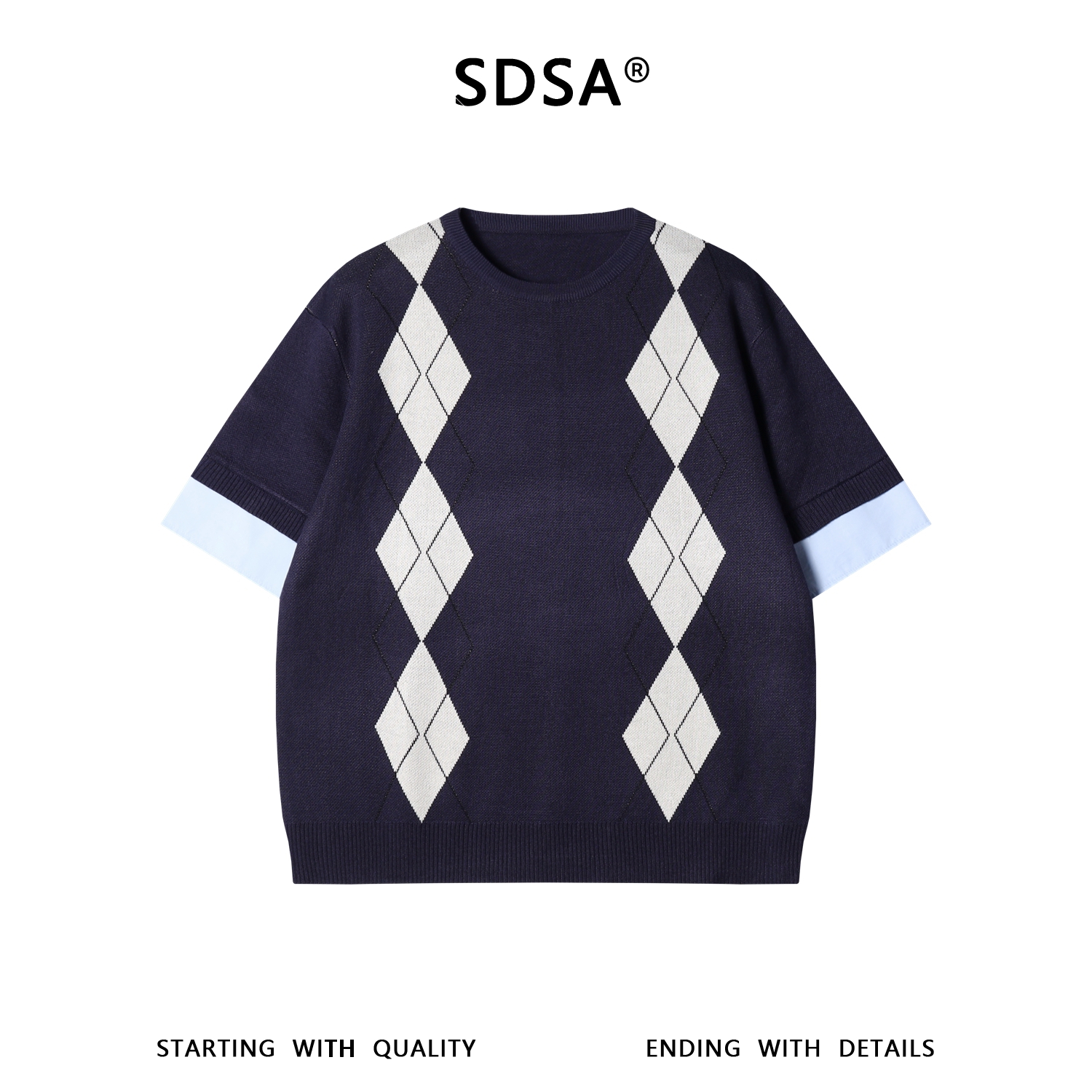 M183SDSA男装2026新款高贵轻奢复古撞色菱形格圆领短袖T恤百搭时尚
