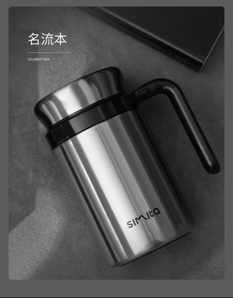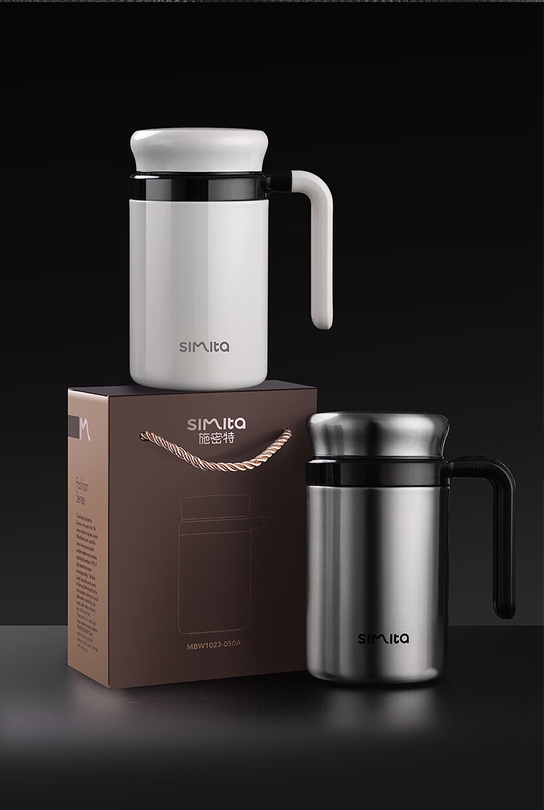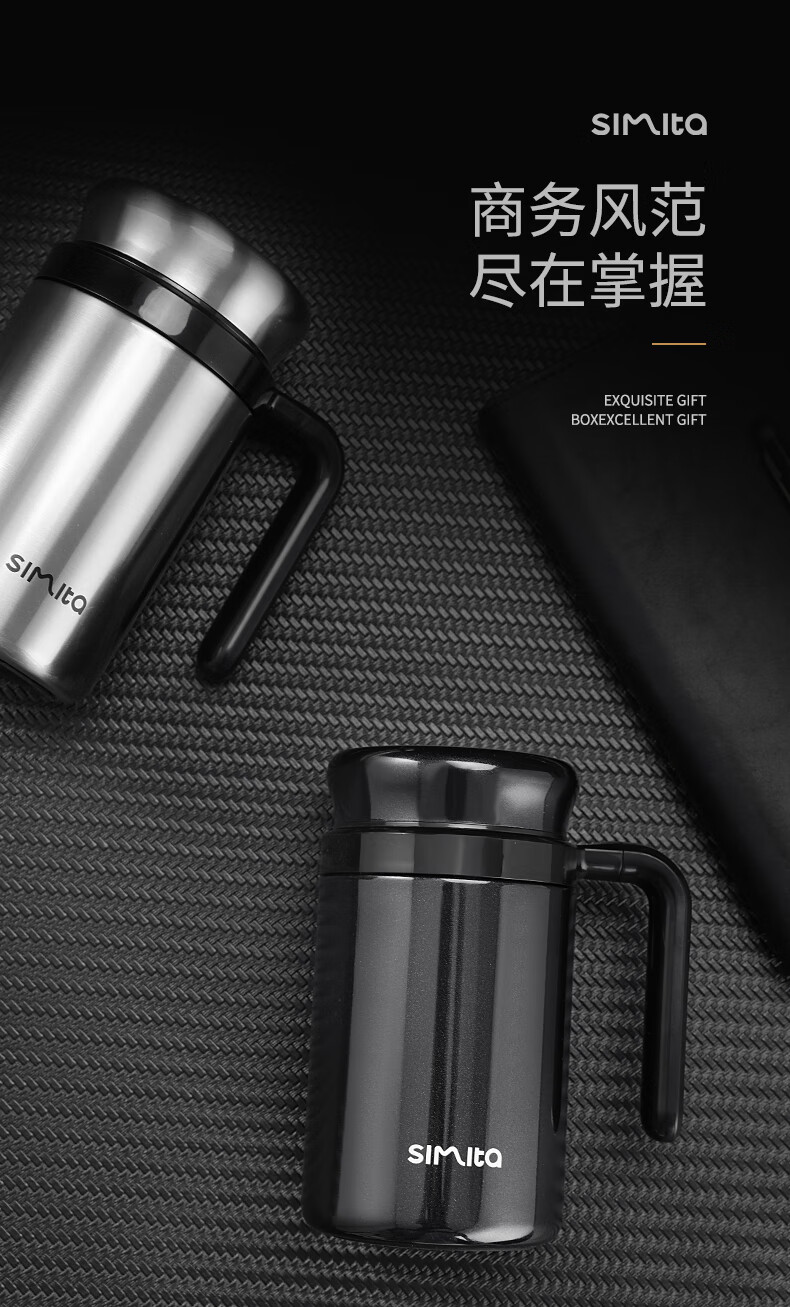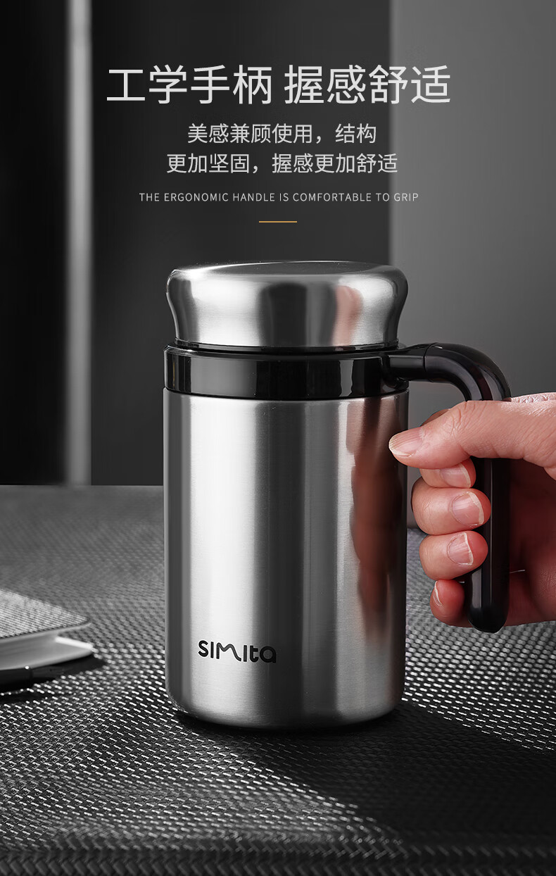 施密特(simita)保温杯男女士商务316不锈钢带手柄办公室带把滤网泡茶喝水杯子 MBW1023-050A