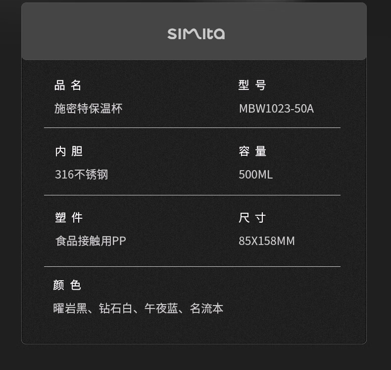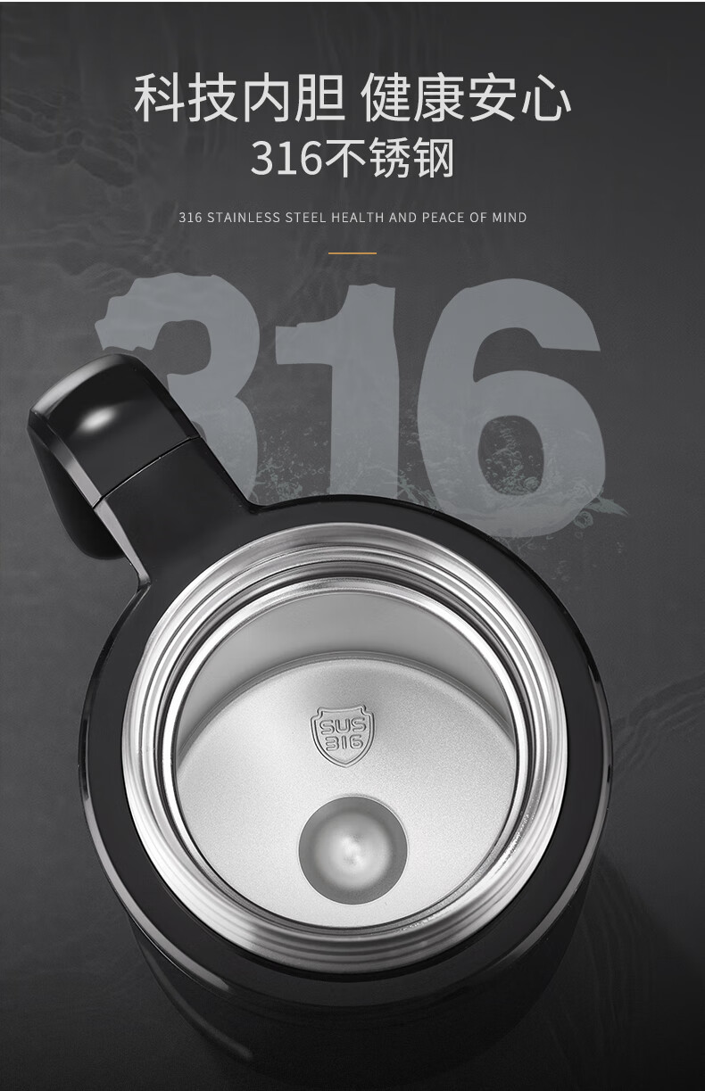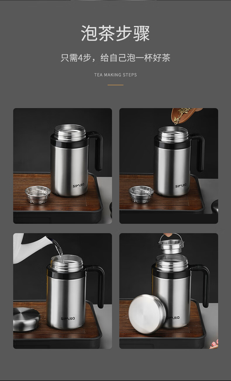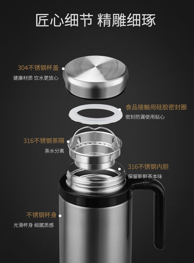 施密特(simita)保温杯男女士商务316不锈钢带手柄办公室带把滤网泡茶喝水杯子 MBW1023-050A