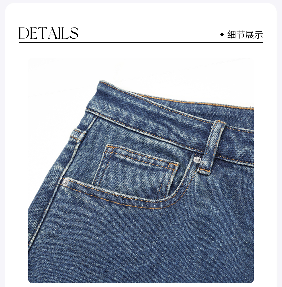ROMI STUDIO”丹宁羽 绒裤“高腰复古土耳其弹力加绒牛仔裤23AWN770