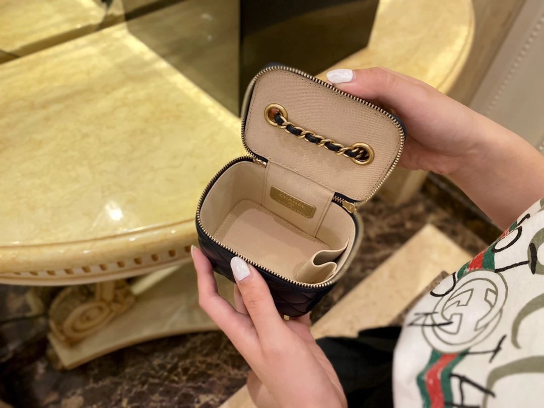 外形差不多跟一个手掌一般大容量虽小,但是可以满足日常一些必需品的收纳,内里还专门预留了一块位置用来装放口红真是好贴心是一只完整精致的小可爱没错啦!