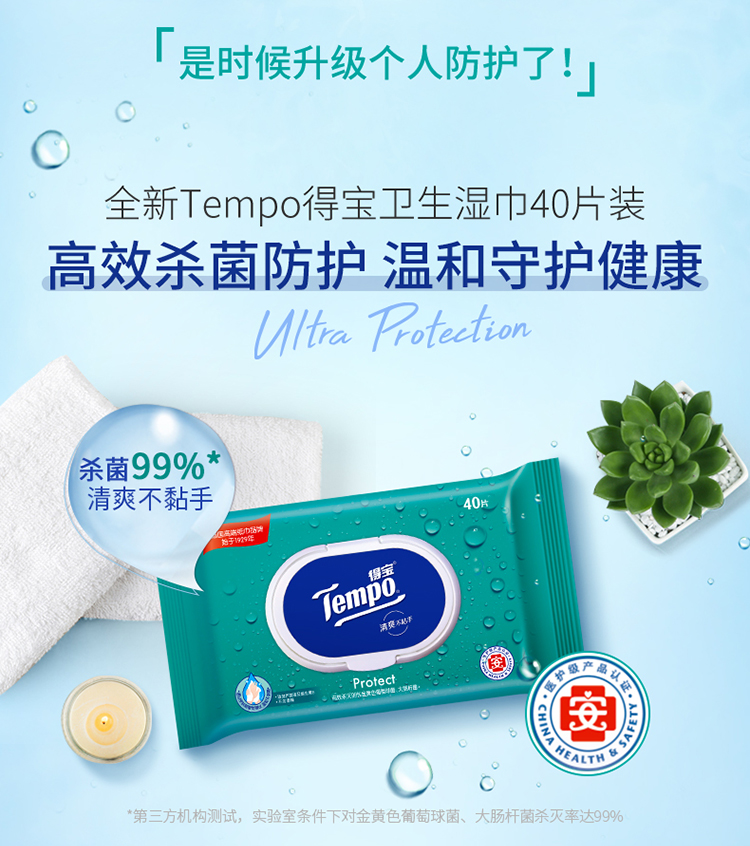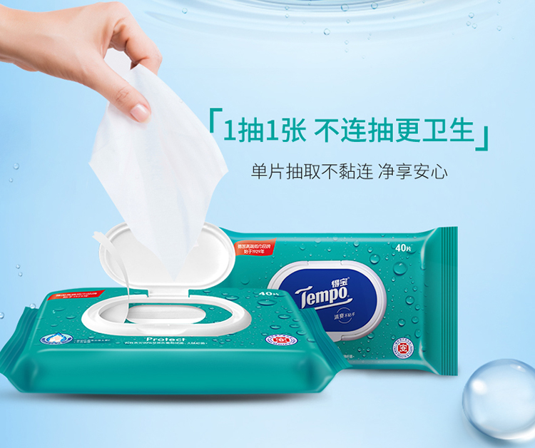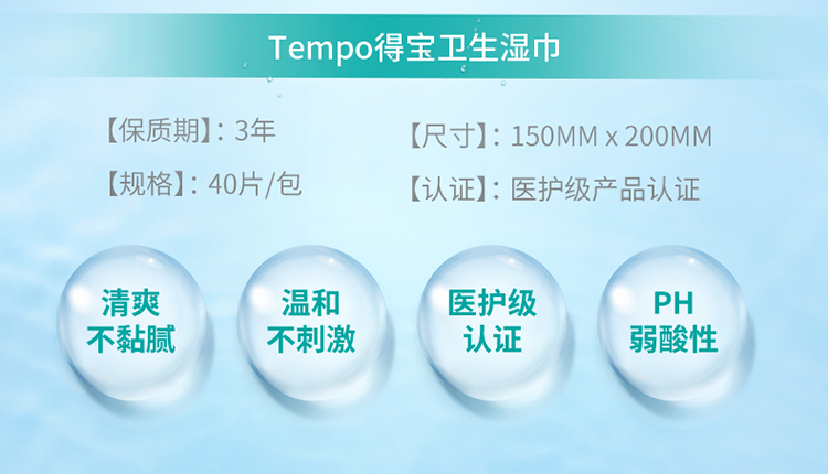 得宝(Tempo)便携卫生湿巾40片装*3包 共120片