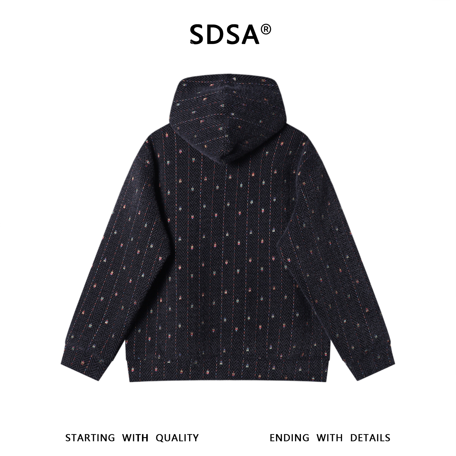 WY1289SDSA秋冬新款痞帅男装彩色刺绣绒毛波浪线设计抽绳连帽卫衣百搭