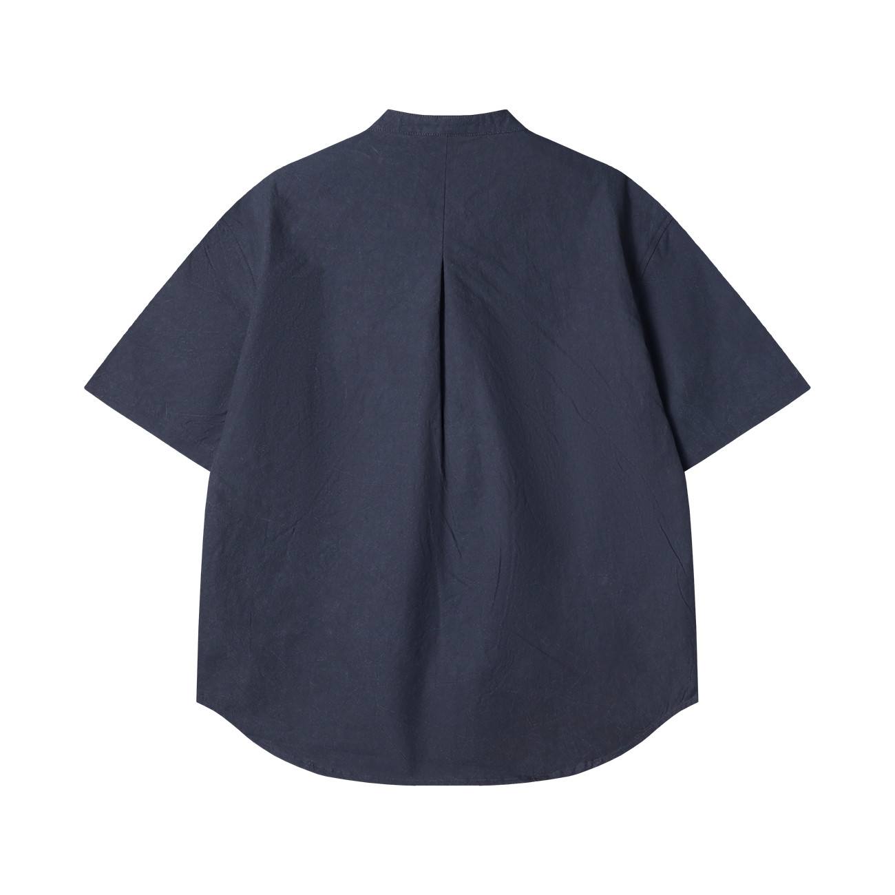 CS210夏季高级感新款纯色口袋圆领短袖衬衫百搭休闲简约复古中式衬衣