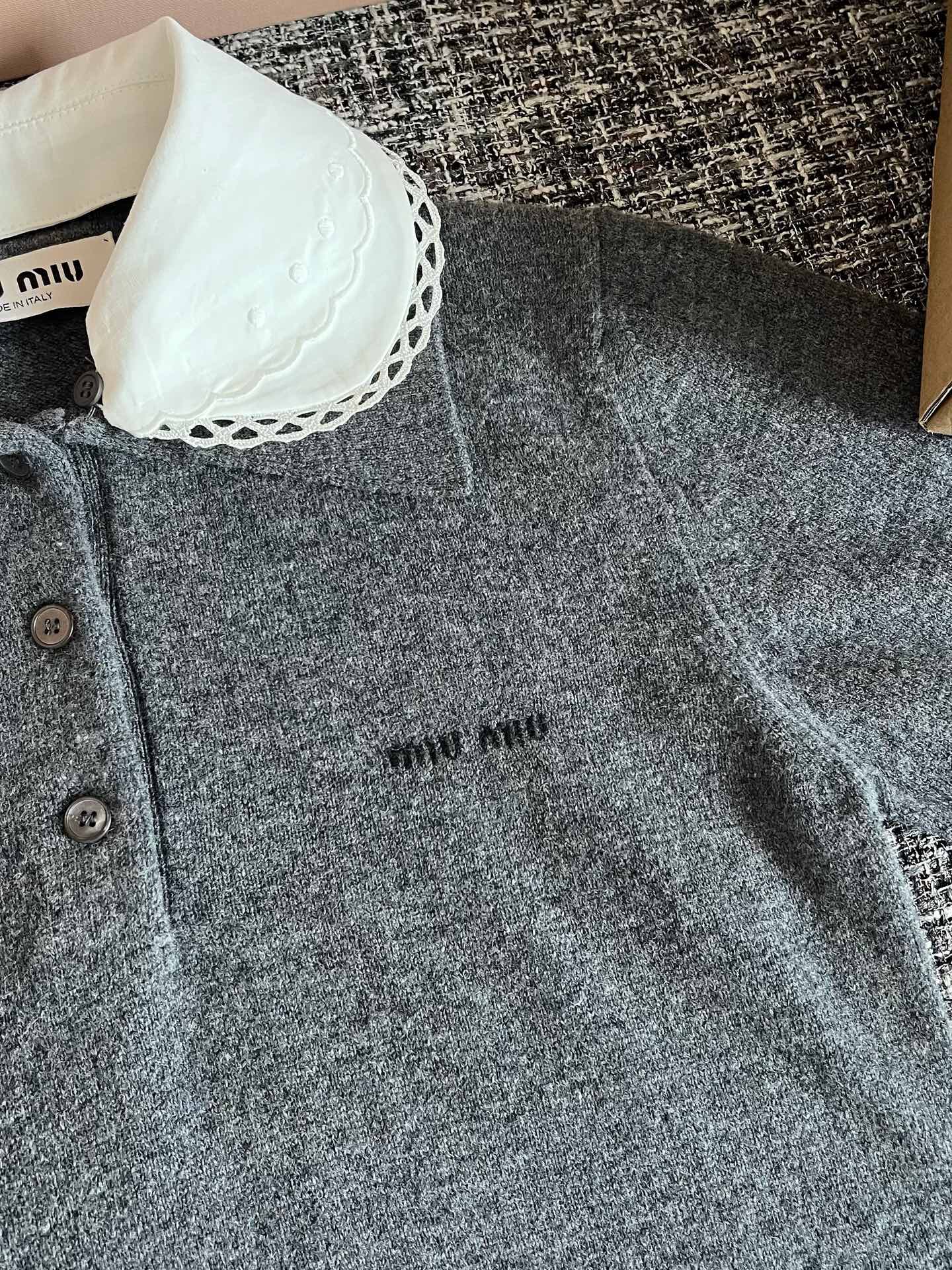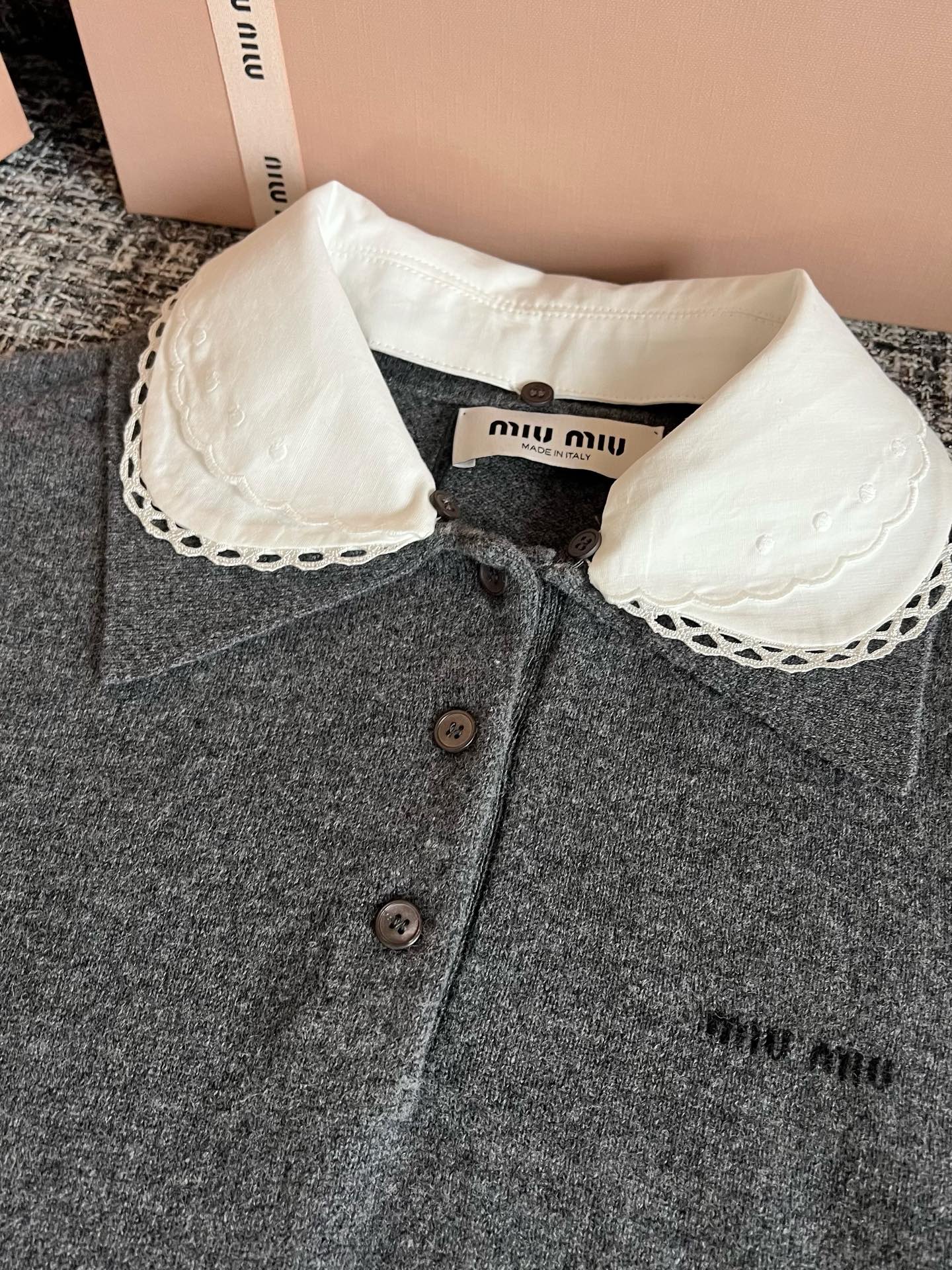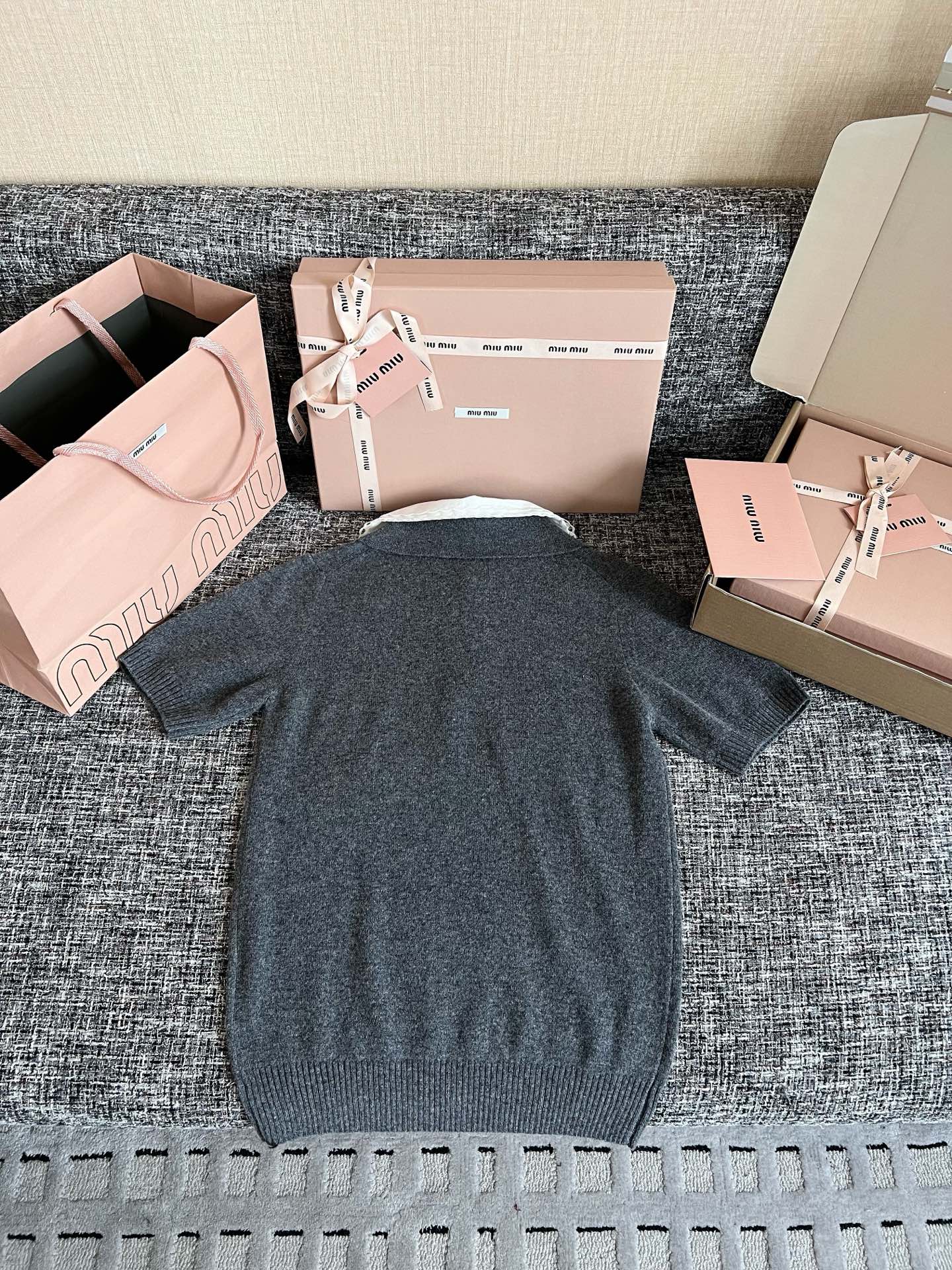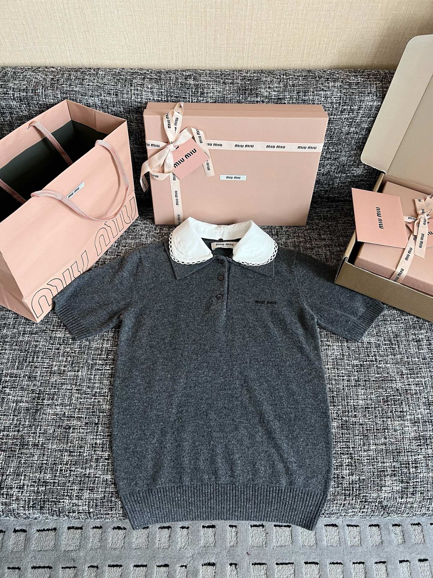 MiuMiu 26早春新款短袖🐮17800购买Zp拆解打造,订织订染美利奴进口面料🐮 真正用到100%纯棉纱线做到对版出货💪工艺放大看细节除还原度接近98以上 做工也无敌了🔥真正做到1:1还原 直接闭着眼购买👀码数:S M L