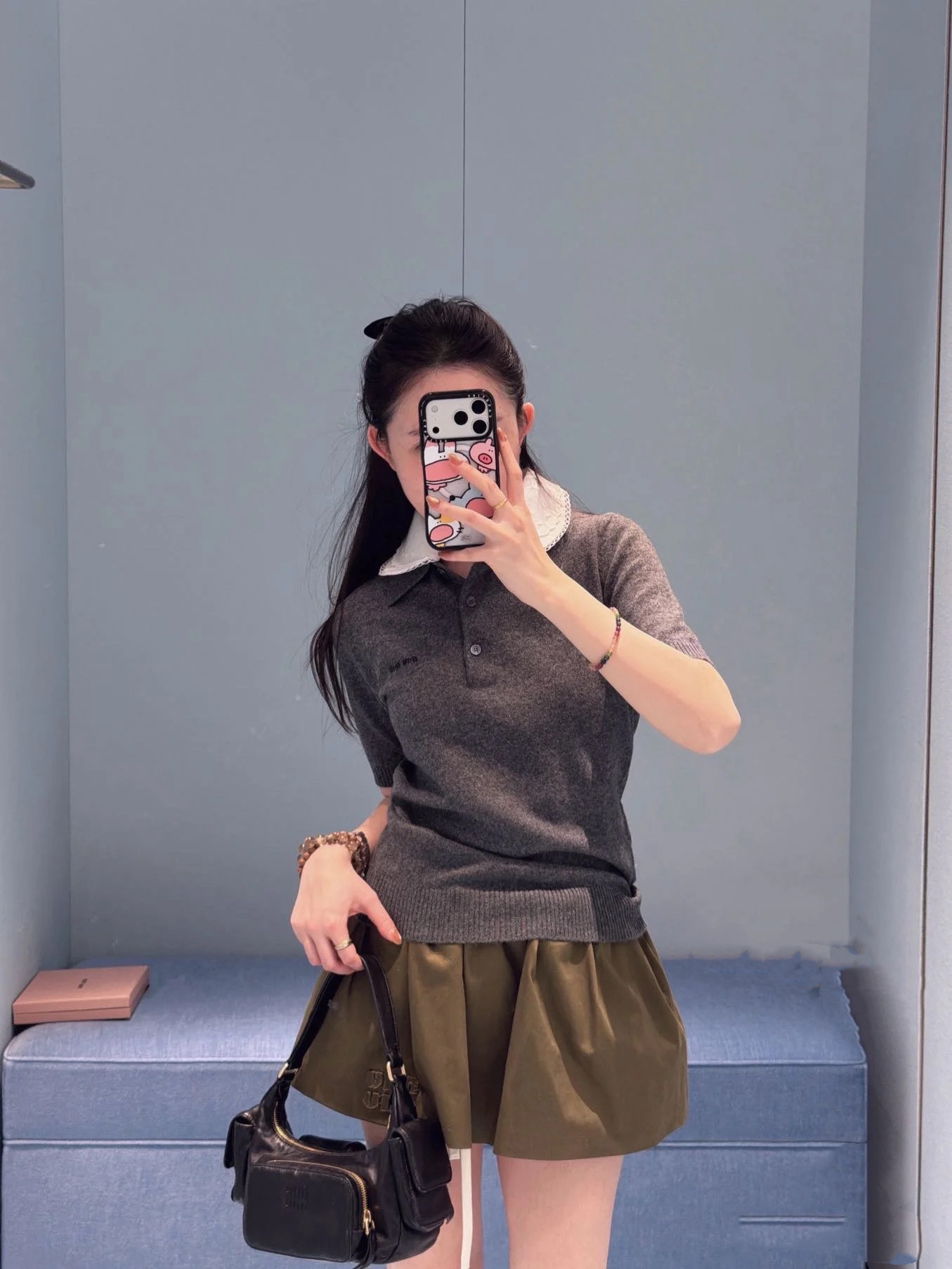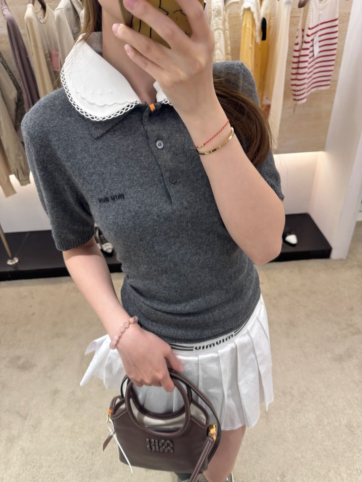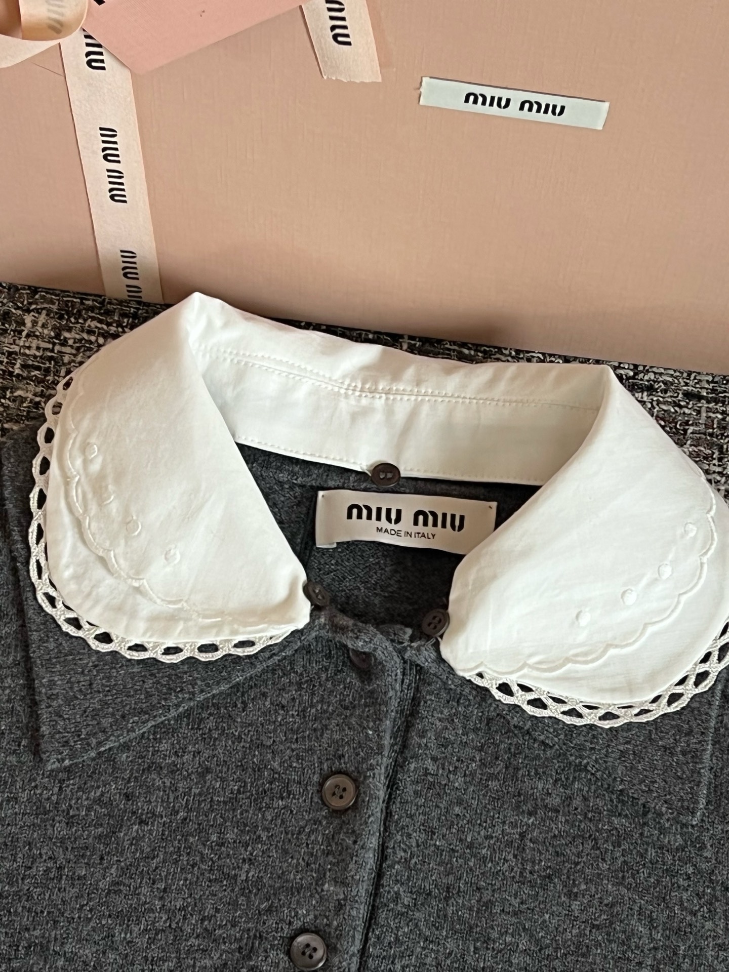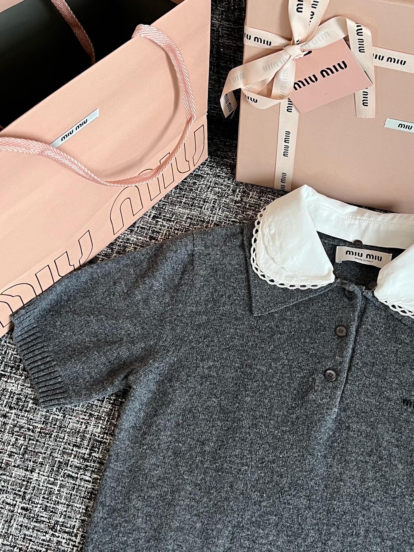 MiuMiu 26早春新款短袖🐮17800购买Zp拆解打造,订织订染美利奴进口面料🐮 真正用到100%纯棉纱线做到对版出货💪工艺放大看细节除还原度接近98以上 做工也无敌了🔥真正做到1:1还原 直接闭着眼购买👀码数:S M L