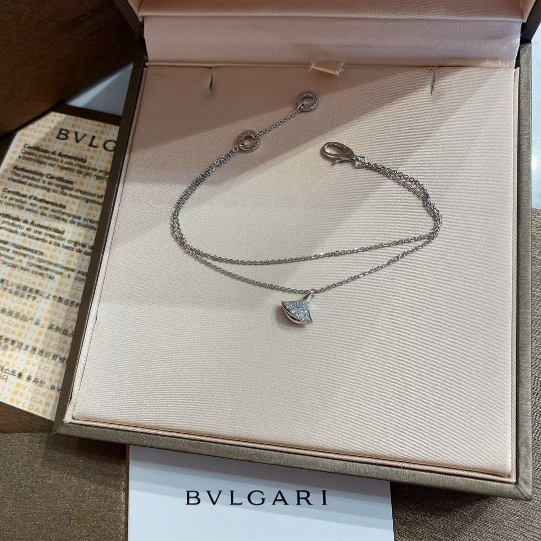 BVLGARI宝格丽 DIVAS’ DREAM系列 扇形镶钻 优雅甜美 白金色 玫瑰金色手链 女款(SJ)