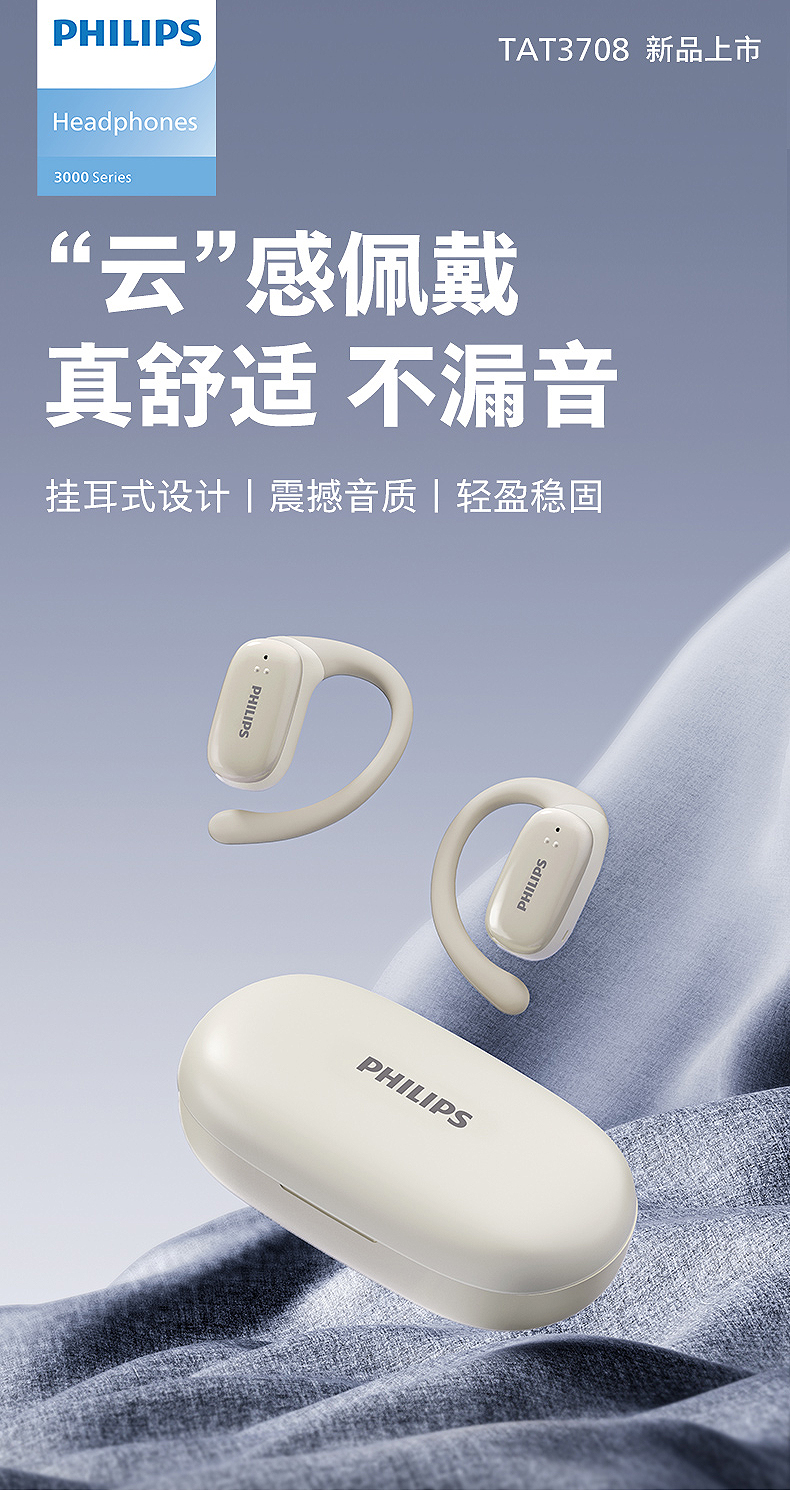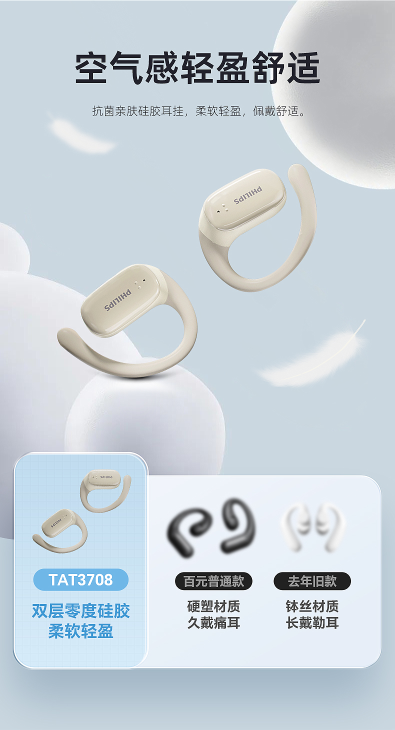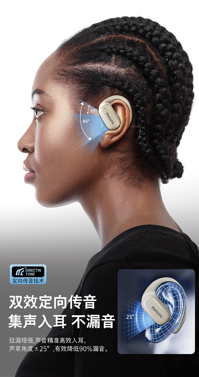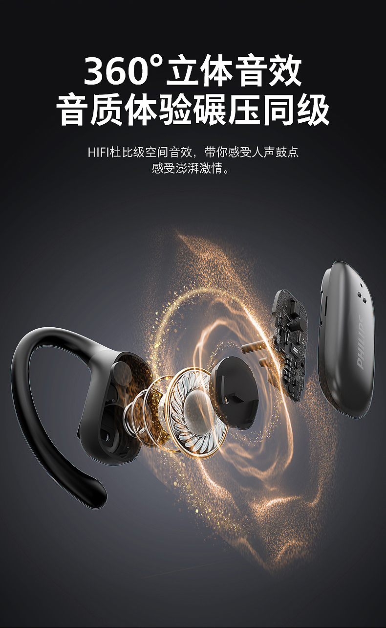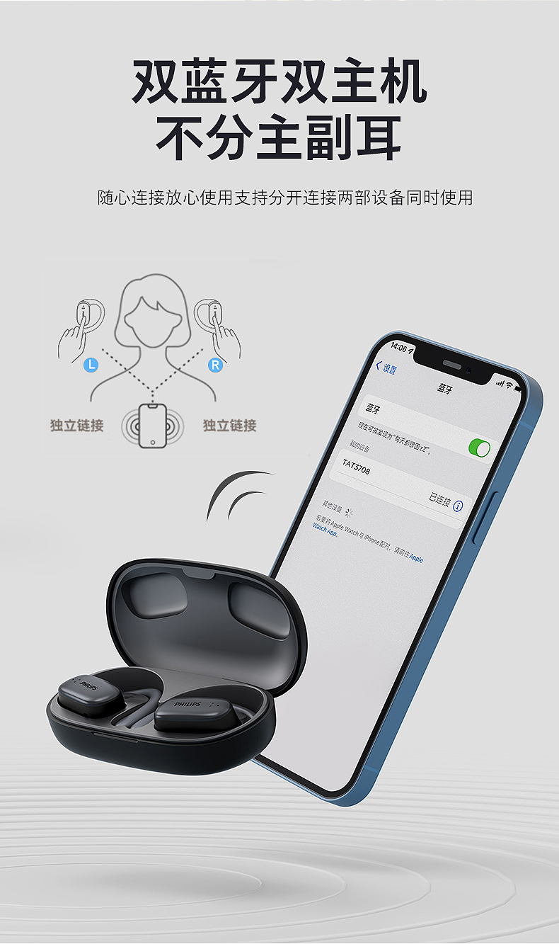 飞利浦PHILIPS蓝牙耳机挂耳式骨传导真无线开放式不入耳TAT3708