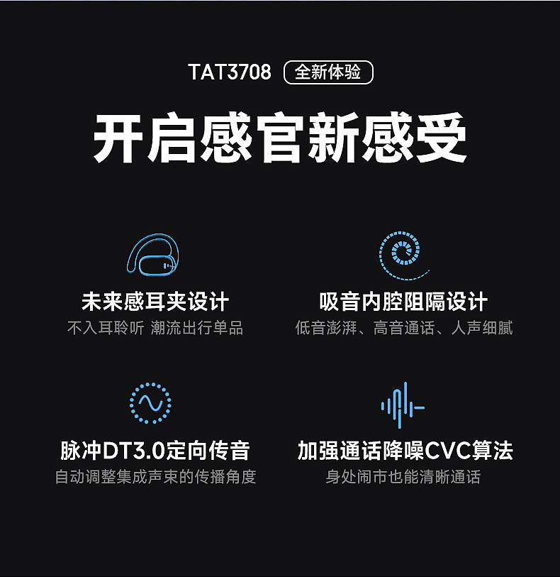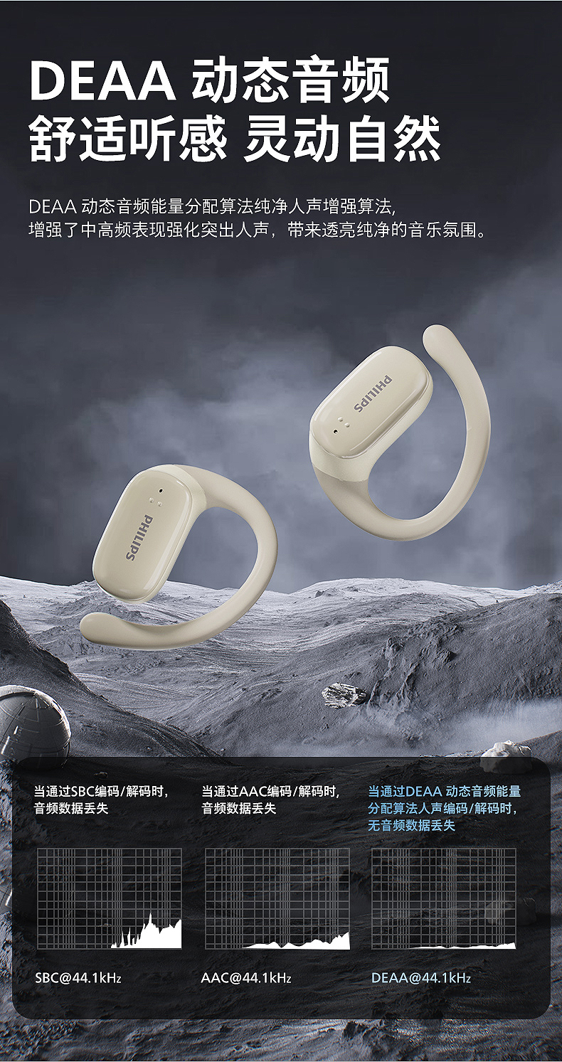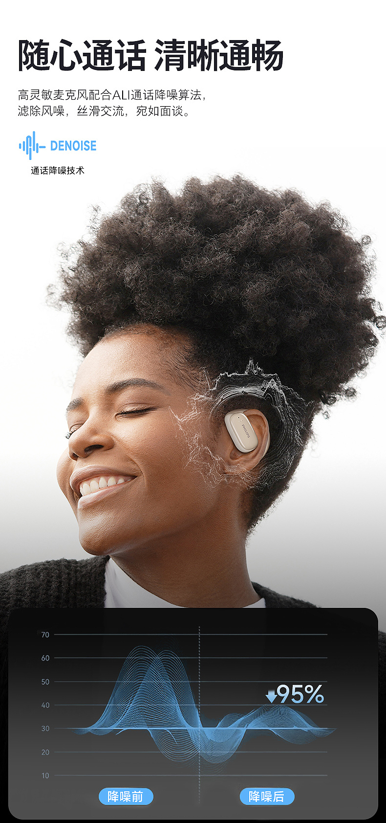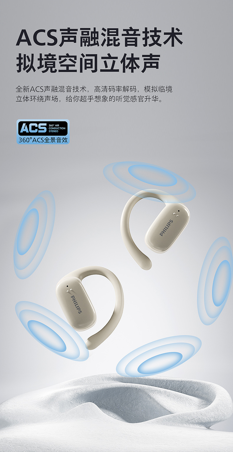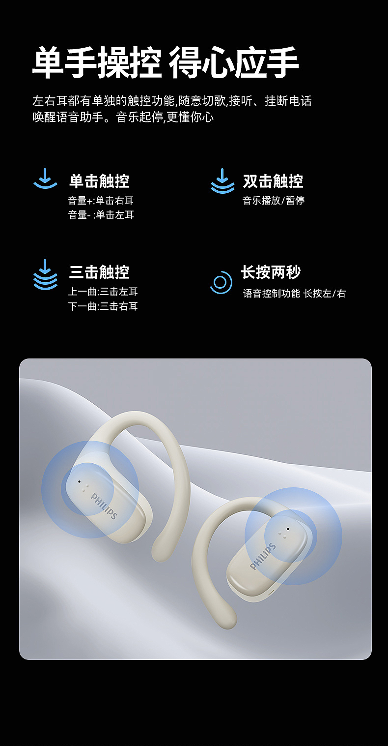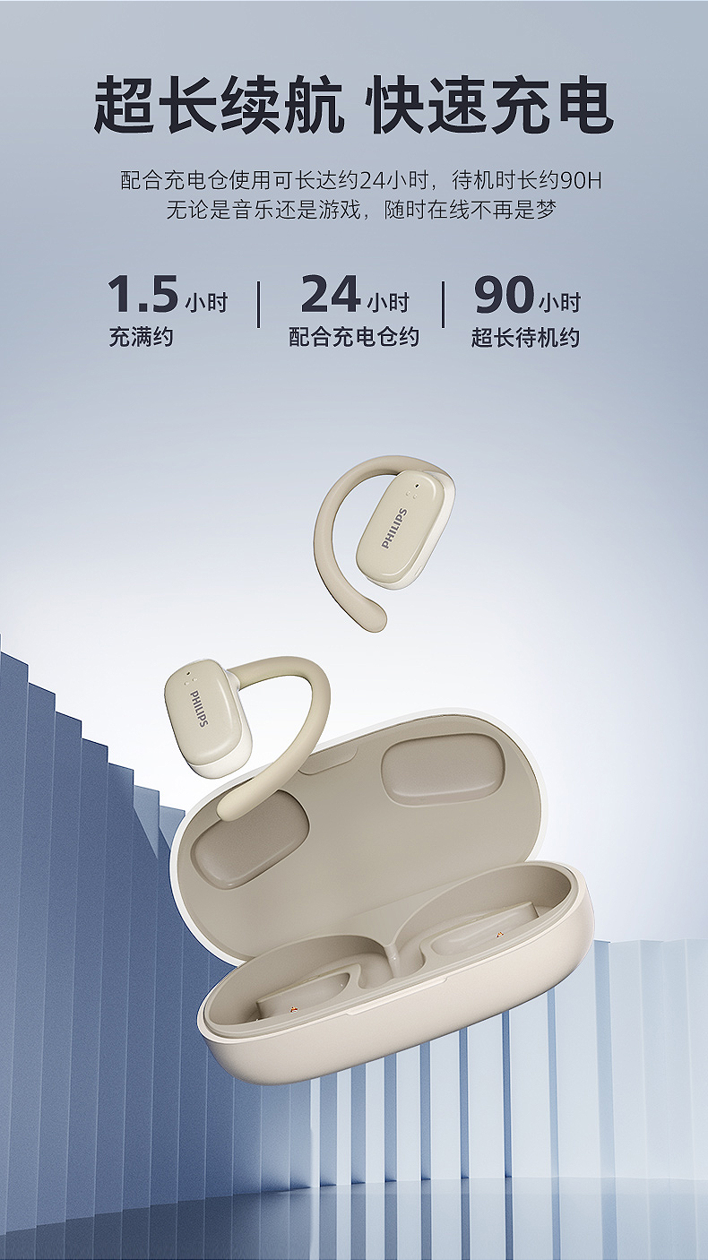 飞利浦PHILIPS蓝牙耳机挂耳式骨传导真无线开放式不入耳TAT3708