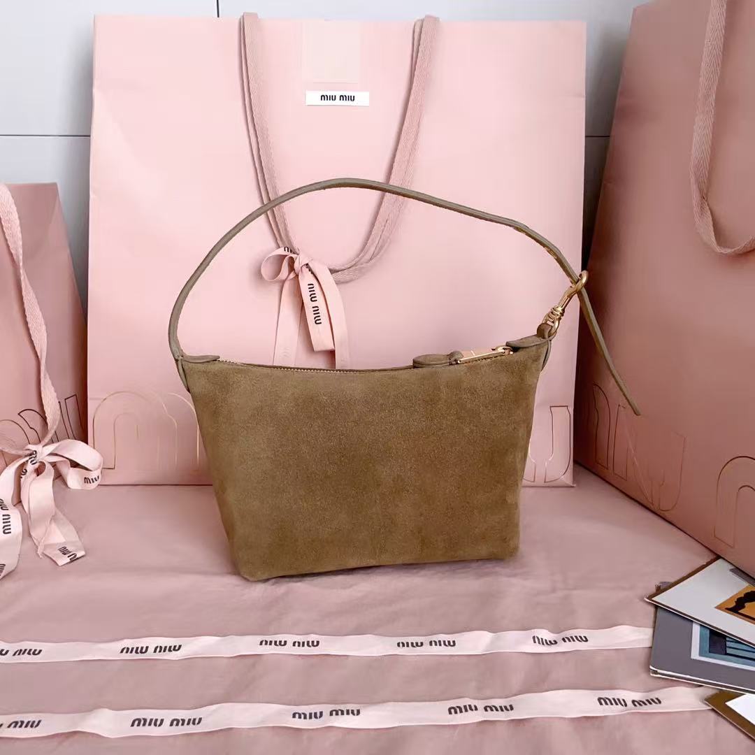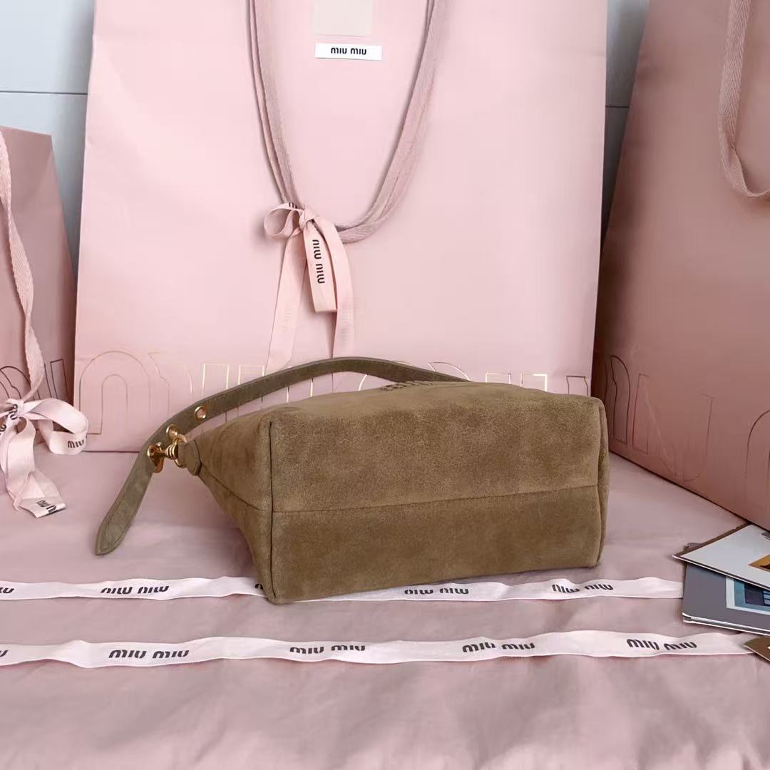 新品饭盒包,采用当下火爆元素麂绒皮,正面标志性 Miu凸形logo,棉布内里,超轻,容量大,怎么搭都好看,一年四季都适用,尺寸:底长19cm,开口宽25.5cm,高14cm,底部宽10cm