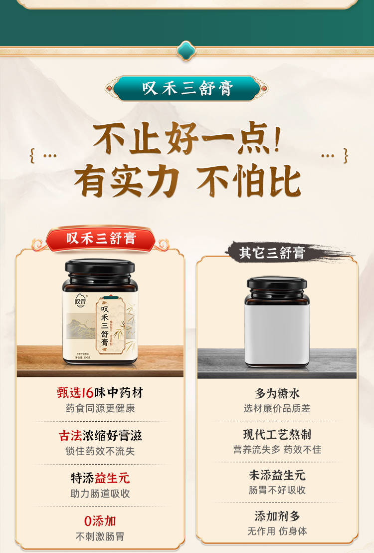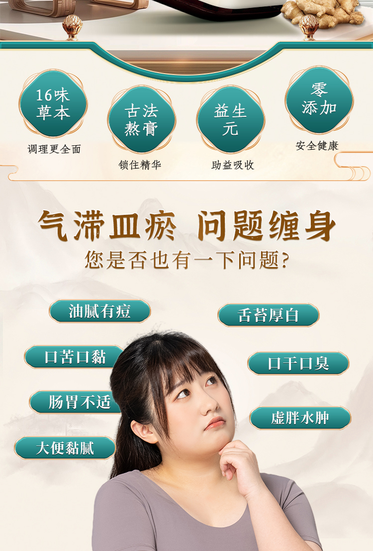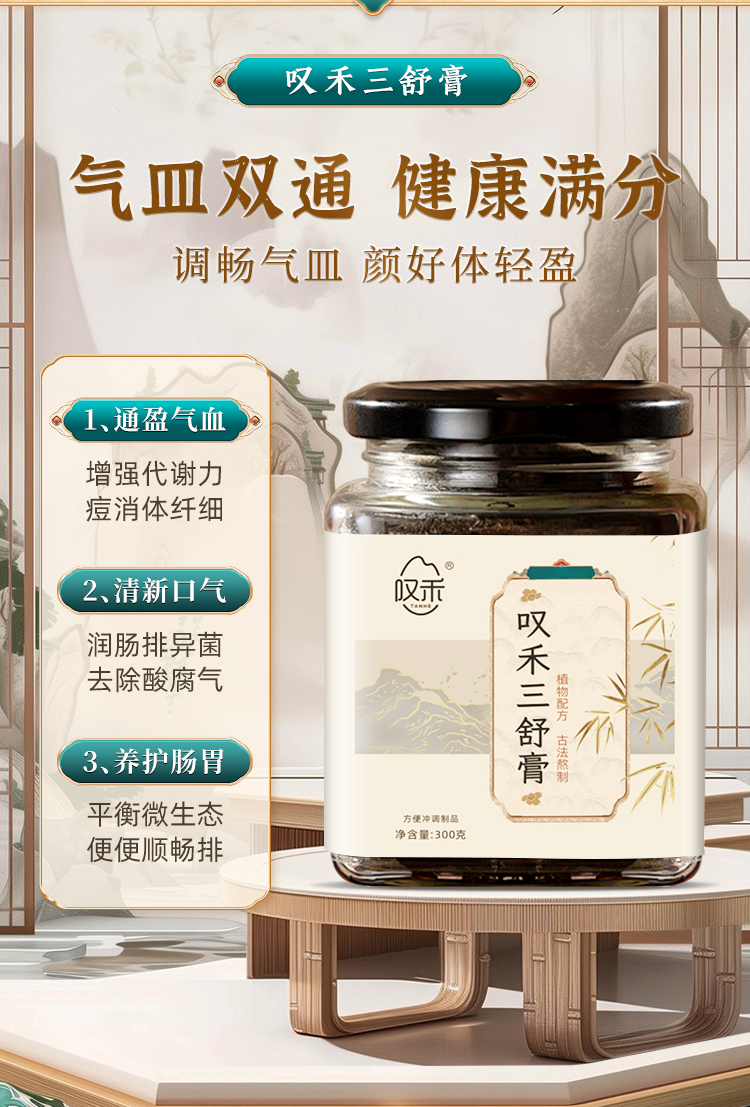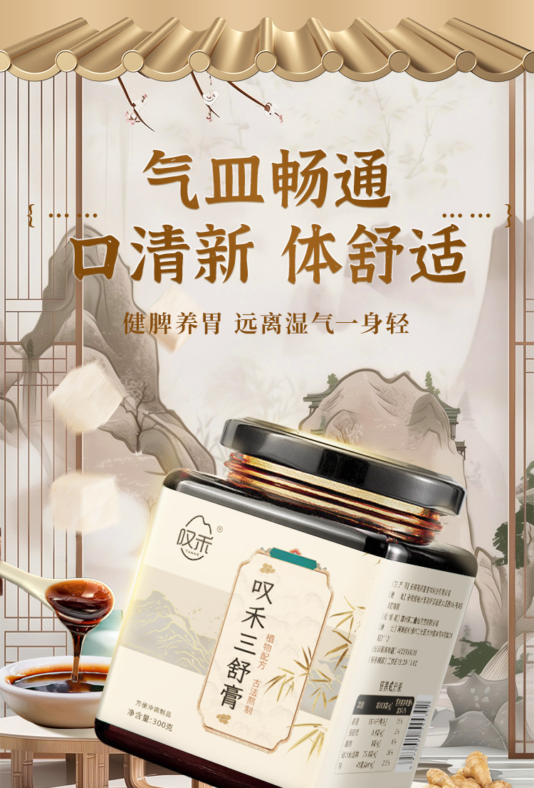 叹禾三舒膏除口臭舌苔白厚肝火旺盛调理肠胃去湿气脾养胃祛湿