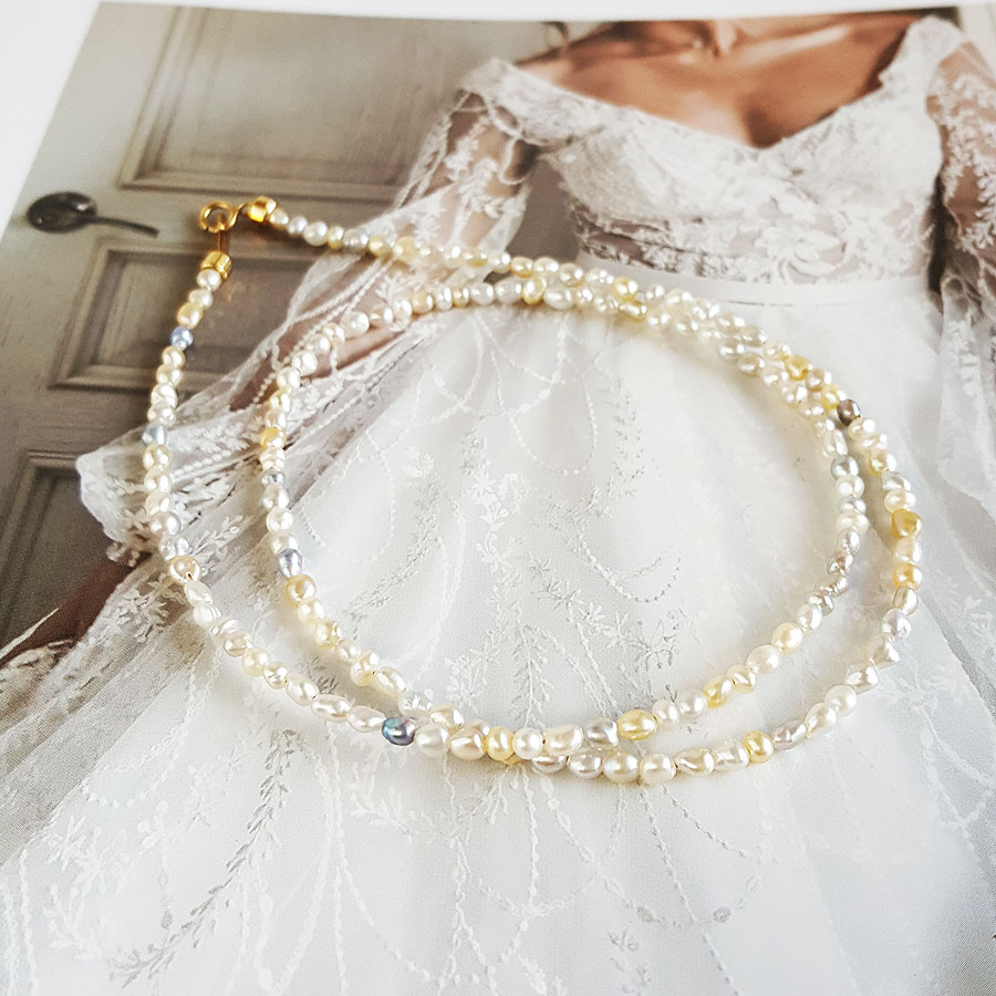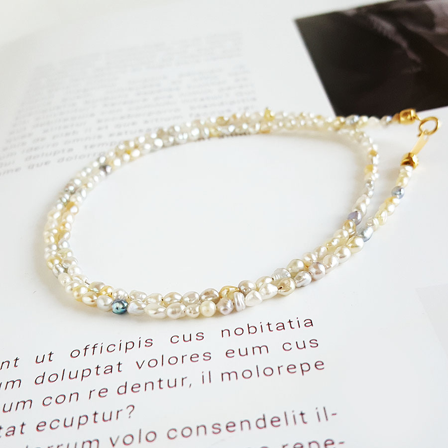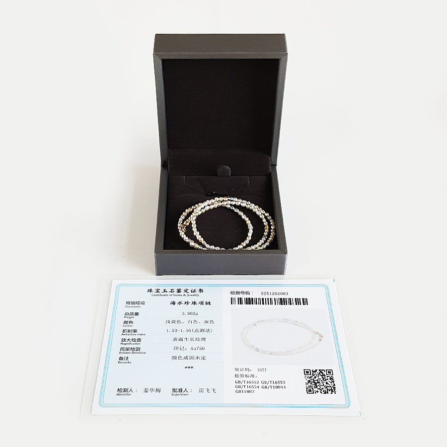 名称 | AU750黄金镶天然混彩巴洛克海水珍珠小米珠项链 |