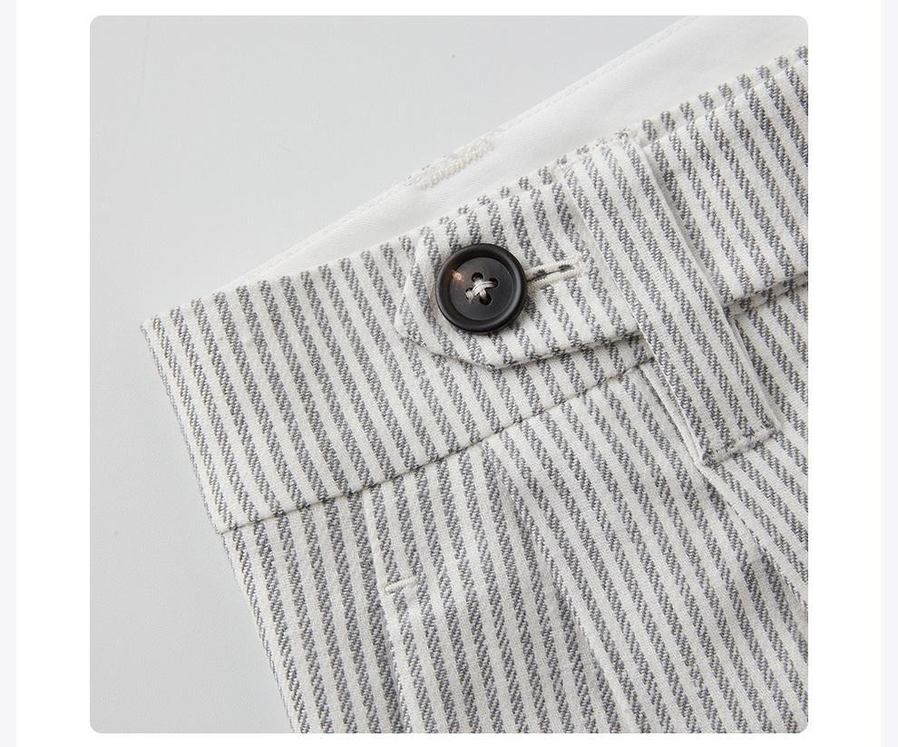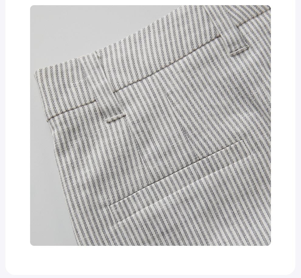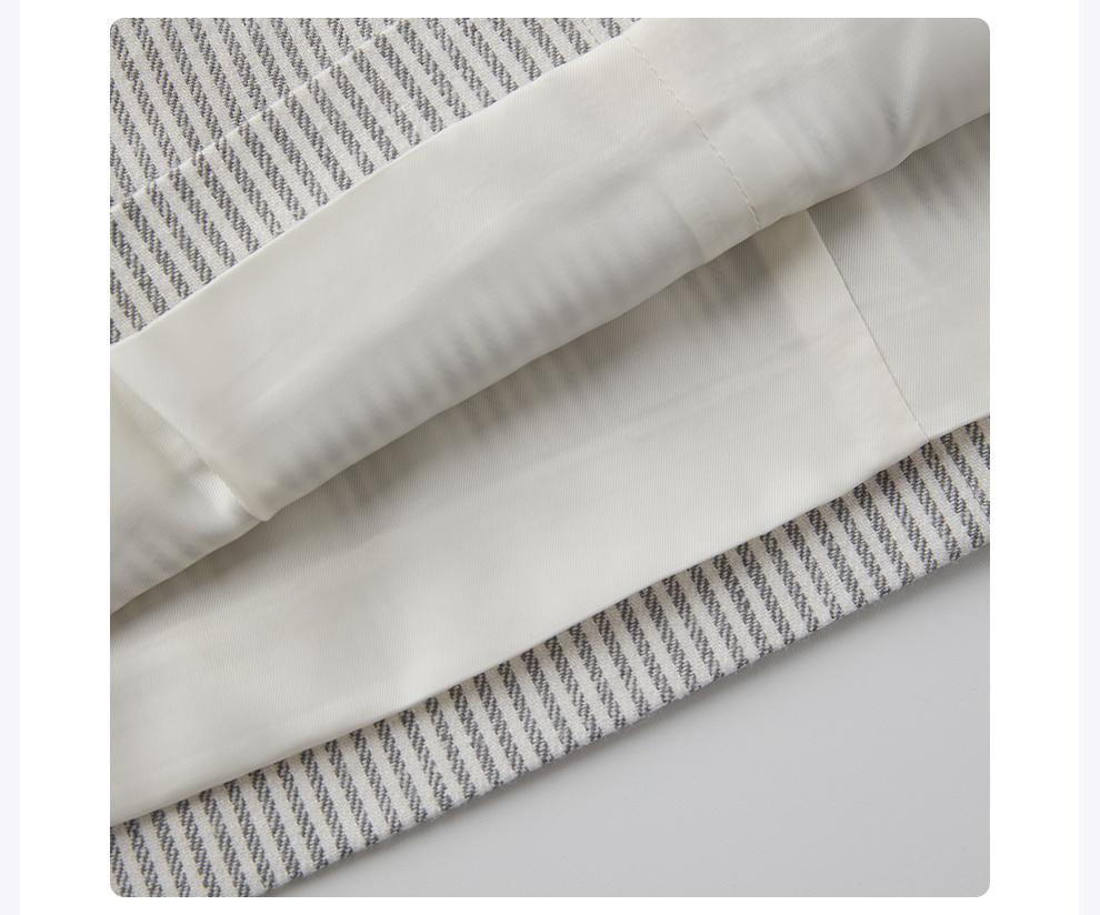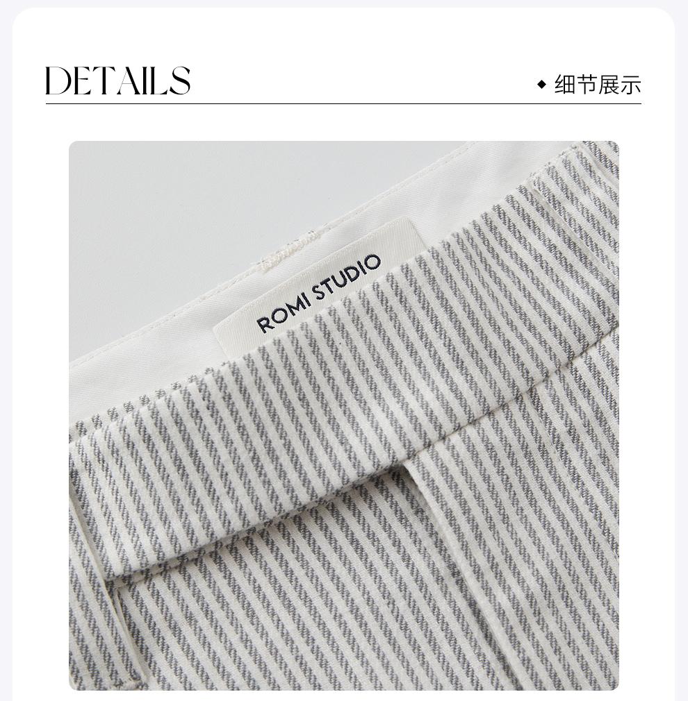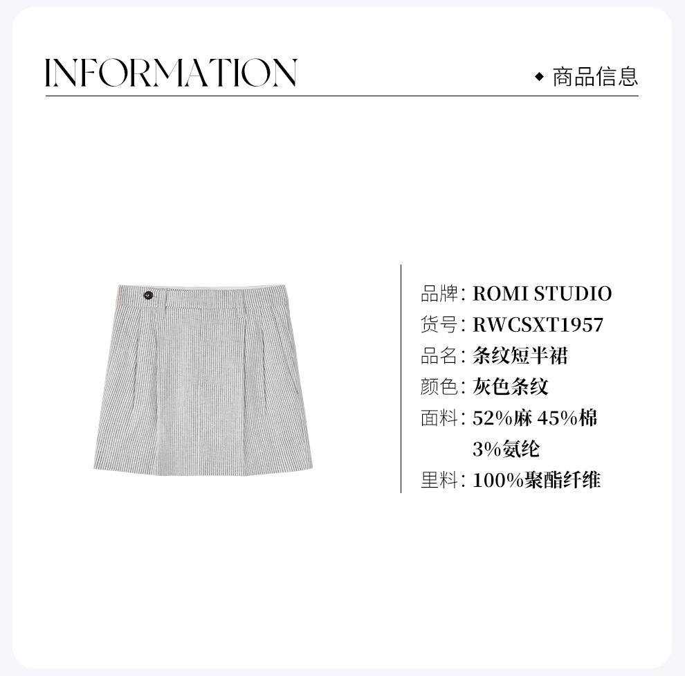 ROMI STUDIO自然质感经典条纹 棉麻混纺双褶半身短裙RWCSXT1957(现货)