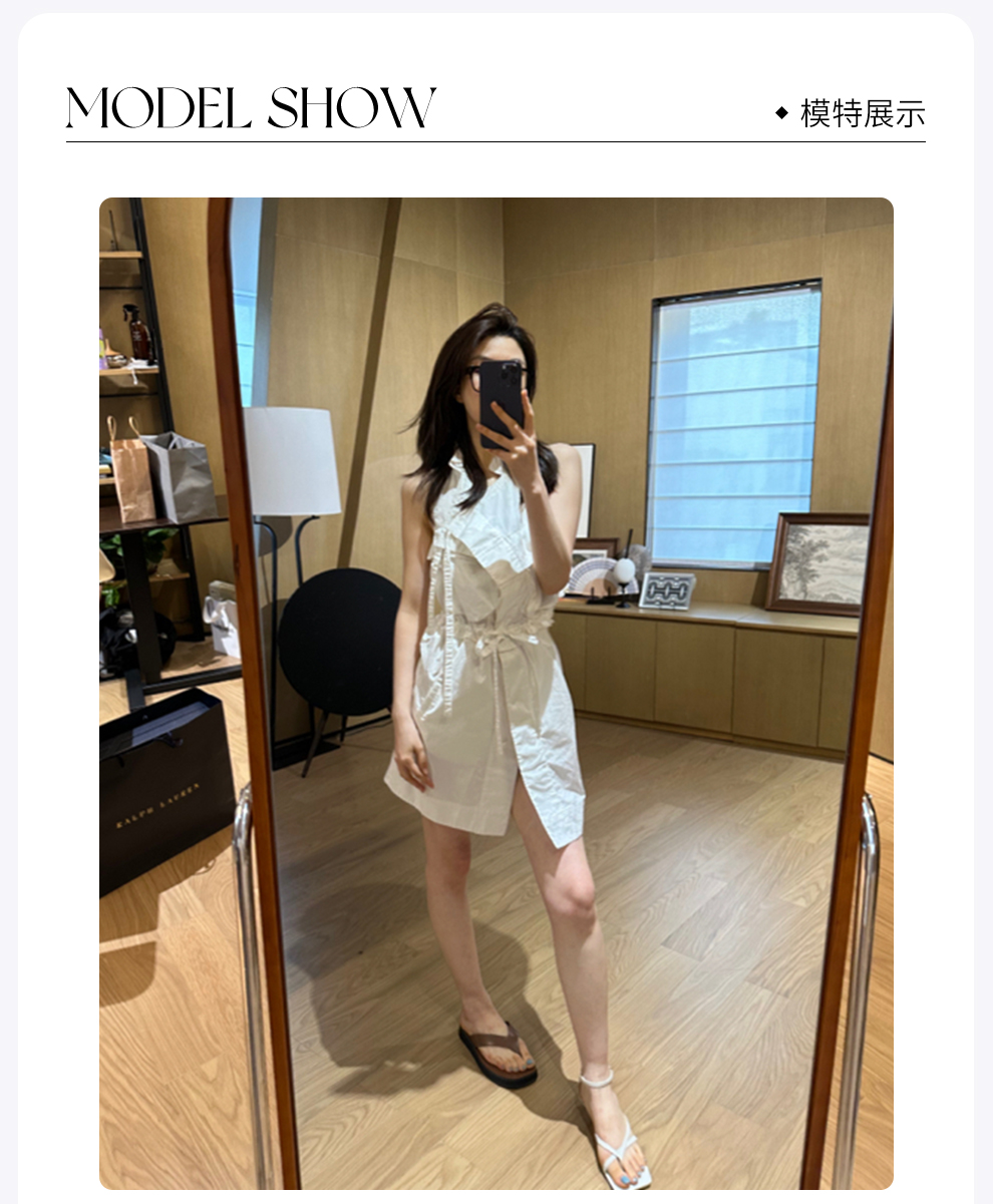 ROMI STUDIO“随性优雅”100%棉立裁工装口袋抽绳背心连衣裙D3796