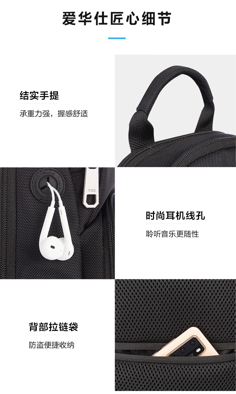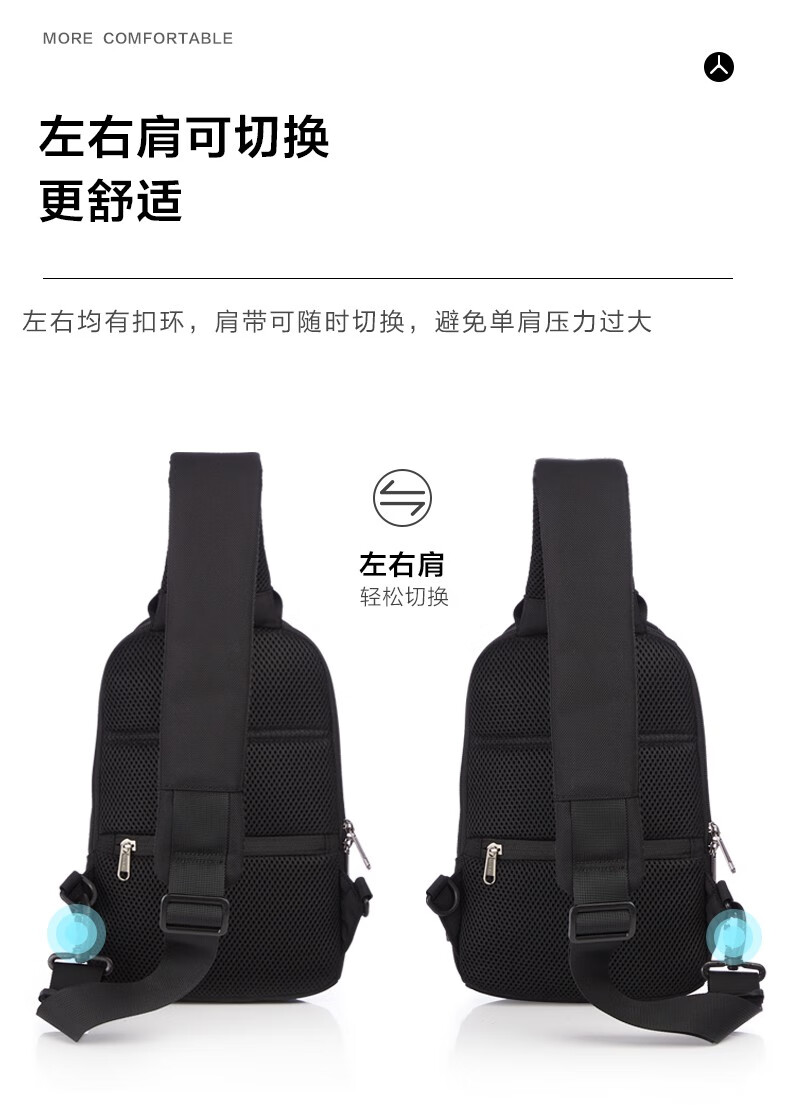 爱华仕男士胸包单肩包休闲运动斜挎包男士通勤包包大学生轻便手机包5673 黑色